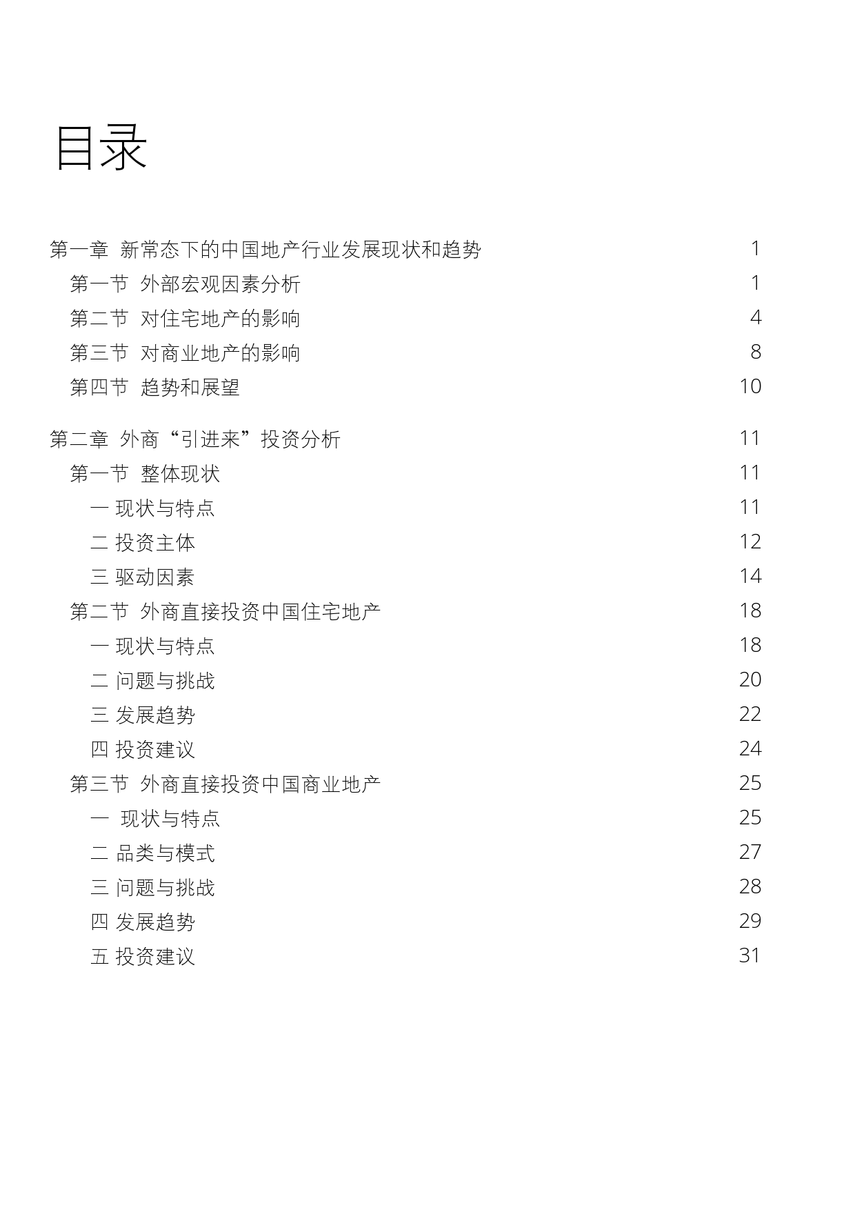 - 近十年来外商投资规模在波动中持续增长,投资主体主要为香港、新加坡和东南亚知名地产商。大型品牌项目为主,合同项目数量逐年降低。一线和二线热点城市及其他重要区域中心城市为外资主要目标,涵盖商铺、酒店、高档公寓、写字楼等的大型商业地产综合体项目逐渐成为主流。