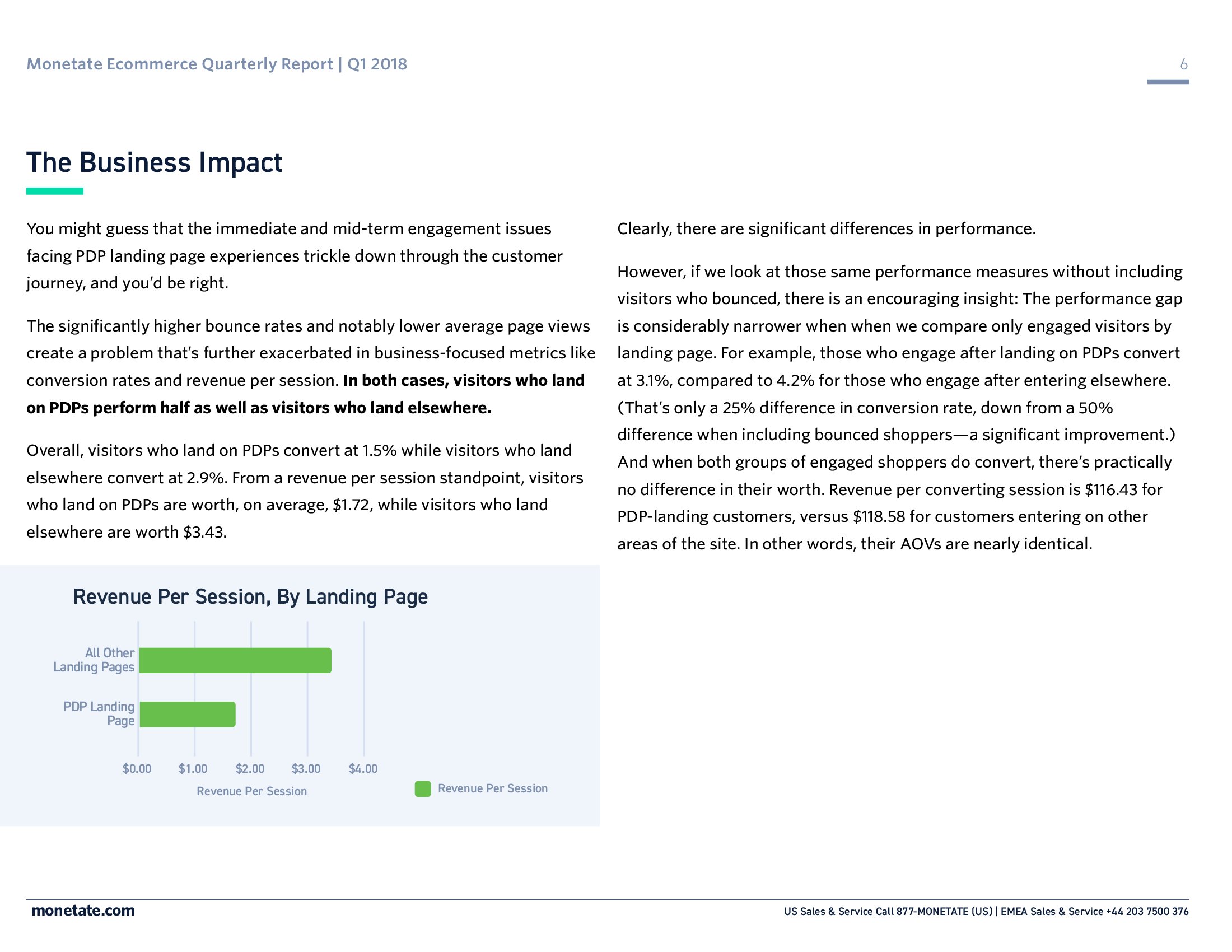 PDP的访问者的转化率比其他页面访问者低得多,1.5% vs. 2.9%;