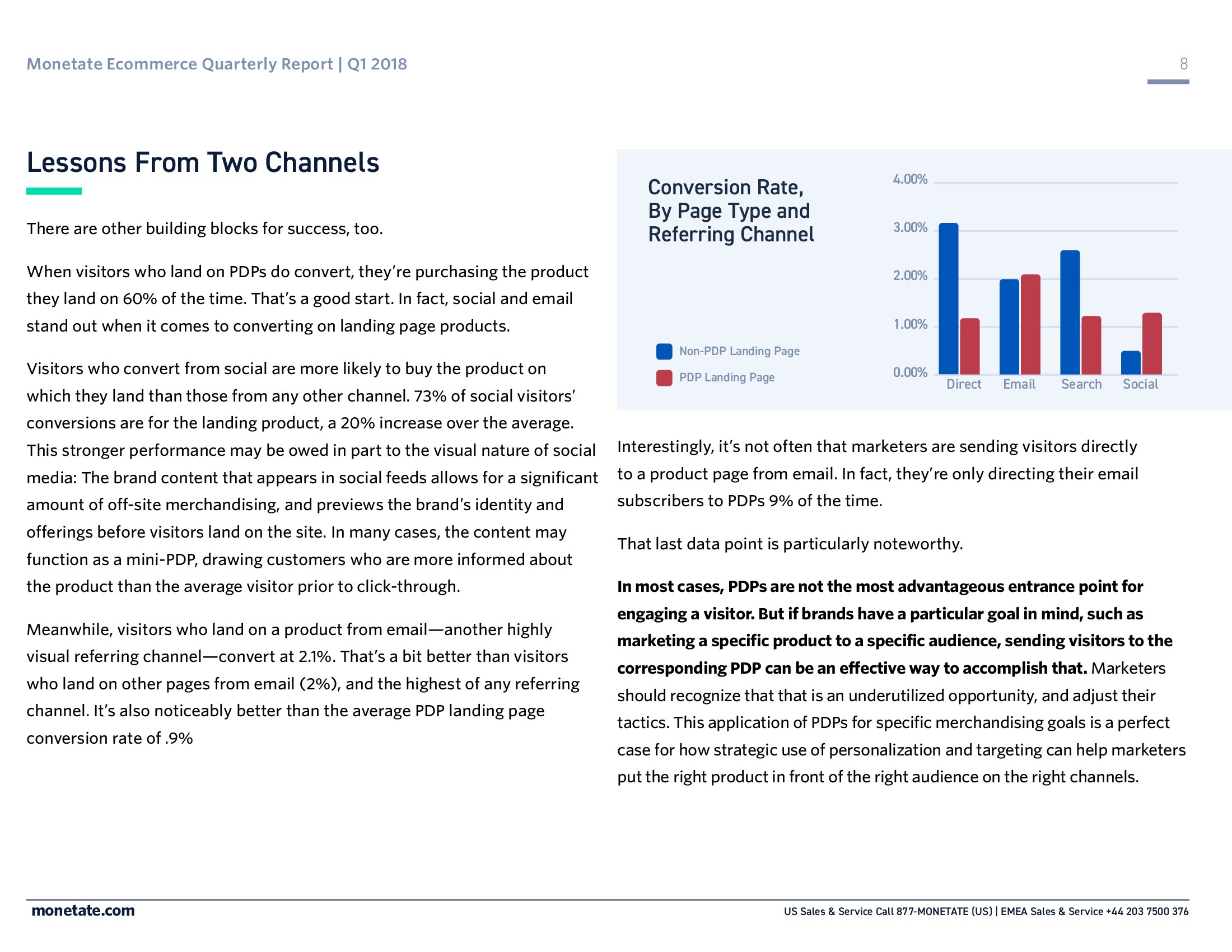 Monetate发布了“2018年第一季度电子商务报告”,近1/4的网购消费者访问电子商务网站产品详情页(PDP),但是分析显示PDP的表现不及其他登陆页。