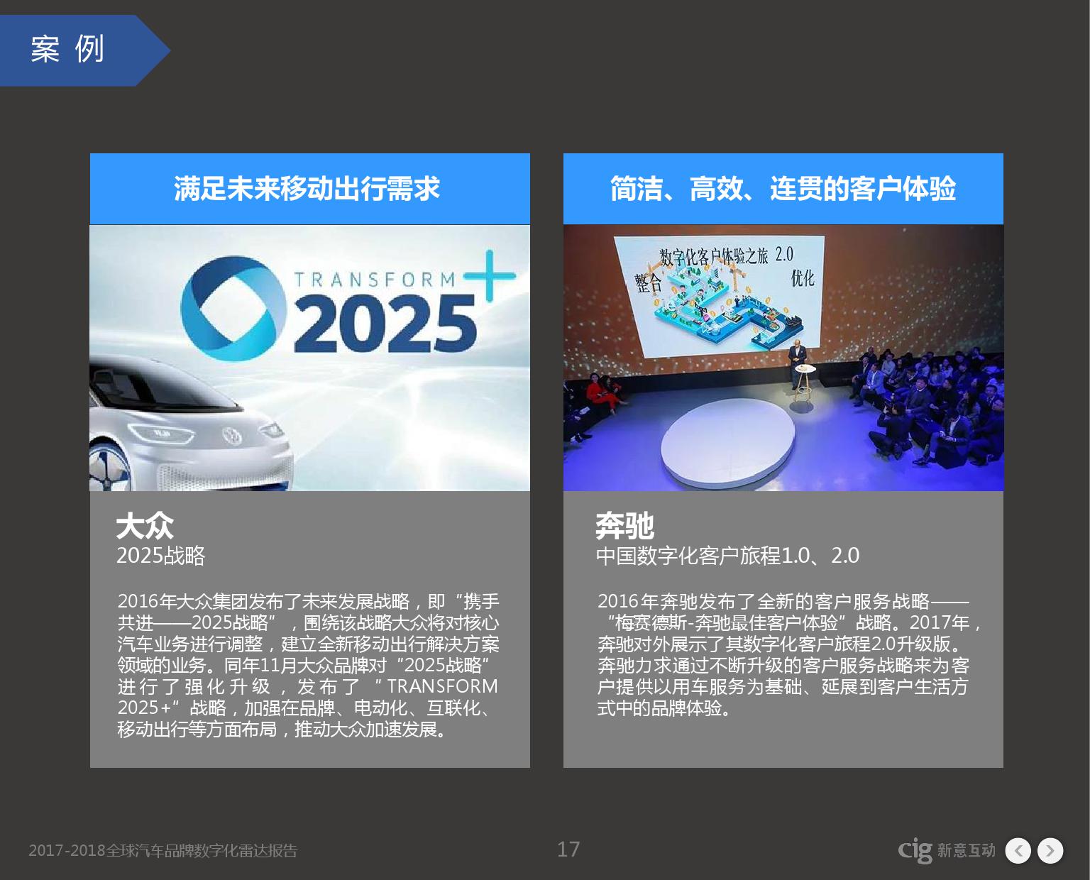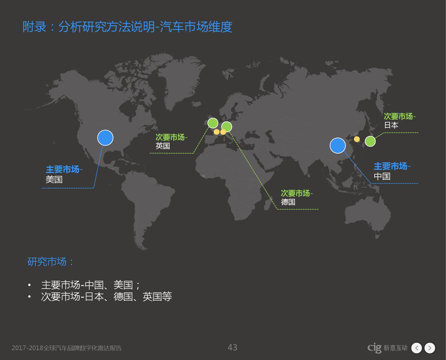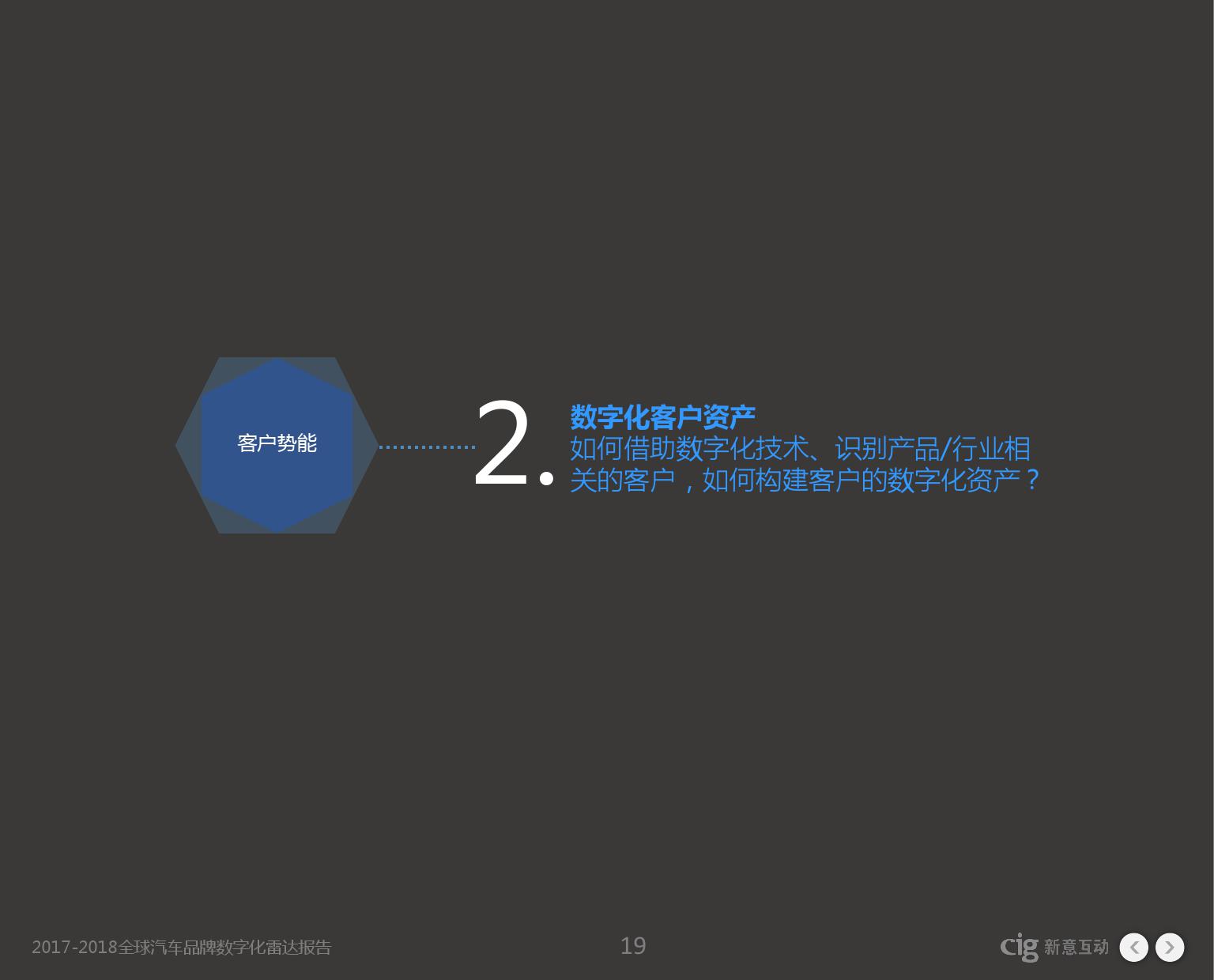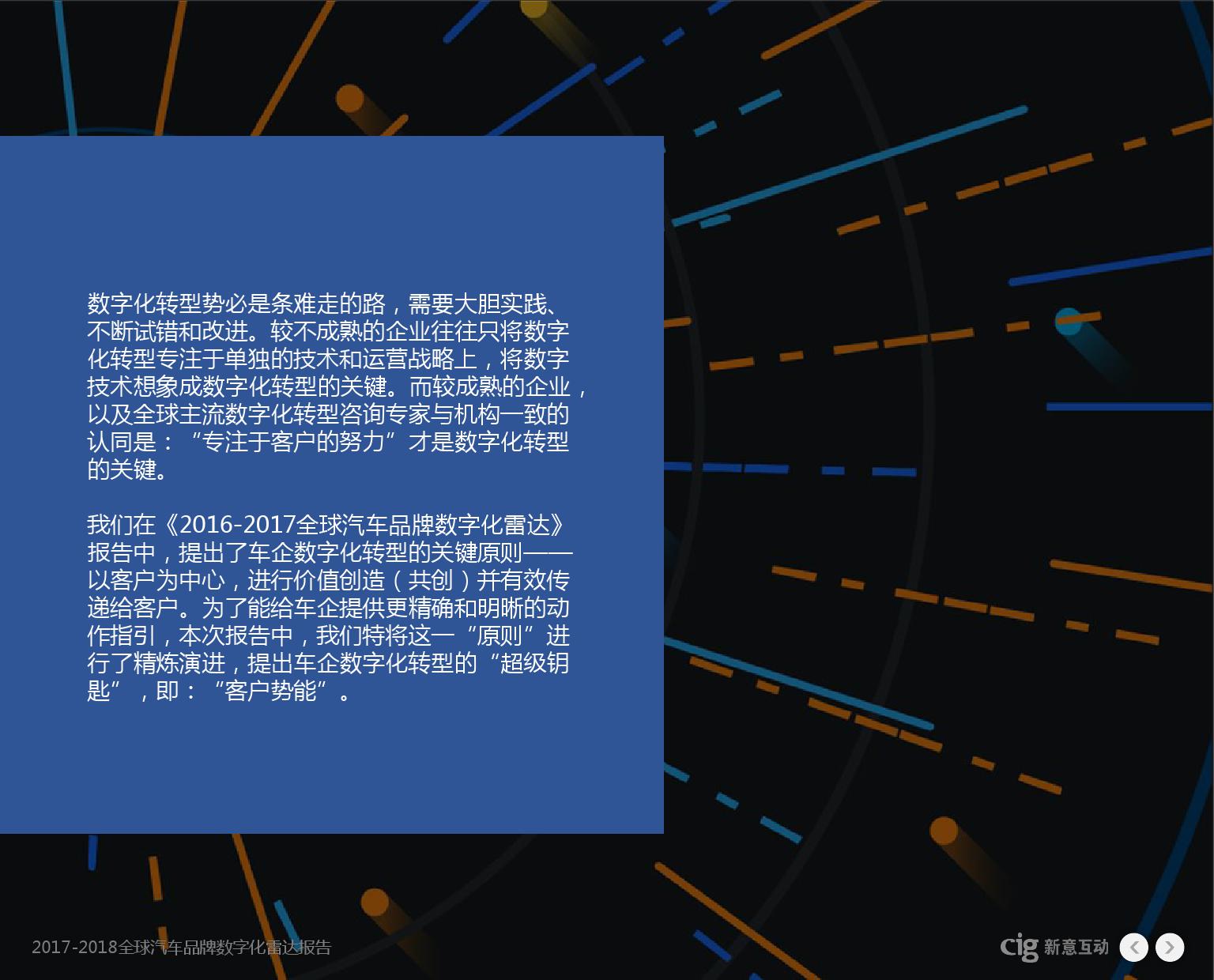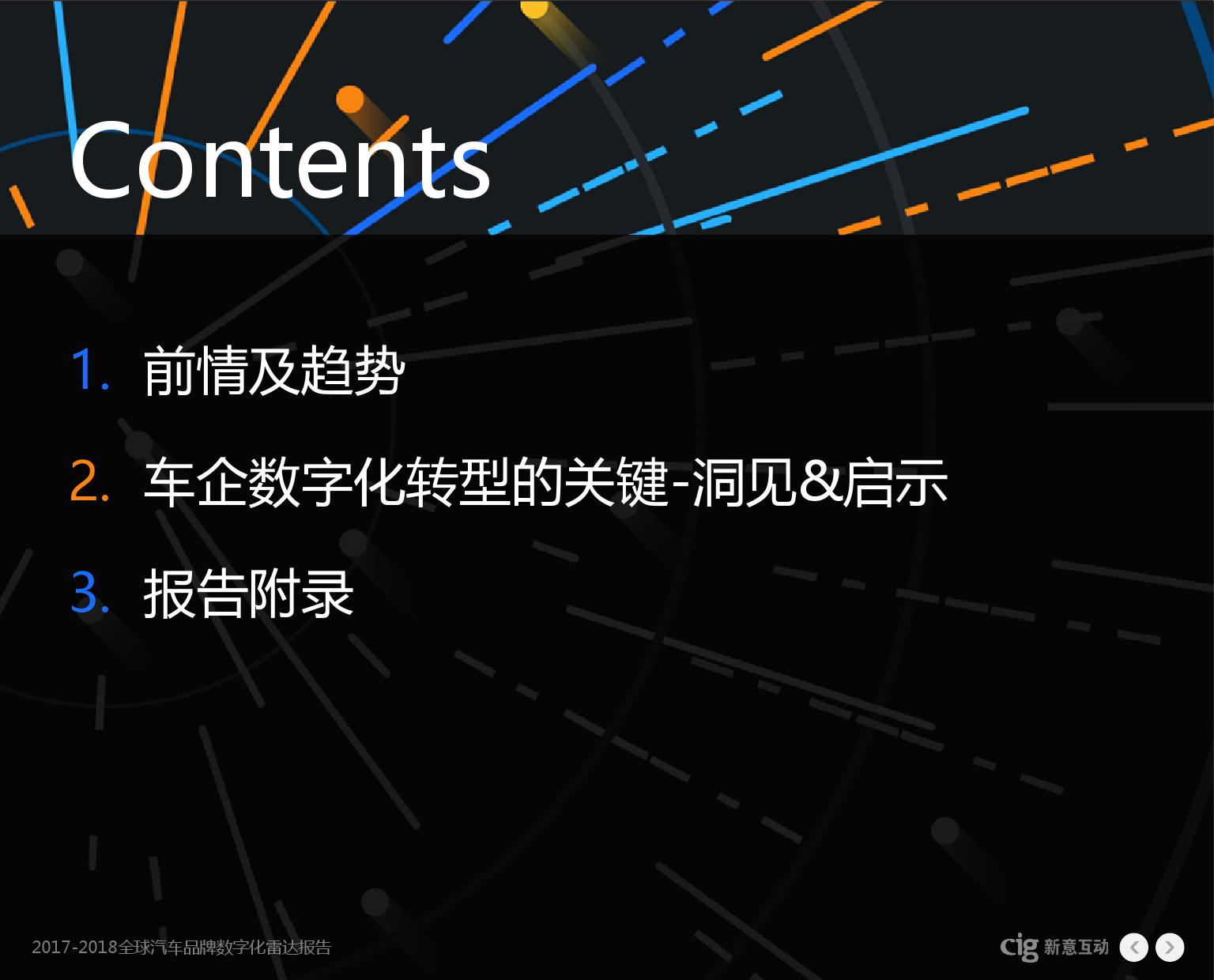 新意互动:2017-2018全球汽车品牌数字化雷达报告 PDF版本将分享到199IT交流群,支持我们发展可加入! 更多阅读:新意互动:2017全球汽车品牌数字化雷达报告GSMA:2018全球移动雷达报告K-12报告:2017-2018全球数字学习现状新意互动&京东:2019中国汽车高价值用户报告新意互动:汽车与超级现实营销专题报告国际能源机构:2018年全球电动汽车展望报告TrendForce:2020年全球新能源车销售量为240万辆 逆势成长19.8%2010-2019年全球新能源汽车销量(附原数据表) BNEF:预计2030年全球锂离子电池需求将超过2000GWh2018年全球汽车销量排行榜波士顿咨询:2024年全球财富报告世界经济论坛:2020年全球竞争力报告–特别版IMD:2020年全球人才报告(113页)德勤咨询:2020中国与全球企业人工智能应用现状调研德勤咨询:2020全球消费者状态跟踪——中国