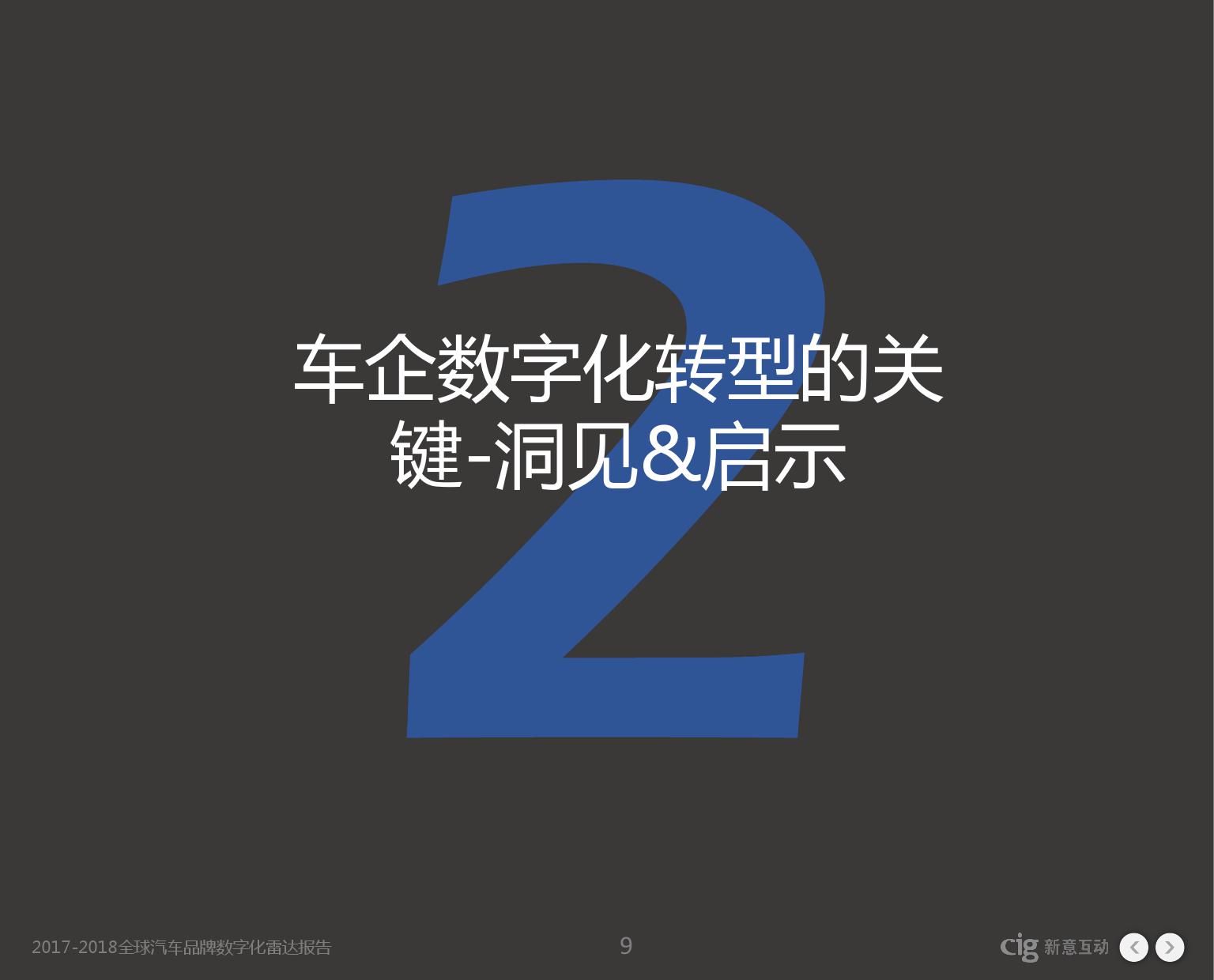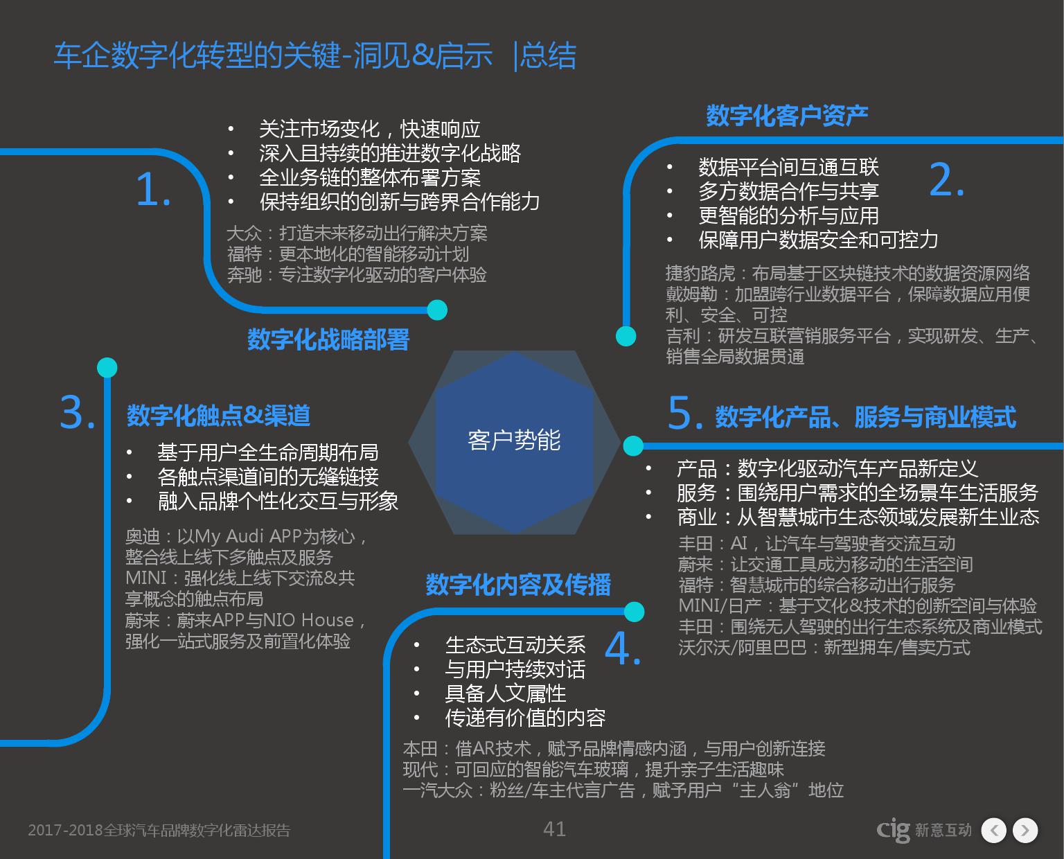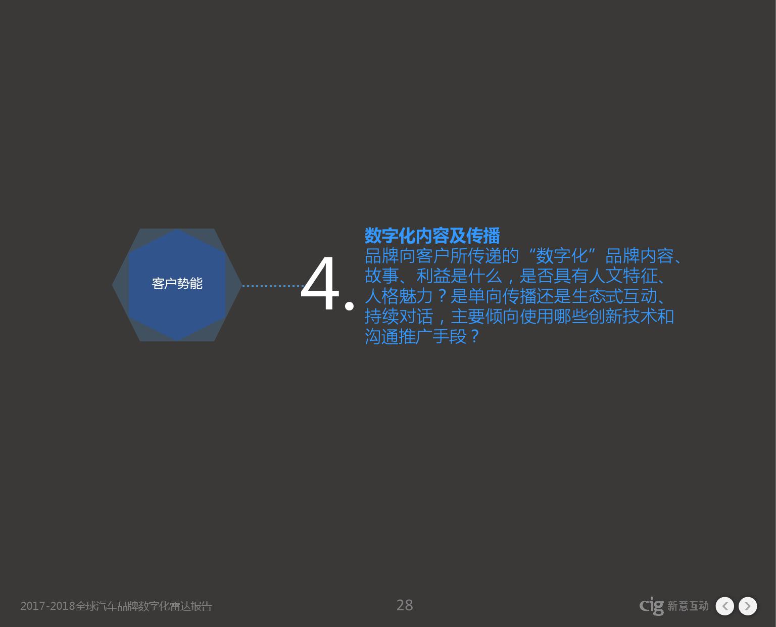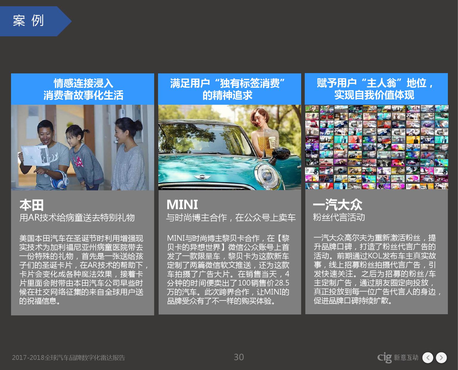 新意互动:2017-2018全球汽车品牌数字化雷达报告 PDF版本将分享到199IT交流群,支持我们发展可加入! 更多阅读:新意互动:2017全球汽车品牌数字化雷达报告GSMA:2018全球移动雷达报告K-12报告:2017-2018全球数字学习现状新意互动&京东:2019中国汽车高价值用户报告新意互动:汽车与超级现实营销专题报告国际能源机构:2018年全球电动汽车展望报告TrendForce:2020年全球新能源车销售量为240万辆 逆势成长19.8%2010-2019年全球新能源汽车销量(附原数据表) BNEF:预计2030年全球锂离子电池需求将超过2000GWh2018年全球汽车销量排行榜波士顿咨询:2024年全球财富报告世界经济论坛:2020年全球竞争力报告–特别版IMD:2020年全球人才报告(113页)德勤咨询:2020中国与全球企业人工智能应用现状调研德勤咨询:2020全球消费者状态跟踪——中国