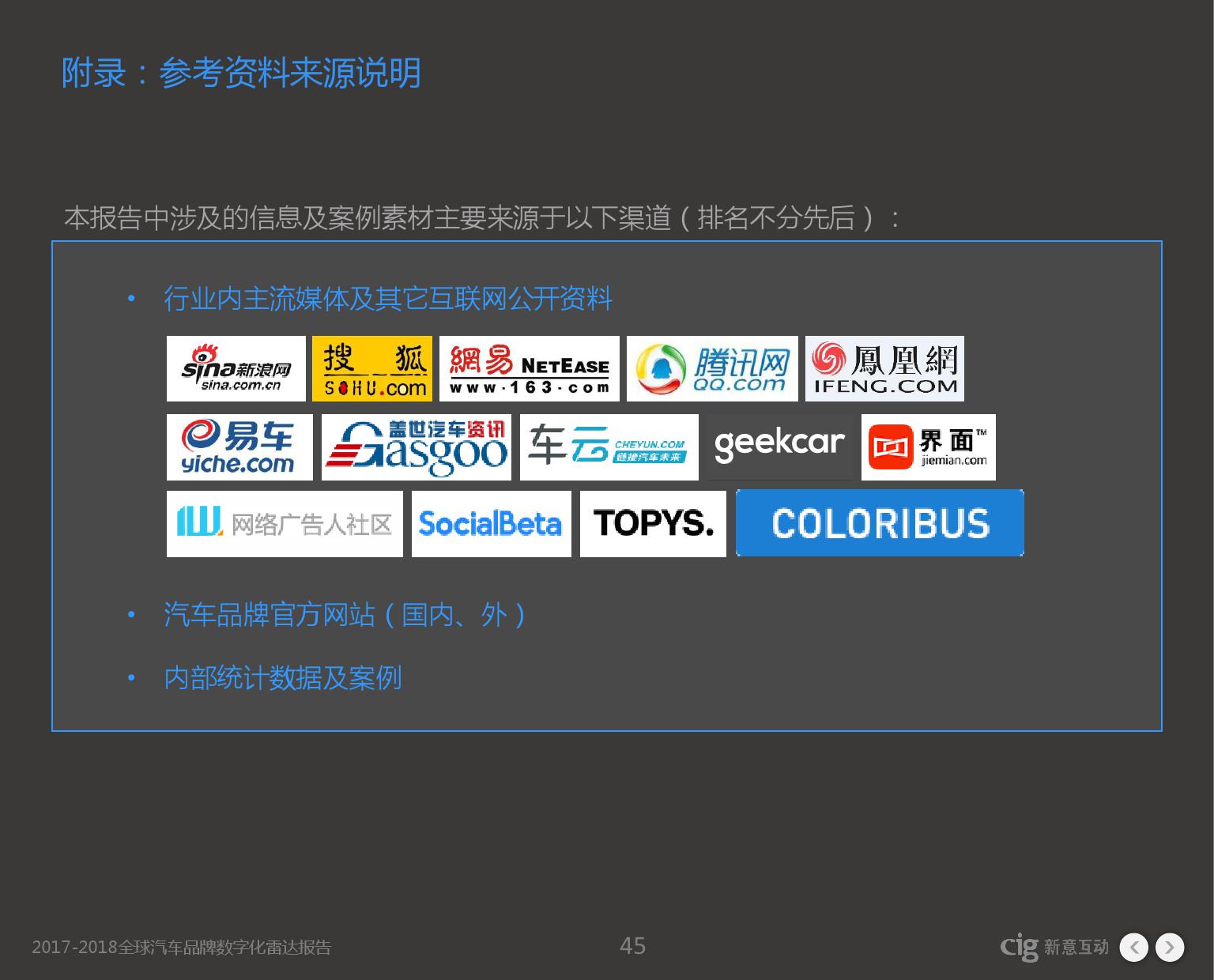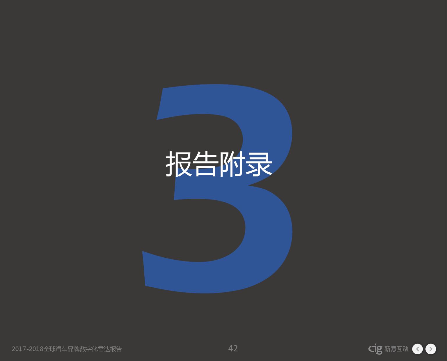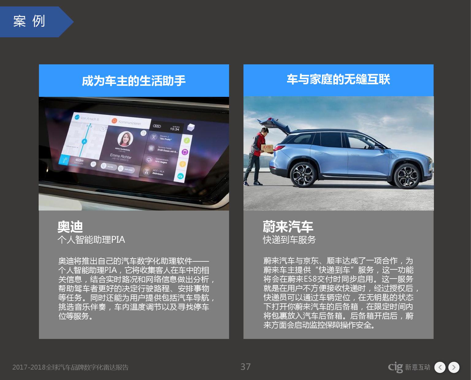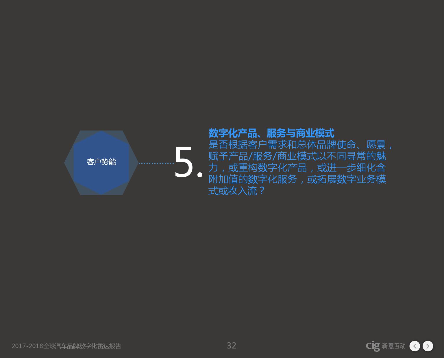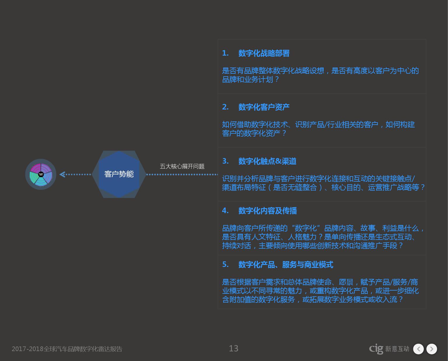 新意互动:2017-2018全球汽车品牌数字化雷达报告 PDF版本将分享到199IT交流群,支持我们发展可加入! 更多阅读:新意互动:2017全球汽车品牌数字化雷达报告GSMA:2018全球移动雷达报告K-12报告:2017-2018全球数字学习现状新意互动&京东:2019中国汽车高价值用户报告新意互动:汽车与超级现实营销专题报告国际能源机构:2018年全球电动汽车展望报告TrendForce:2020年全球新能源车销售量为240万辆 逆势成长19.8%2010-2019年全球新能源汽车销量(附原数据表) BNEF:预计2030年全球锂离子电池需求将超过2000GWh2018年全球汽车销量排行榜波士顿咨询:2024年全球财富报告世界经济论坛:2020年全球竞争力报告–特别版IMD:2020年全球人才报告(113页)德勤咨询:2020中国与全球企业人工智能应用现状调研德勤咨询:2020全球消费者状态跟踪——中国