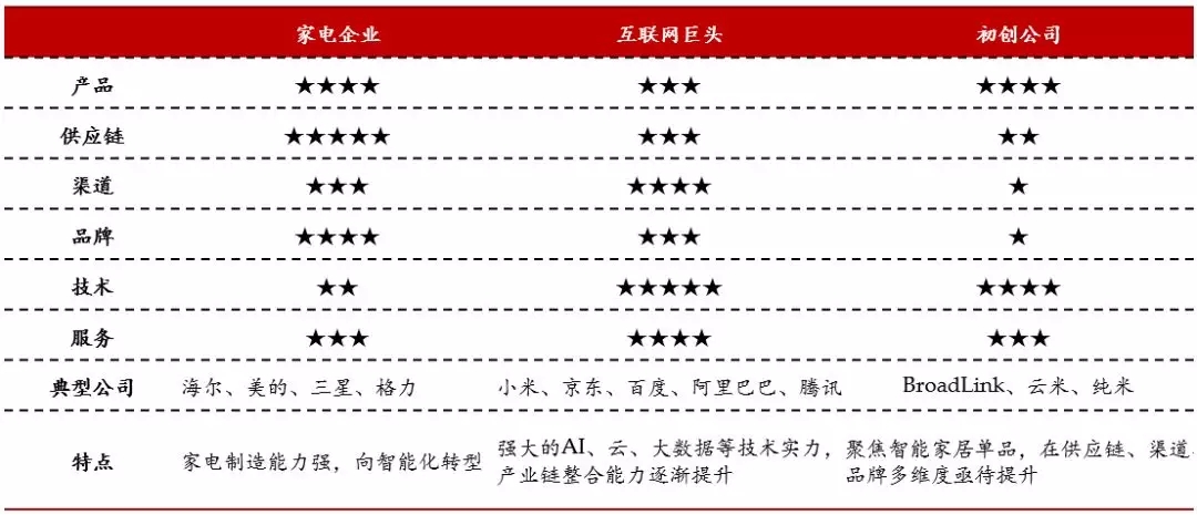 行业主要竞争者可以分为三类——传统家电企业、互联网巨头、创业企业。