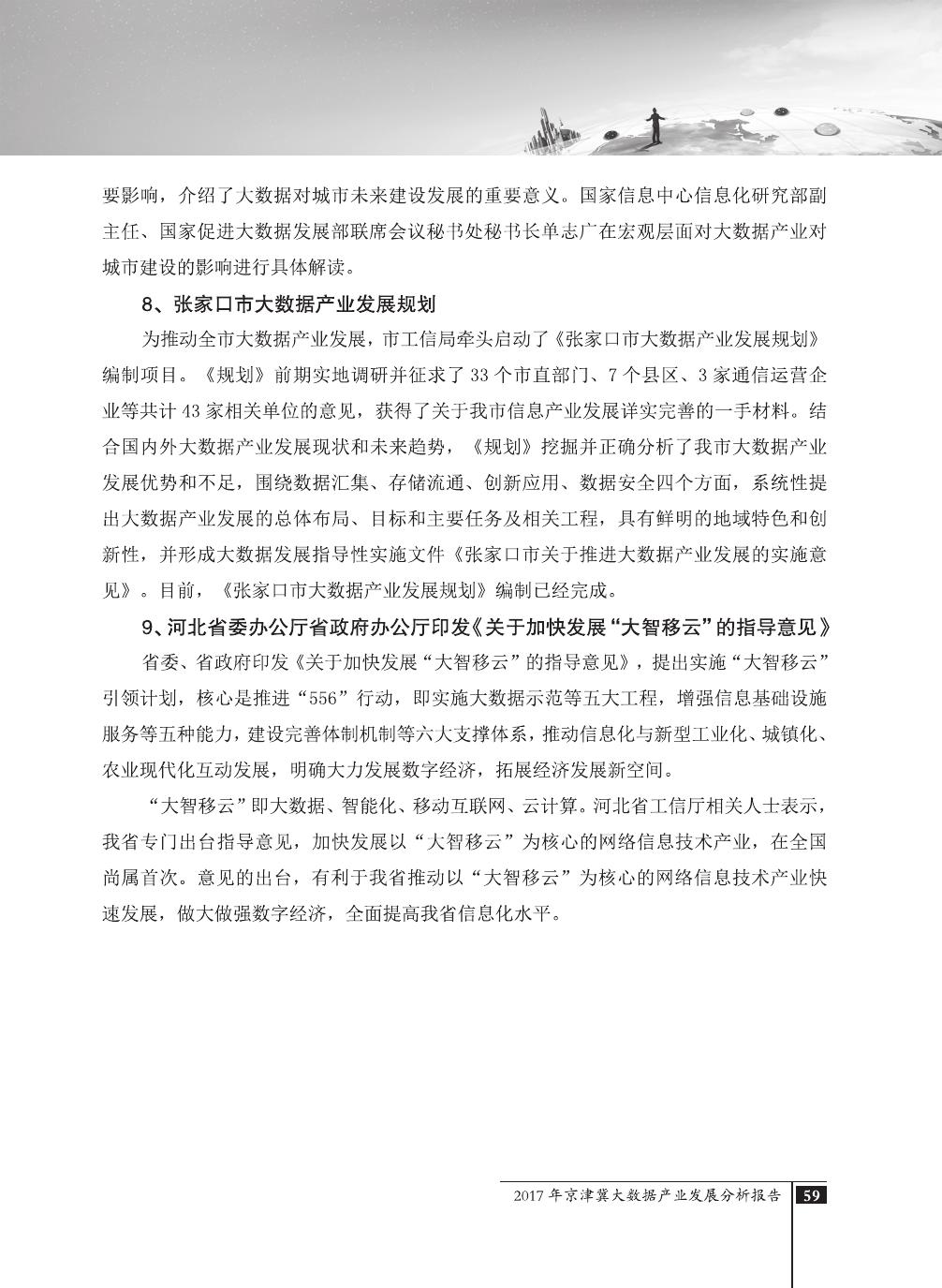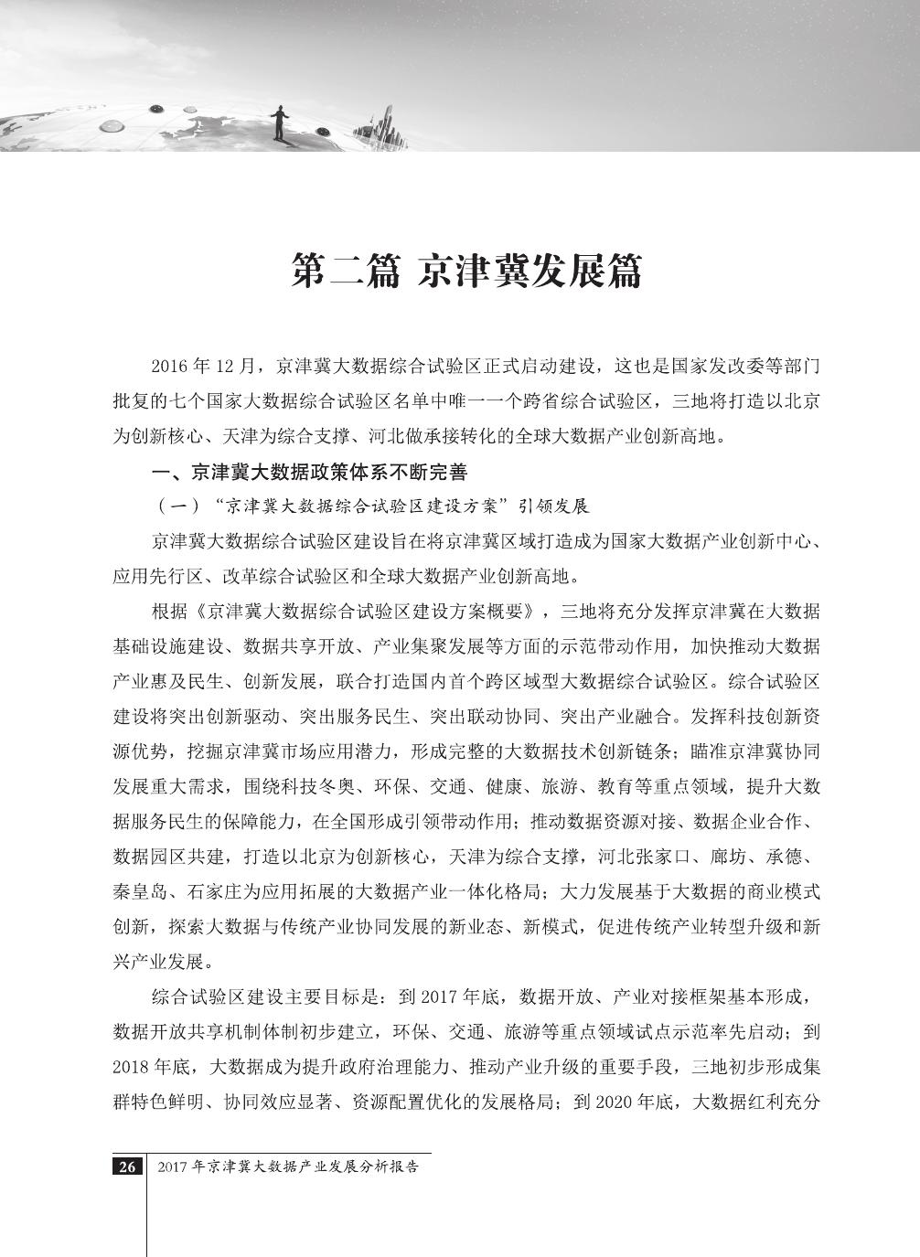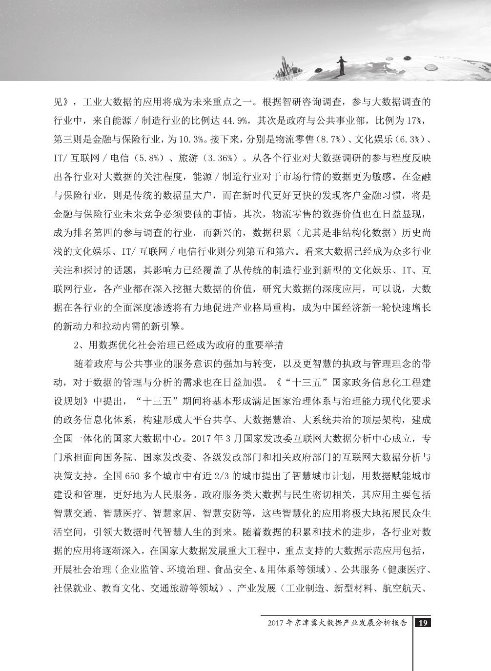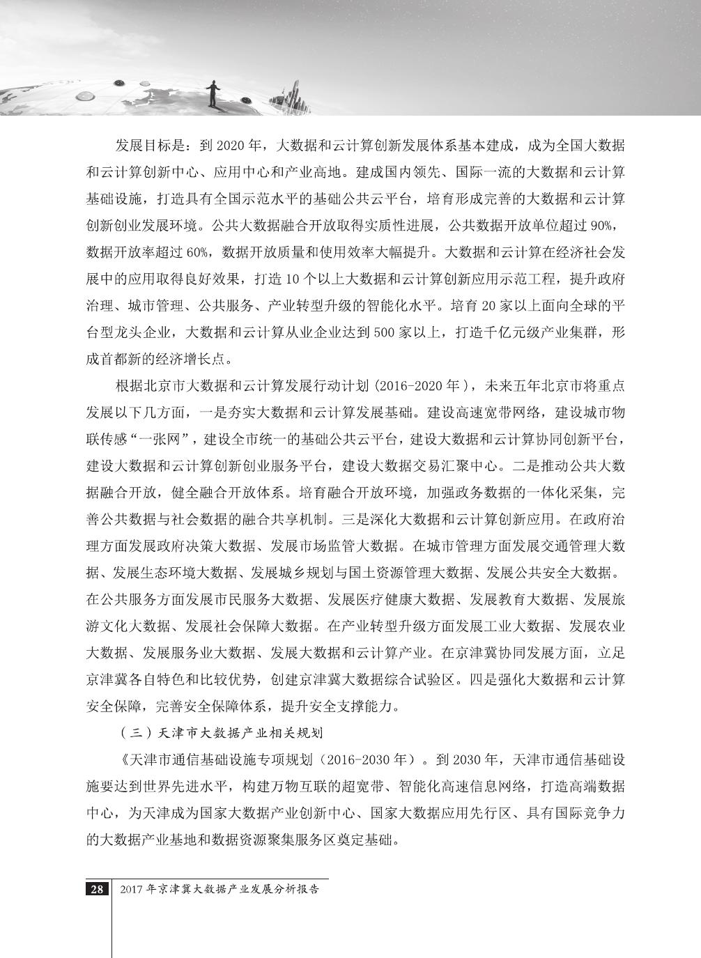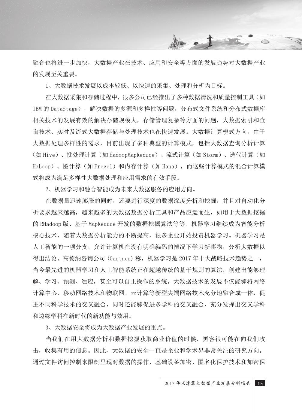 报告介绍了大数据技术在全球与全国范围内的发展演进,京津冀大数据综合试验区的独特优势,以及大数据在京津冀三地相关产业内的错位应用与协同发展,同时对大数据在京津冀的应用前景,对国民经济相关领域带来的拉动作用等热点问题进行了详细的论述。报告对相关方洞悉大数据产业生态规律,制订大数据发展战略,利用大数据创造更大价值,都具有较好的参考借鉴作用。