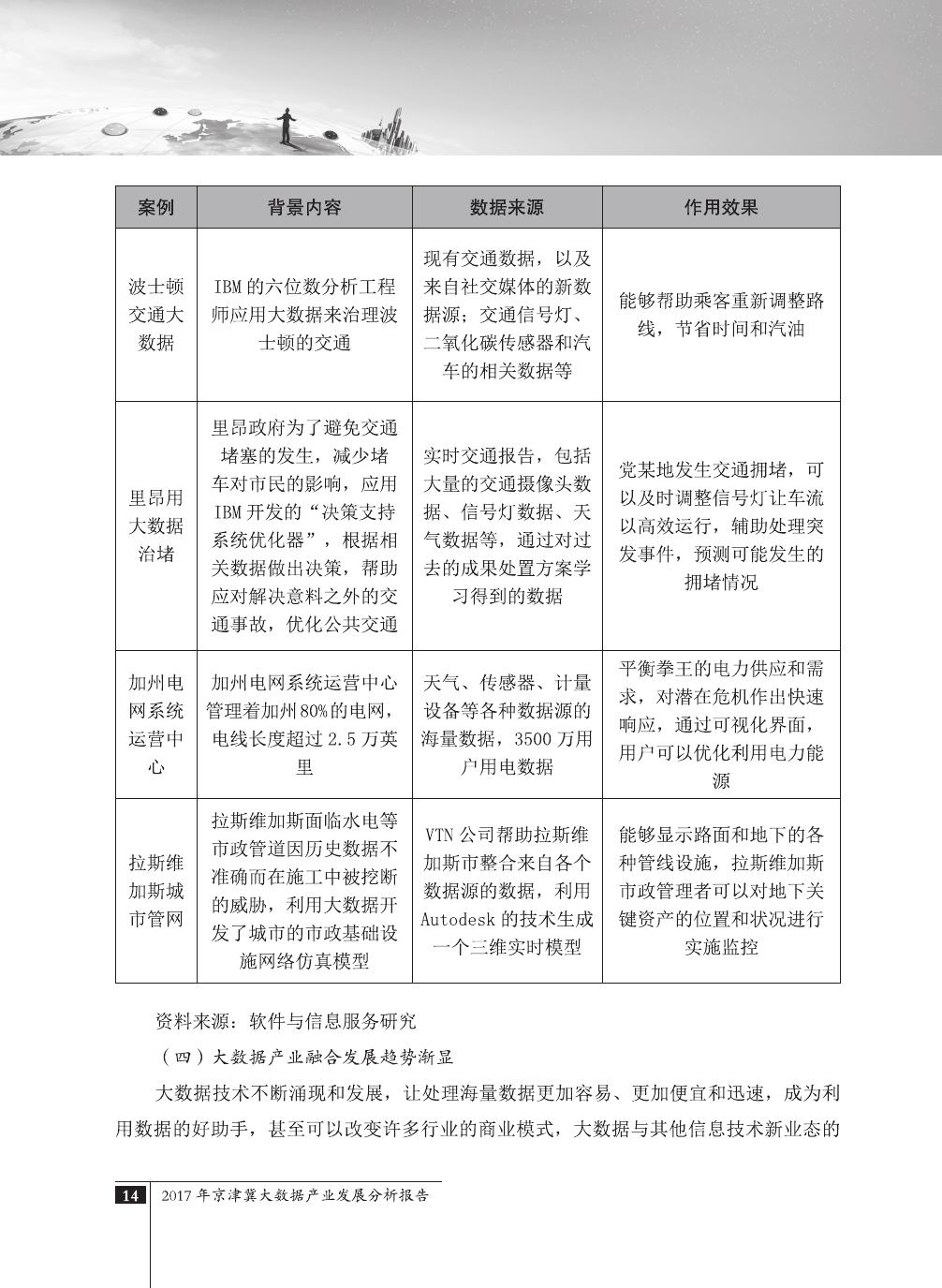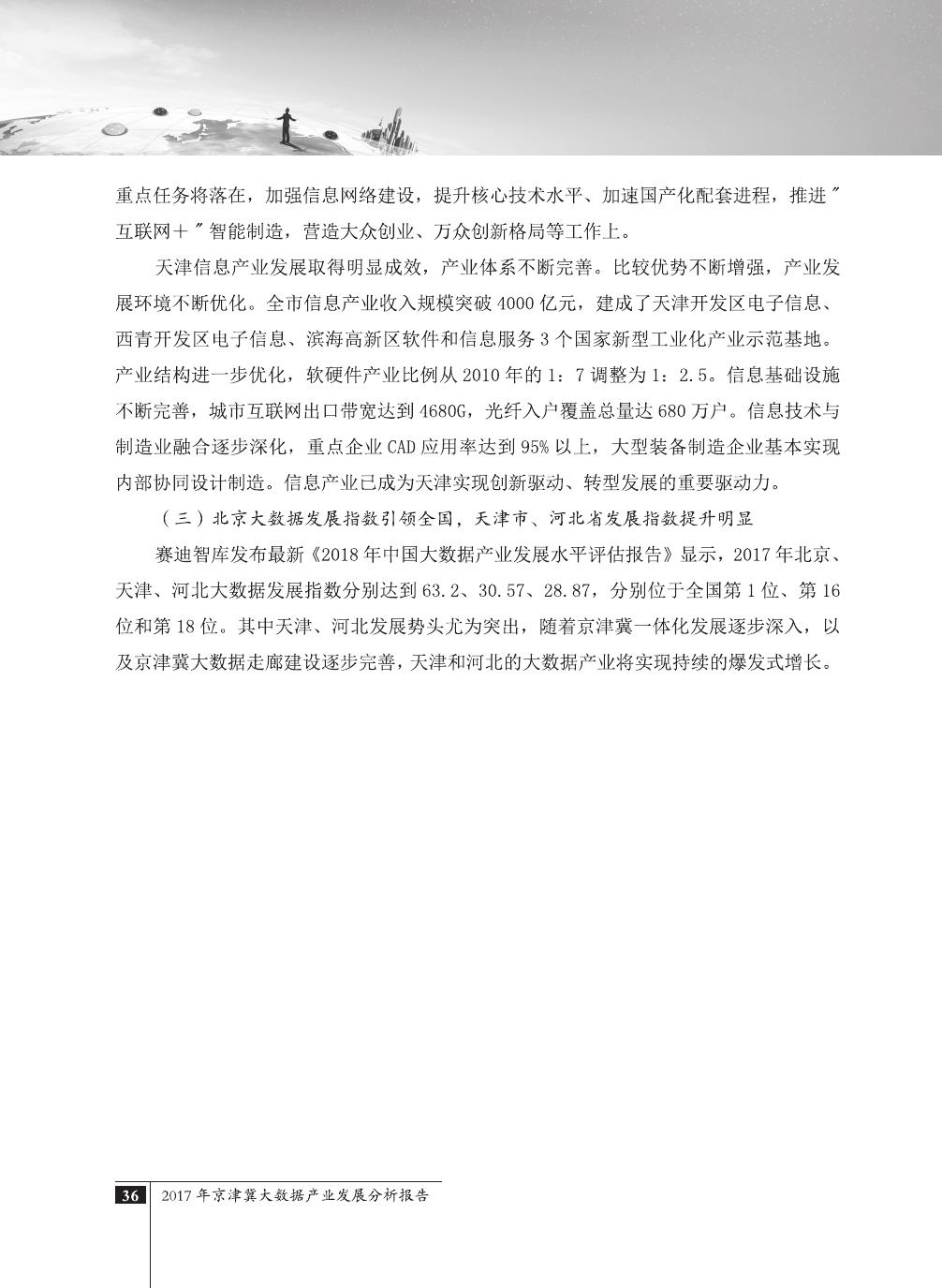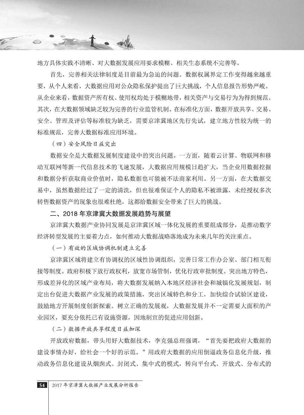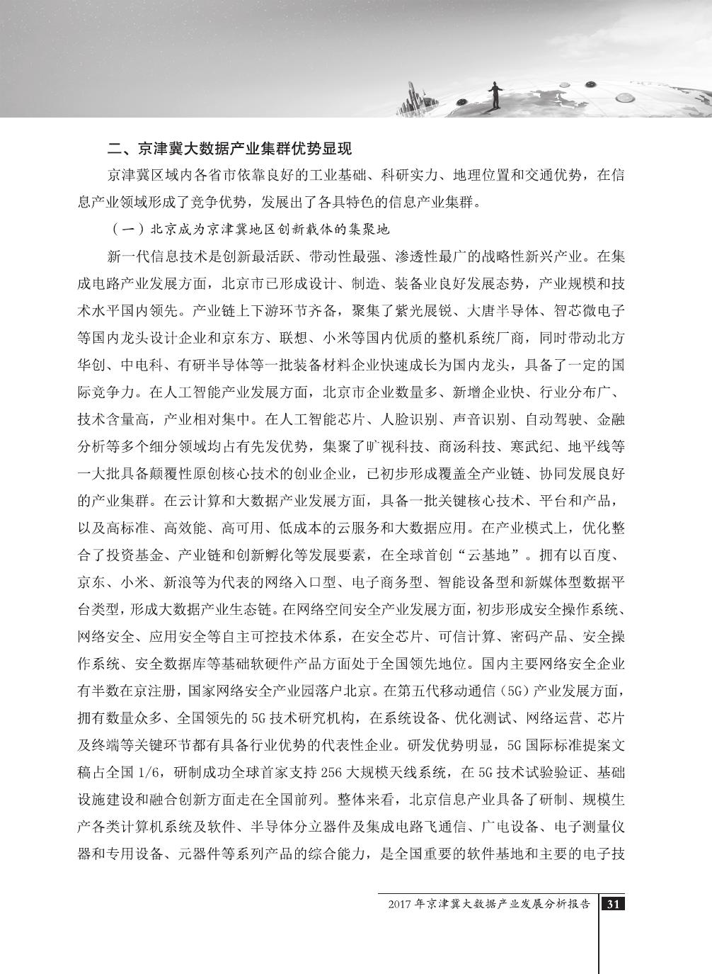 报告介绍了大数据技术在全球与全国范围内的发展演进,京津冀大数据综合试验区的独特优势,以及大数据在京津冀三地相关产业内的错位应用与协同发展,同时对大数据在京津冀的应用前景,对国民经济相关领域带来的拉动作用等热点问题进行了详细的论述。报告对相关方洞悉大数据产业生态规律,制订大数据发展战略,利用大数据创造更大价值,都具有较好的参考借鉴作用。