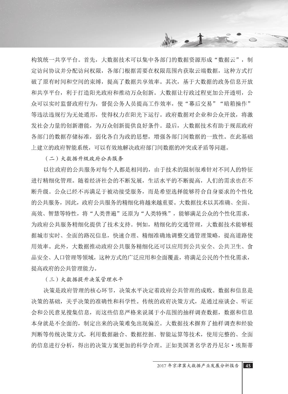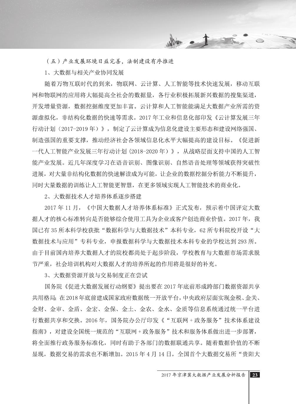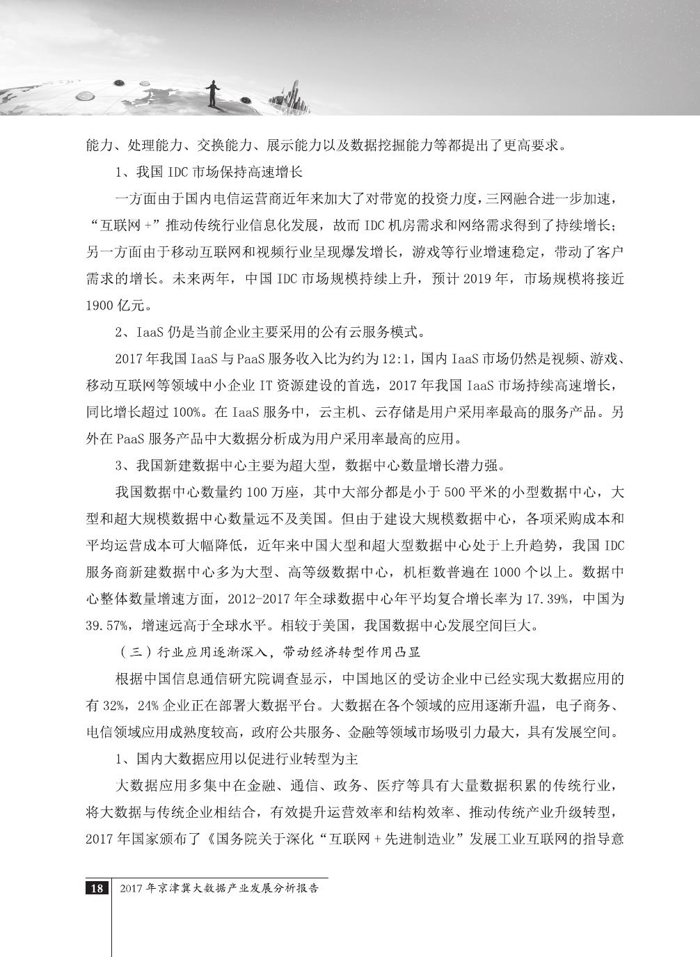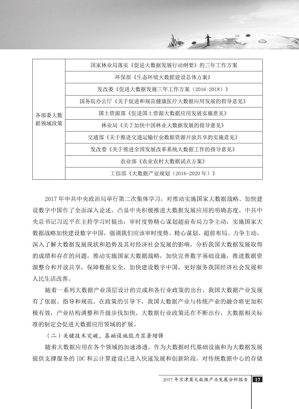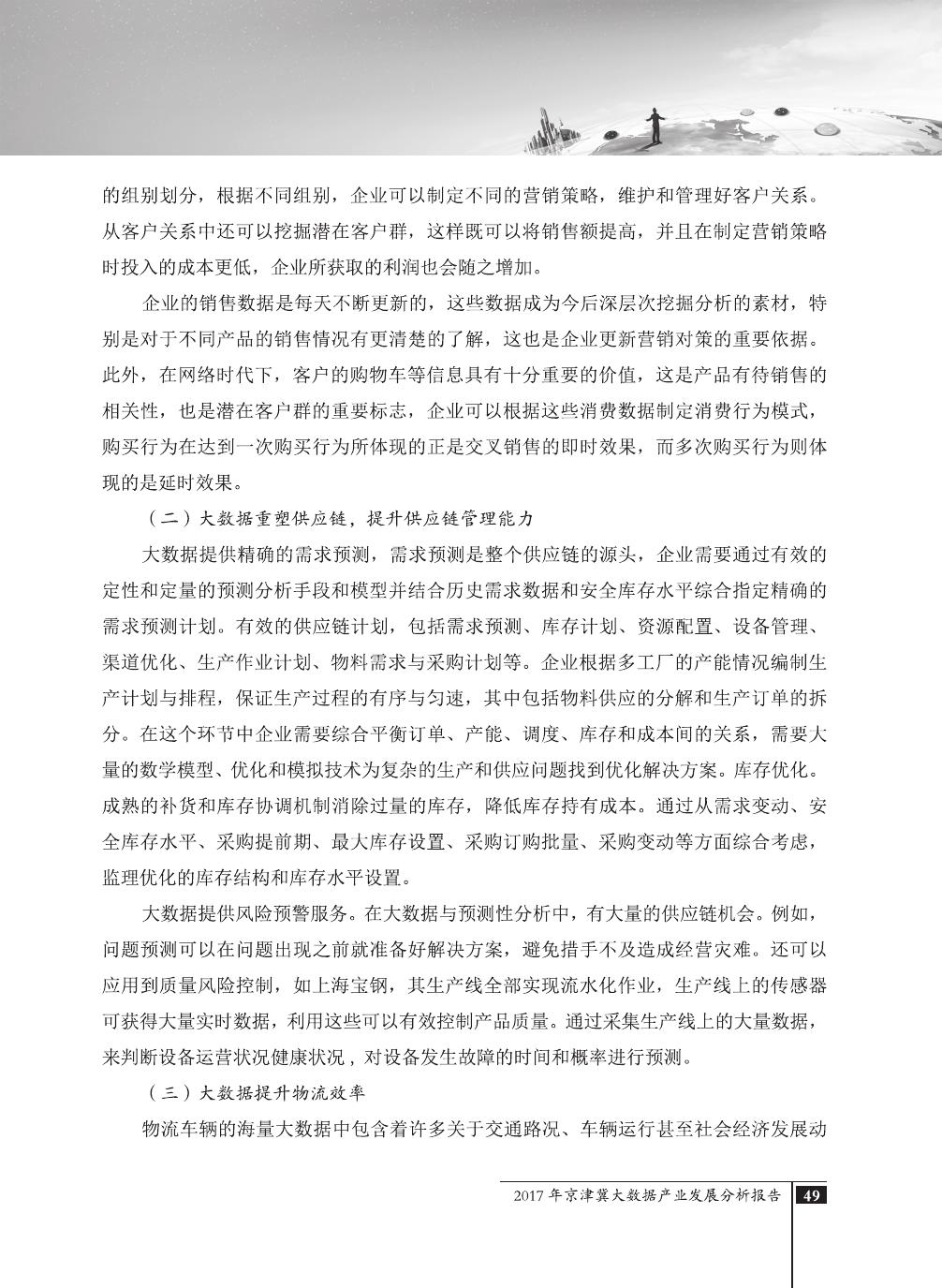 报告介绍了大数据技术在全球与全国范围内的发展演进,京津冀大数据综合试验区的独特优势,以及大数据在京津冀三地相关产业内的错位应用与协同发展,同时对大数据在京津冀的应用前景,对国民经济相关领域带来的拉动作用等热点问题进行了详细的论述。报告对相关方洞悉大数据产业生态规律,制订大数据发展战略,利用大数据创造更大价值,都具有较好的参考借鉴作用。