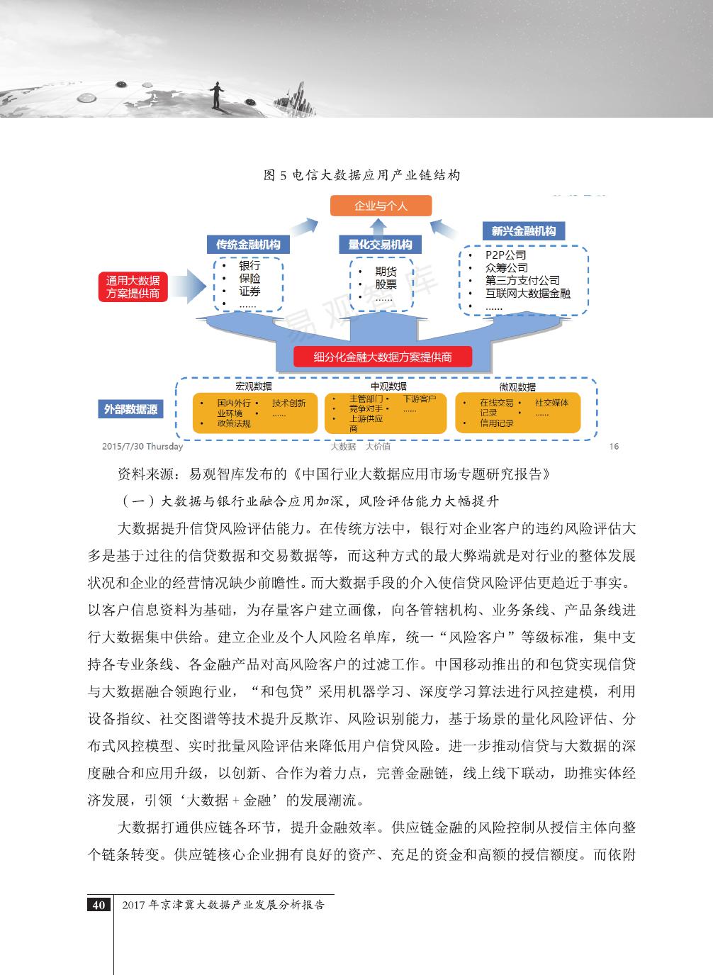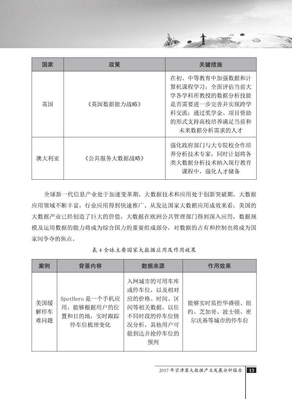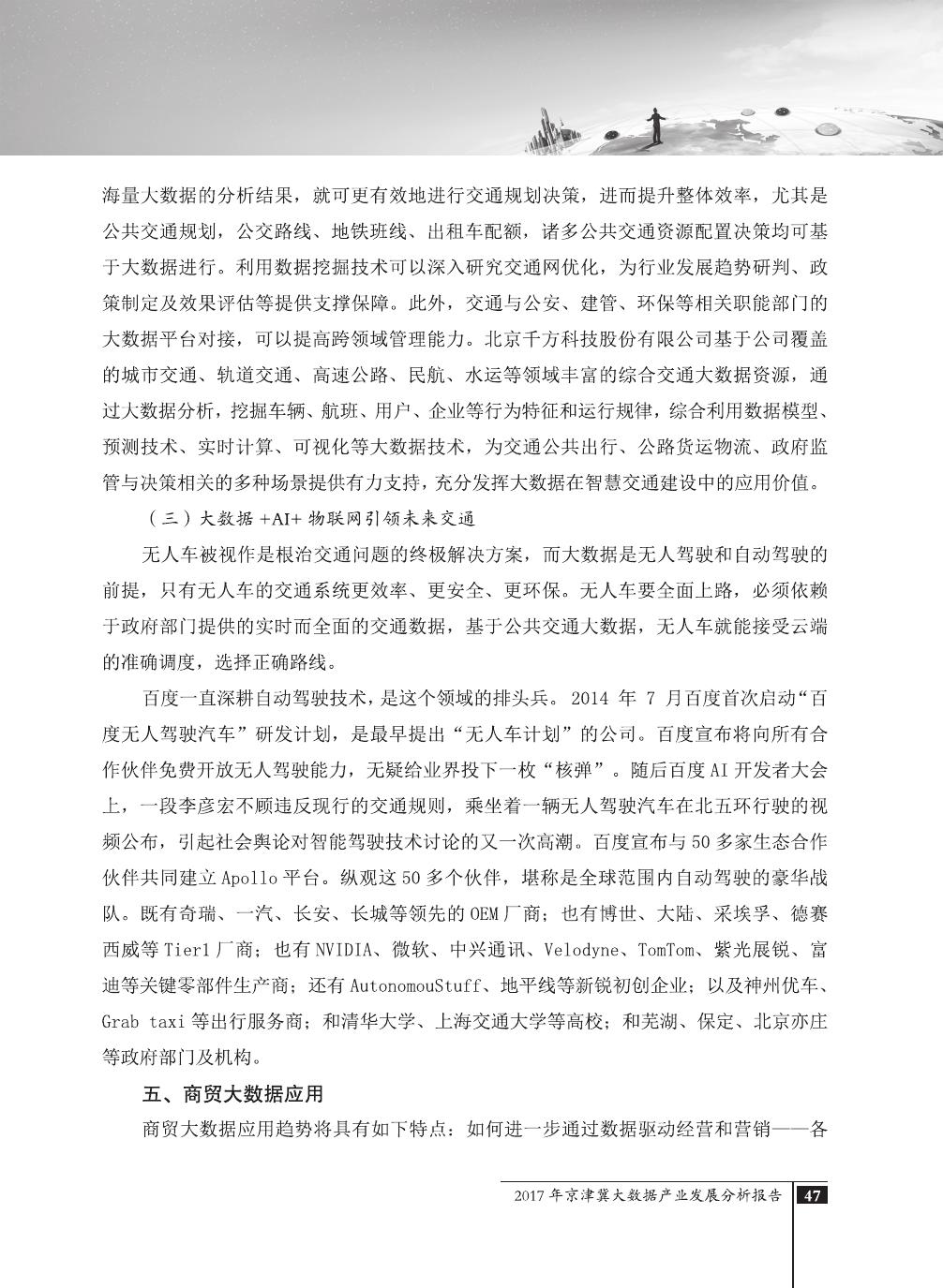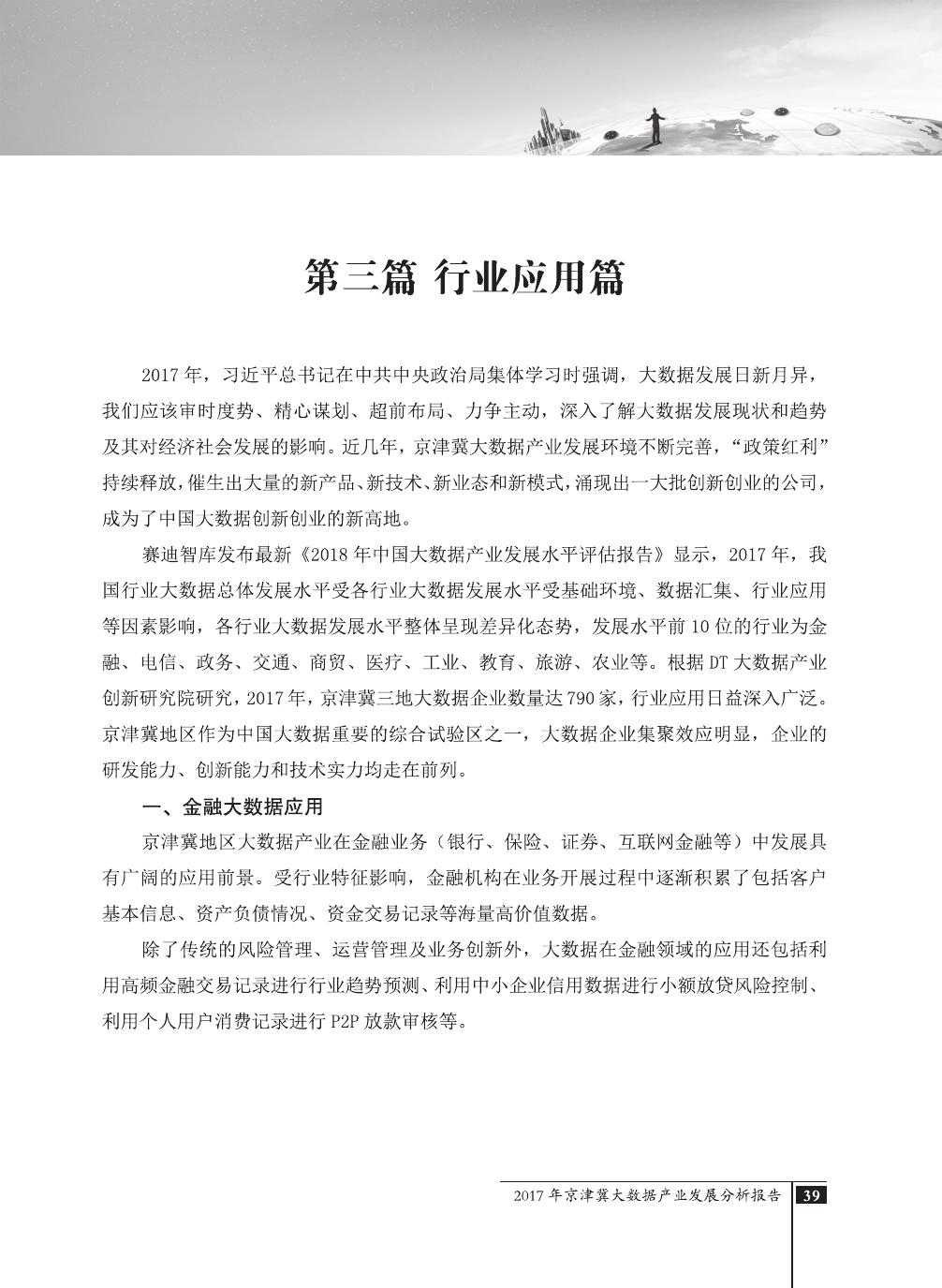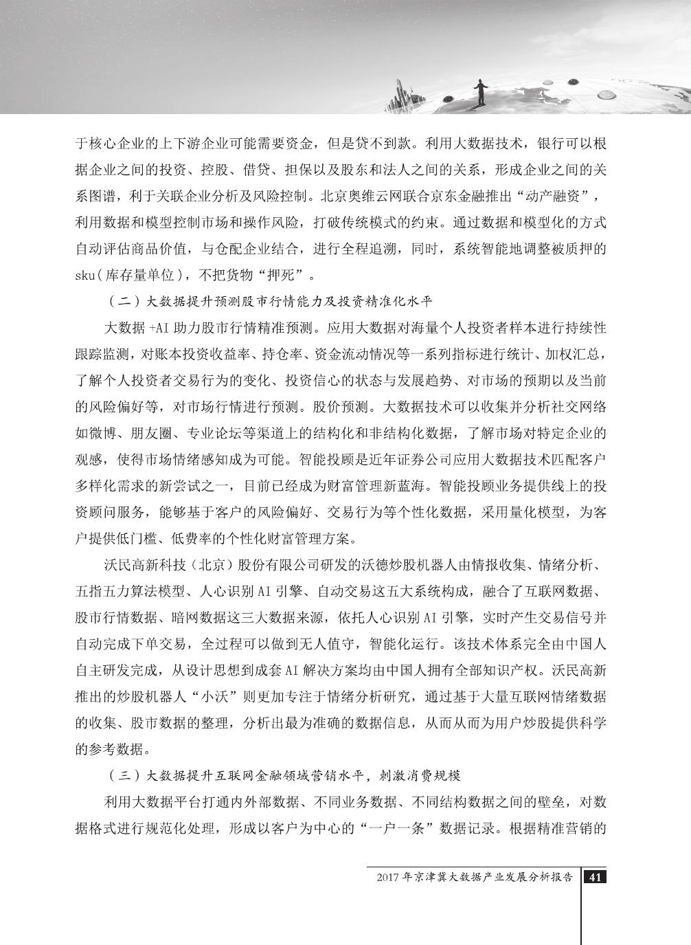 报告介绍了大数据技术在全球与全国范围内的发展演进,京津冀大数据综合试验区的独特优势,以及大数据在京津冀三地相关产业内的错位应用与协同发展,同时对大数据在京津冀的应用前景,对国民经济相关领域带来的拉动作用等热点问题进行了详细的论述。报告对相关方洞悉大数据产业生态规律,制订大数据发展战略,利用大数据创造更大价值,都具有较好的参考借鉴作用。