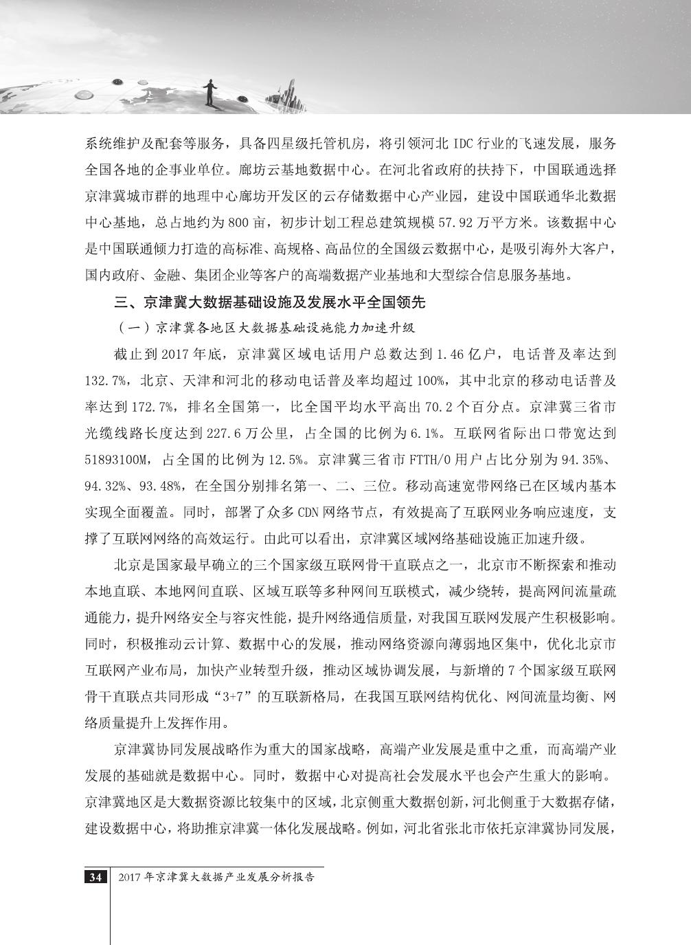 申清说,京津冀大数据产业发展分析报告对我国大数据产业现状、未来前景、对我国经济生产的深远影响等问题进行了全面阐述。并对京津冀大数据综合试验区的战略定位、整体布局、优势与特点进行了详细分析,为政府、企业更好地了解我国大数据产业提供了独特的视角。