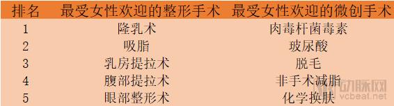 最受女性欢迎的手术和微创医美TOP5 数据来源ASAPS
