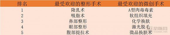 整体最受欢迎的手术和微创医美TOP5 数据来源ASAPS