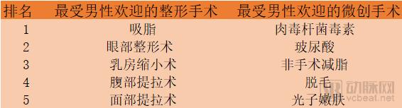 最受男性欢迎的手术和微创医美TOP5 数据来源ASAPS