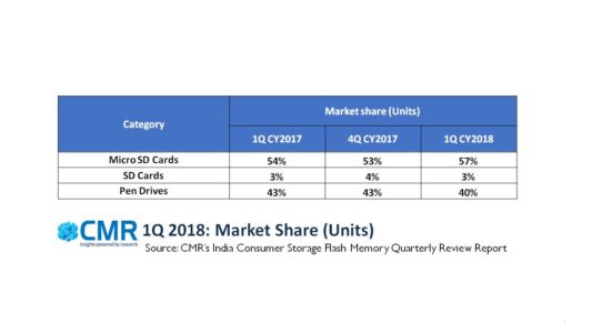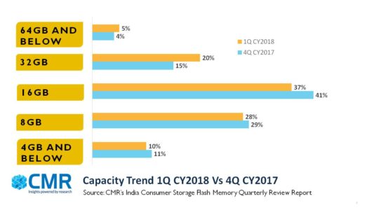 根据CMR的最新数据,2018年第一季度印度消费存储闪存市场比前一个季度增长14%。
