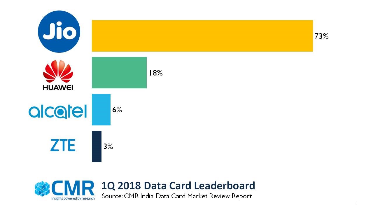 根据CMR的数据,2018年第一季度印度数据卡(USB和Wi-Fi)市场和前一个季度比下降18%。