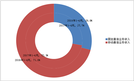 图3 2018年1-4月固定和移动业务收入占比情况
