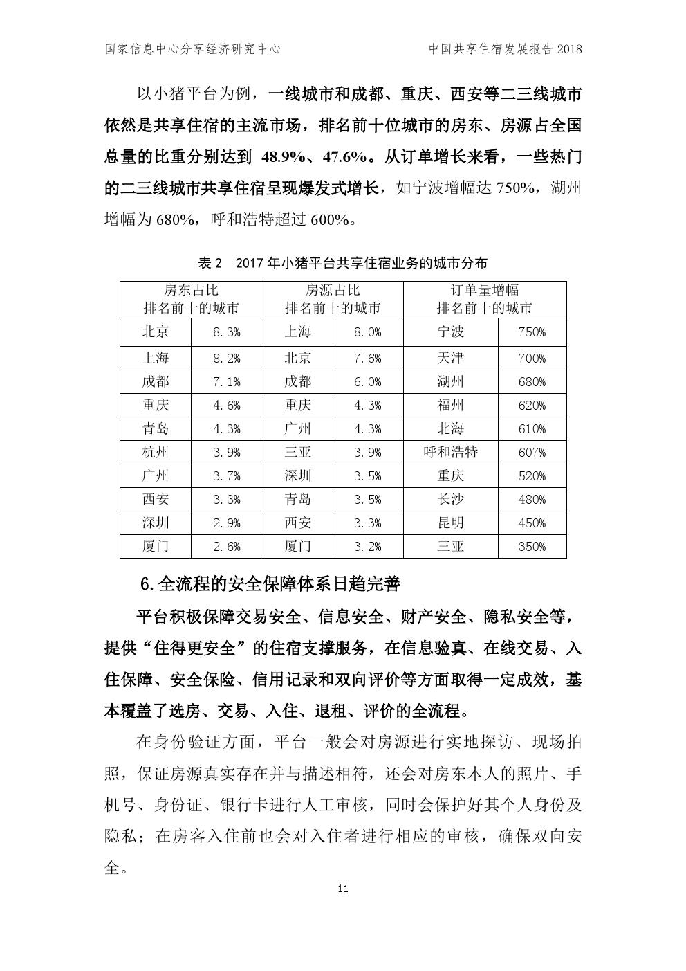 从区域上看,一线城市和成都、重庆、西安等二三线城市是共享住宿的主流市场,排名前十位城市的房东、房源占全国总量的比重分别达到48.9%、47.6%。从订单增长来看,一些热门的二三线城市共享住宿呈现爆发式增长。面对巨大的出境游住宿市场需求,小猪、途家等平台企业积极拓展海外房源,布局海外市场。