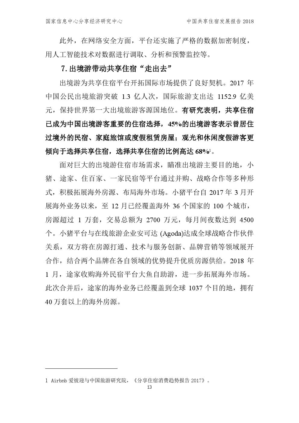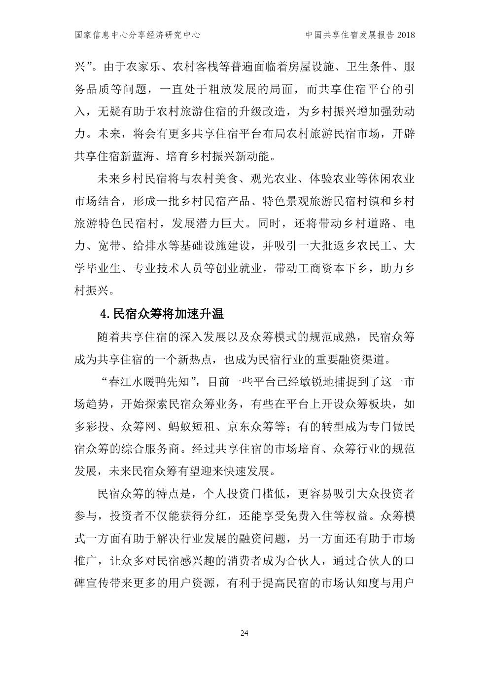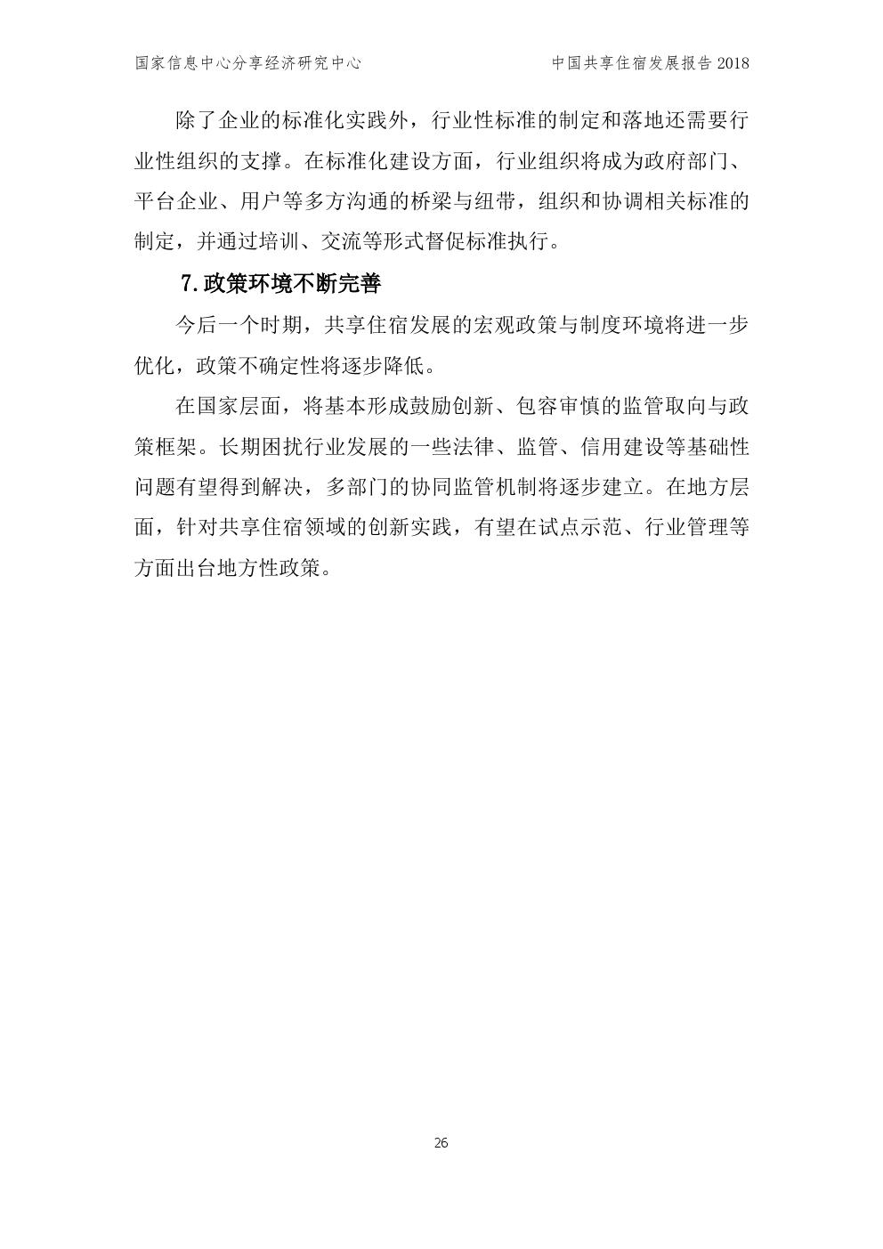 报告称,今后一个时期,共享住宿发展的宏观政策与制度环境将进一步完善。在国家层面,将基本形成鼓励创新、包容审慎的监管取向与政策框架,多部门的协同监管机制将逐步建立。在地方层面,针对共享住宿领域的创新实践,有望在试点示范、行业管理等方面出台地方性政策。