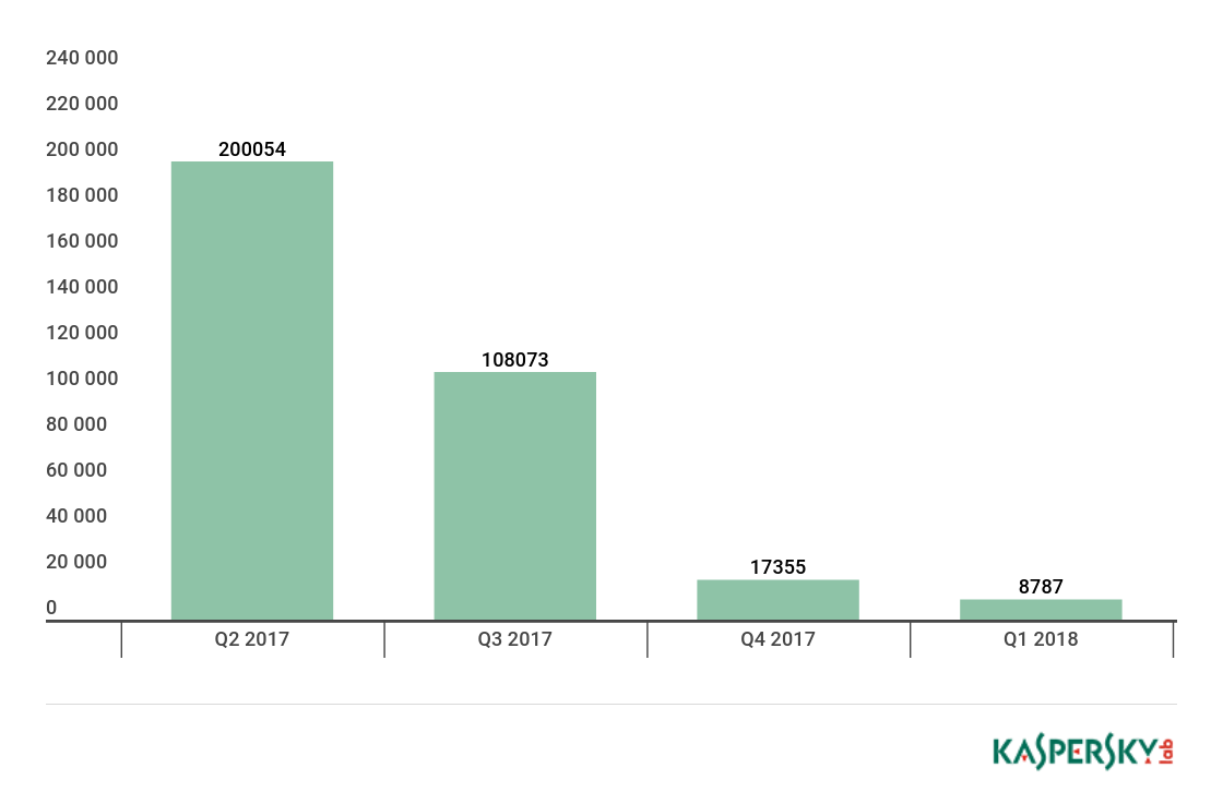 卡巴斯基实验室发布了2018年第一季度手机勒索木马的情况。第一季度共发现8,787个手机勒索软件木马的安装包,仅是前一个季度的一半。手机勒索木马显著下降主要是因为攻击者开始更多地使用Droppers试图阻止检测并隐藏有效载荷。因此,即使这些恶意软件可能包含手机勒索软件,也会将其检测为一个Dropper。