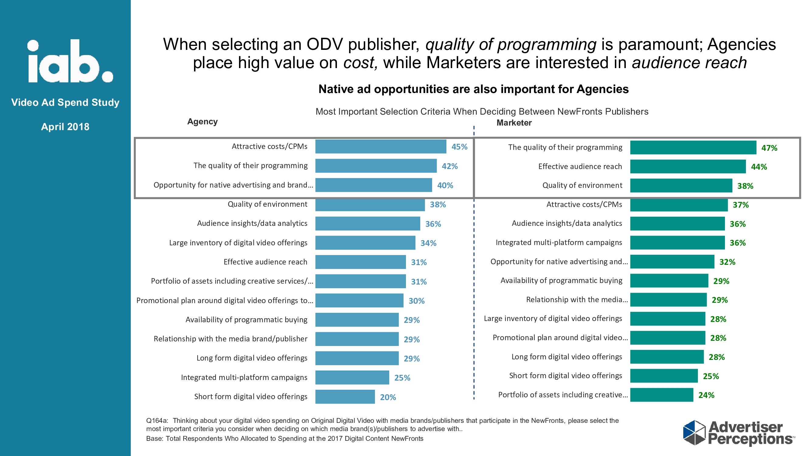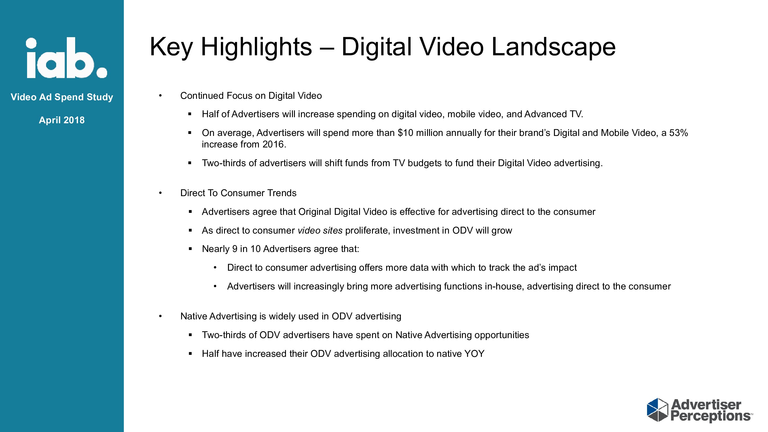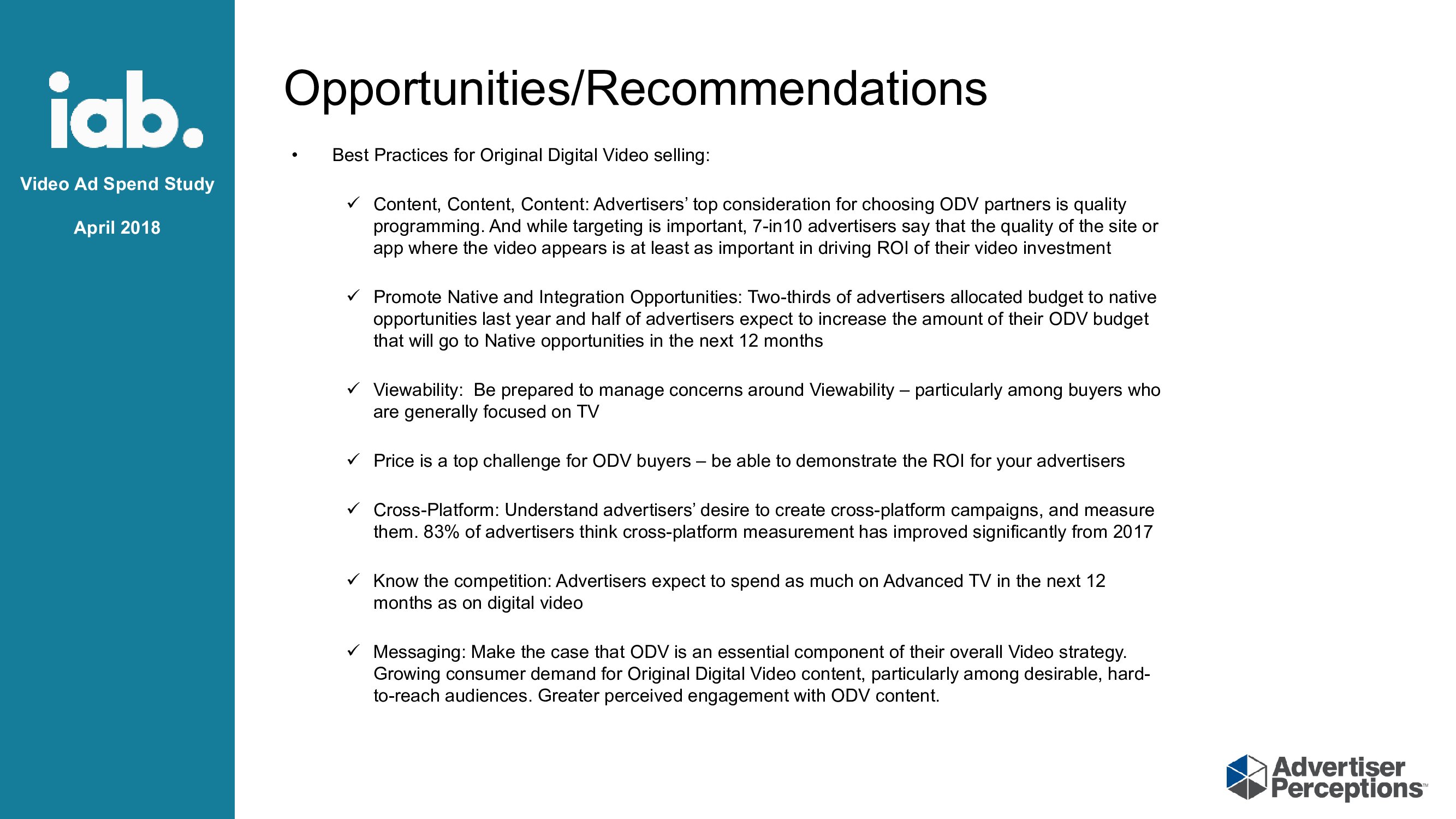 促进原生和整合机会:去年,2/3的广告客户将预算分配给原生广告,半数的广告客户希望增加其ODV预算,以便在未来12个月内提供原生广告;