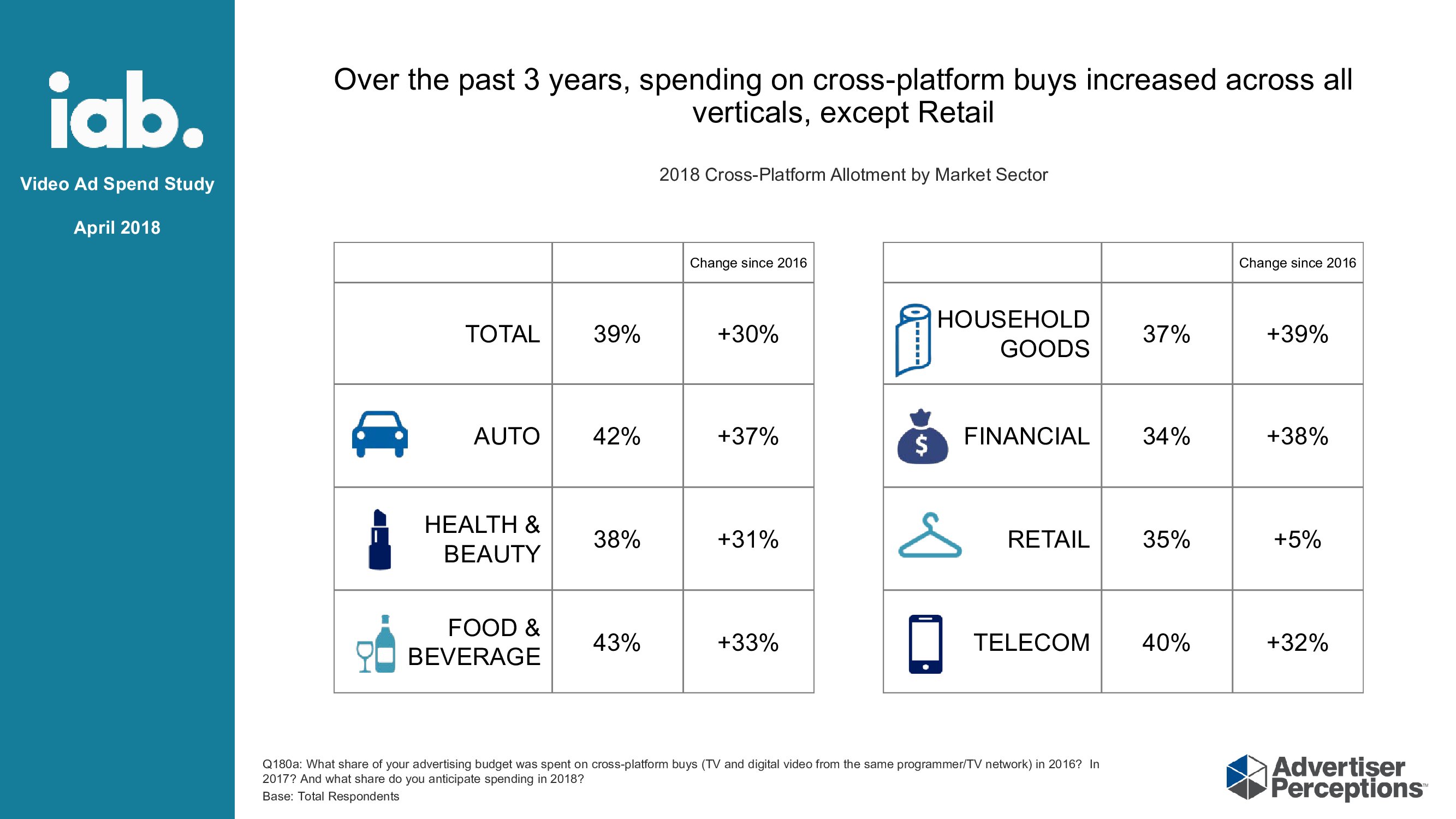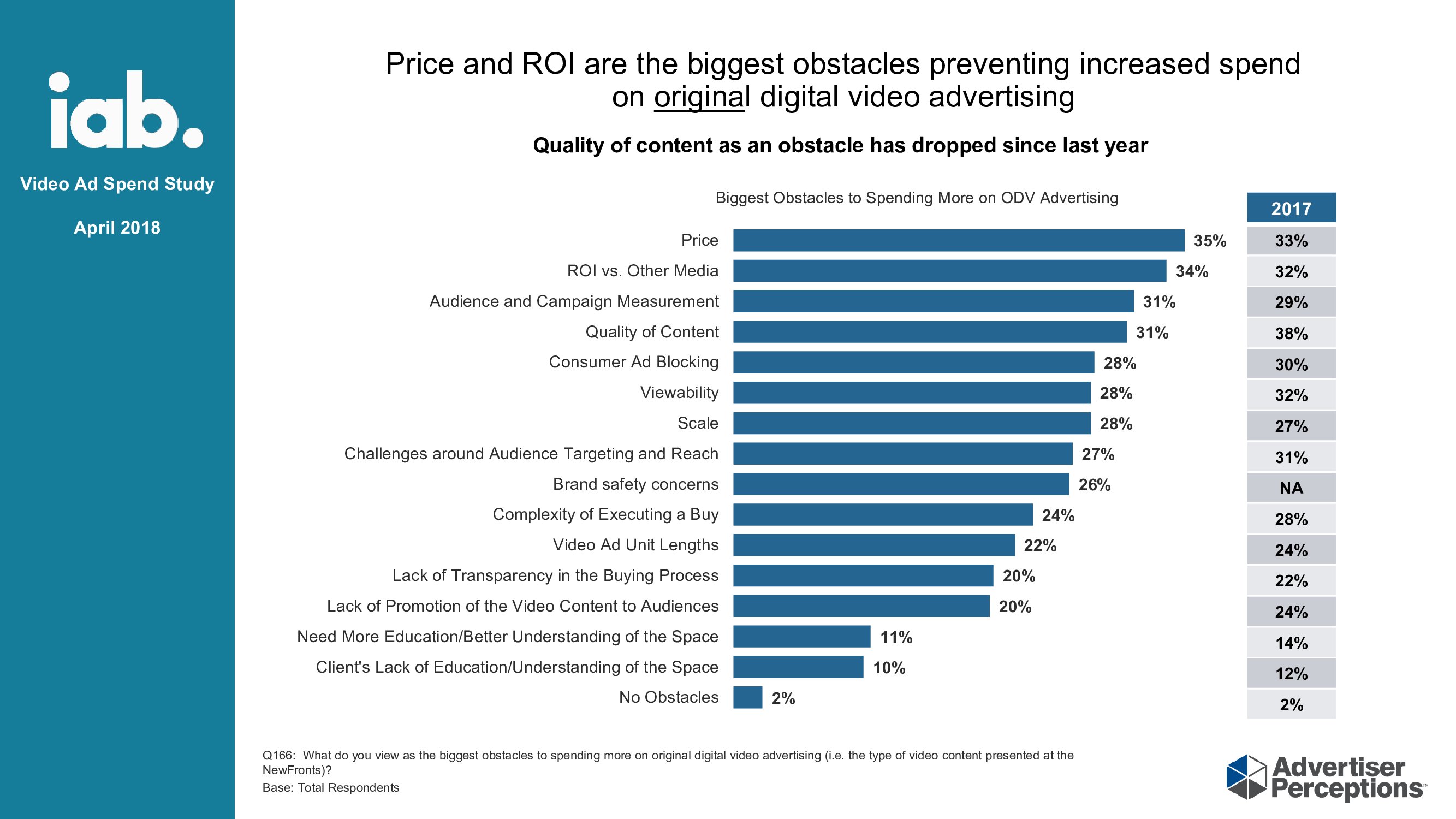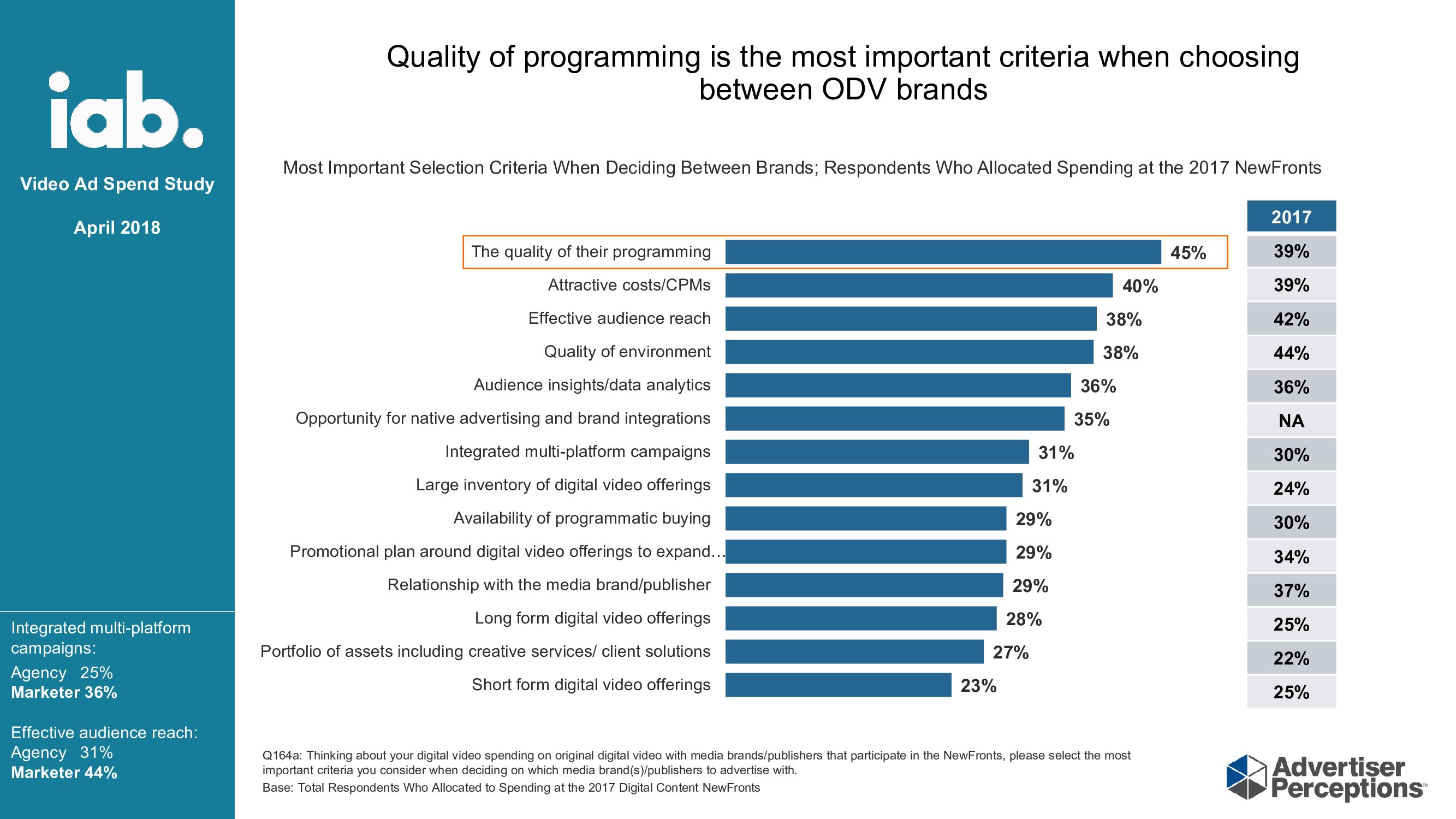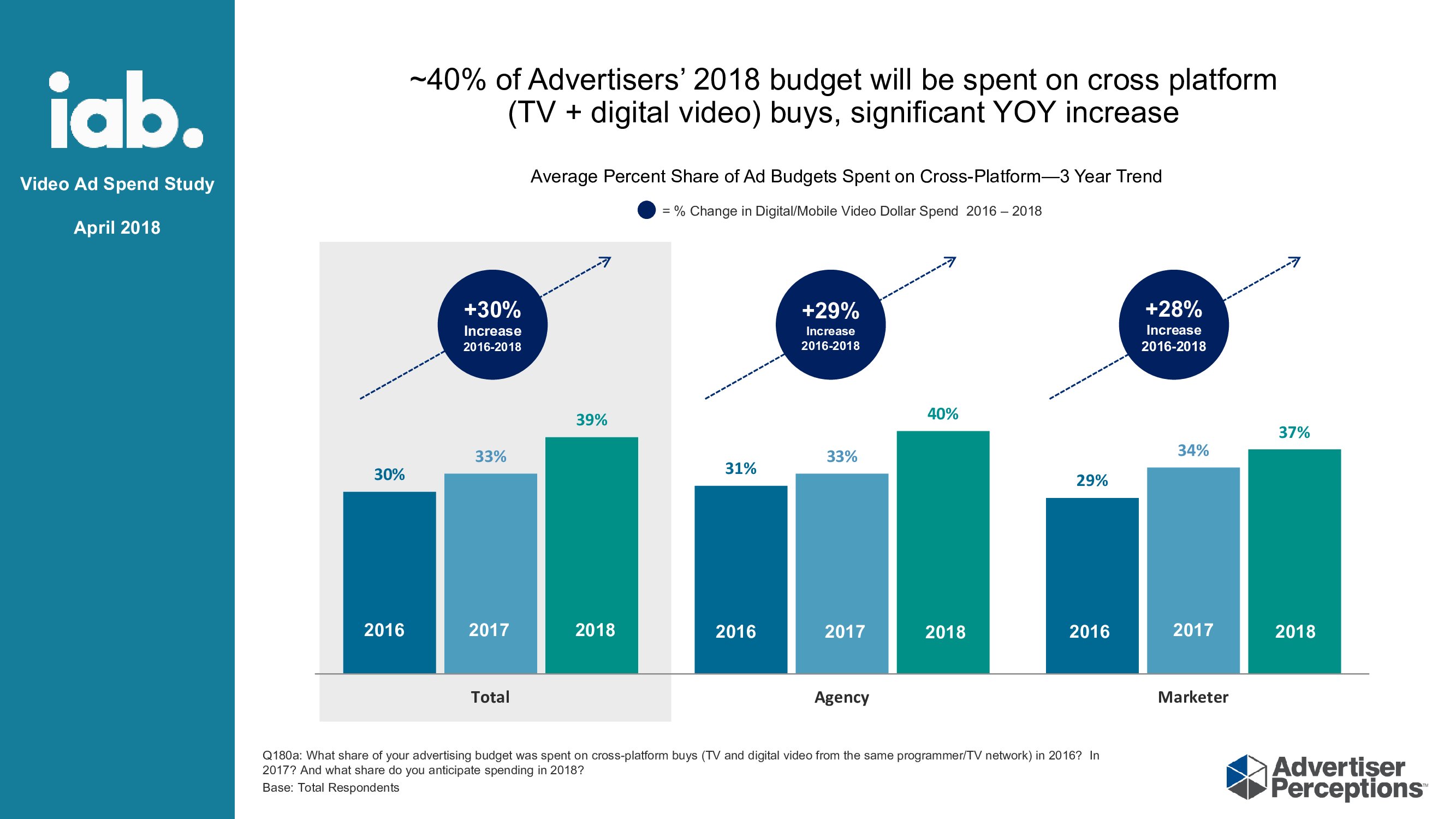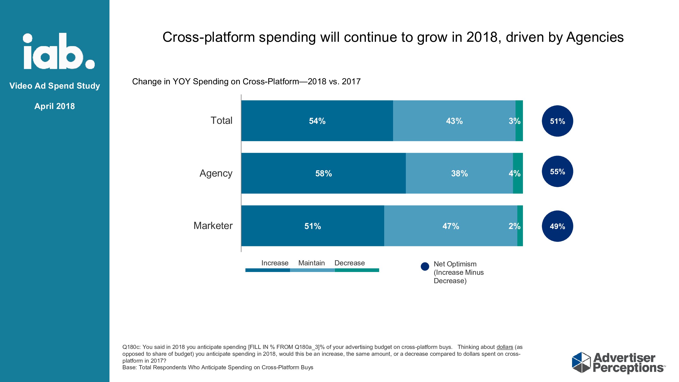 跨平台:了解广告客户创建跨平台广告的愿望。83%的广告客户认为跨平台测量广告比2017年有显着改善;