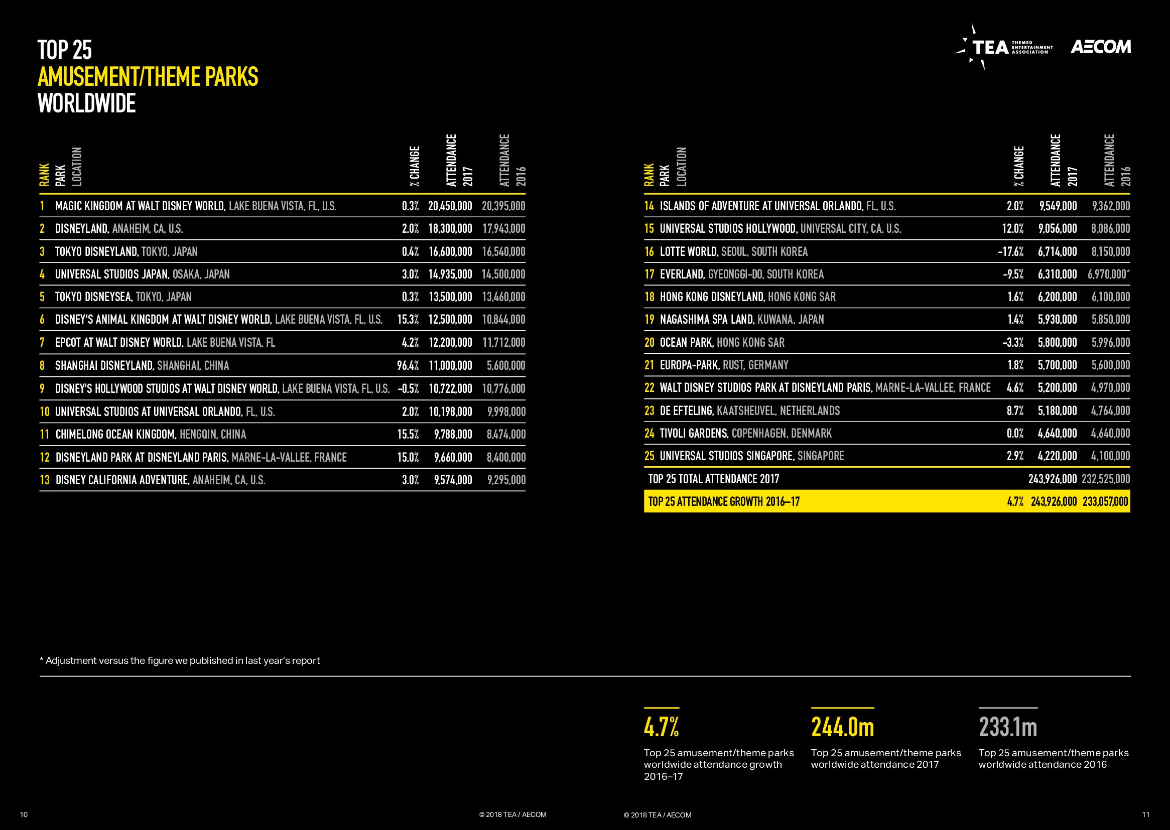 全球前25大娱乐/主题公园流量为2.44亿人次,同比增长4.7%;
