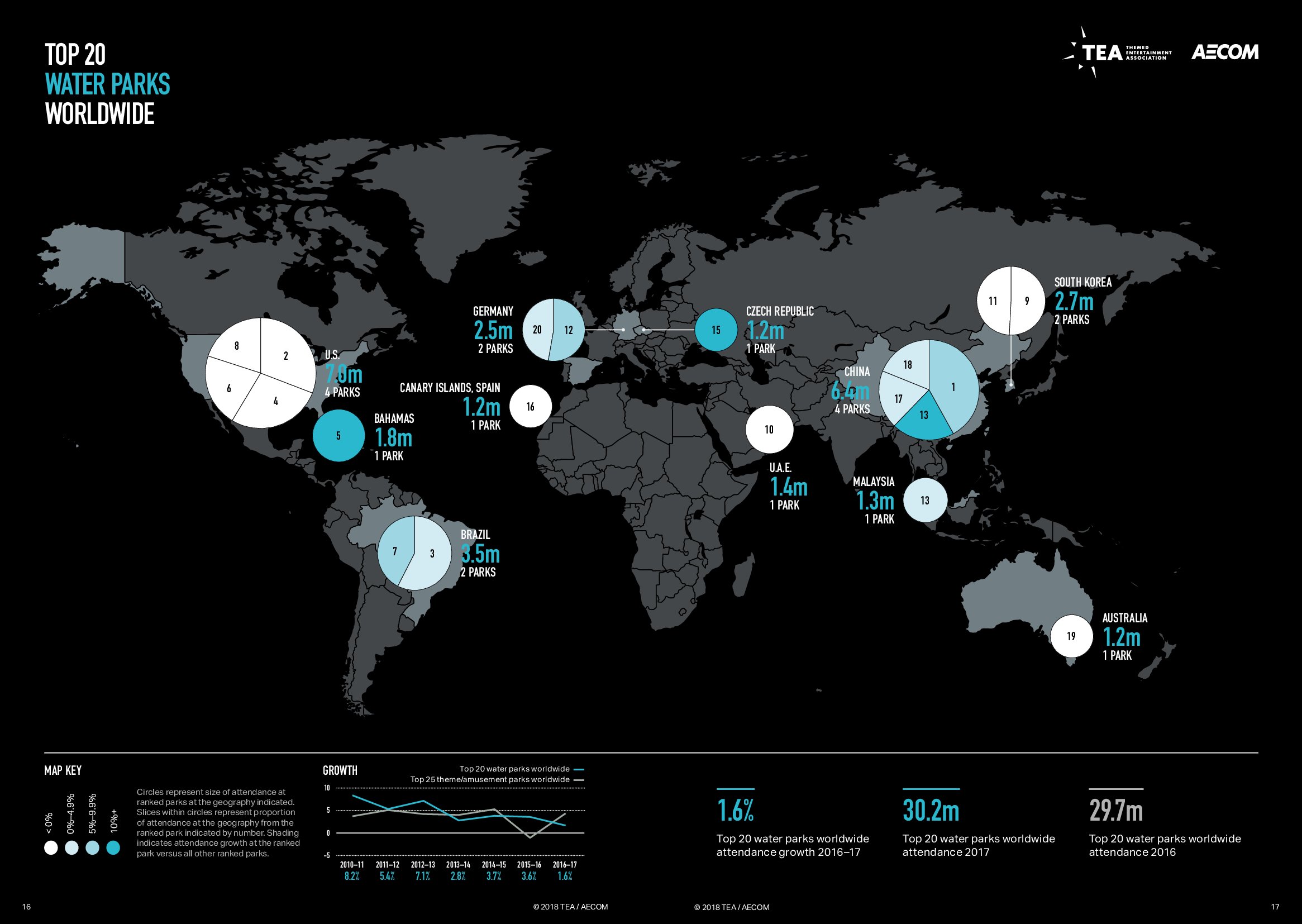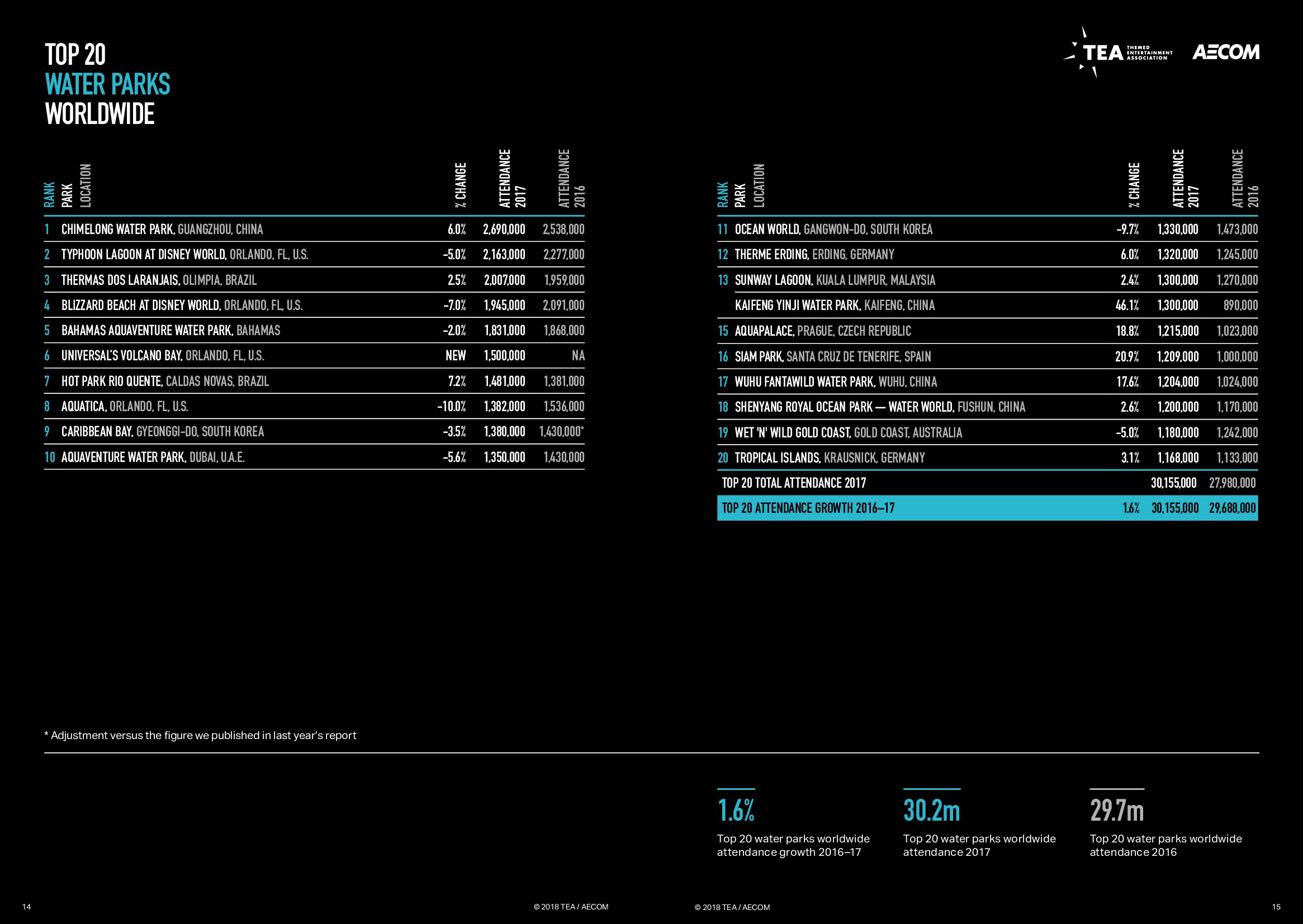 全球前20个水上公园的流量为3000万人次,同比增长1.6%。