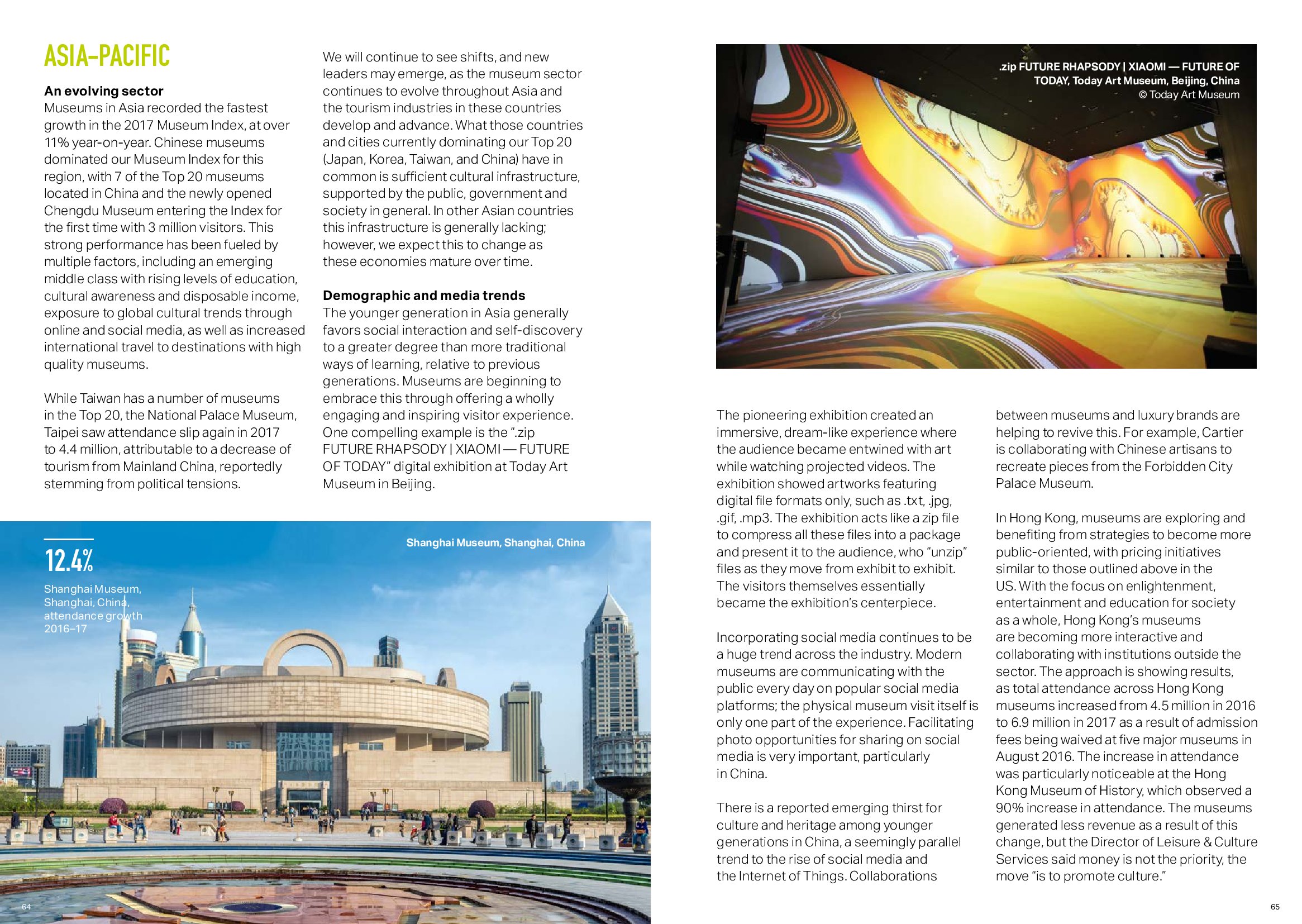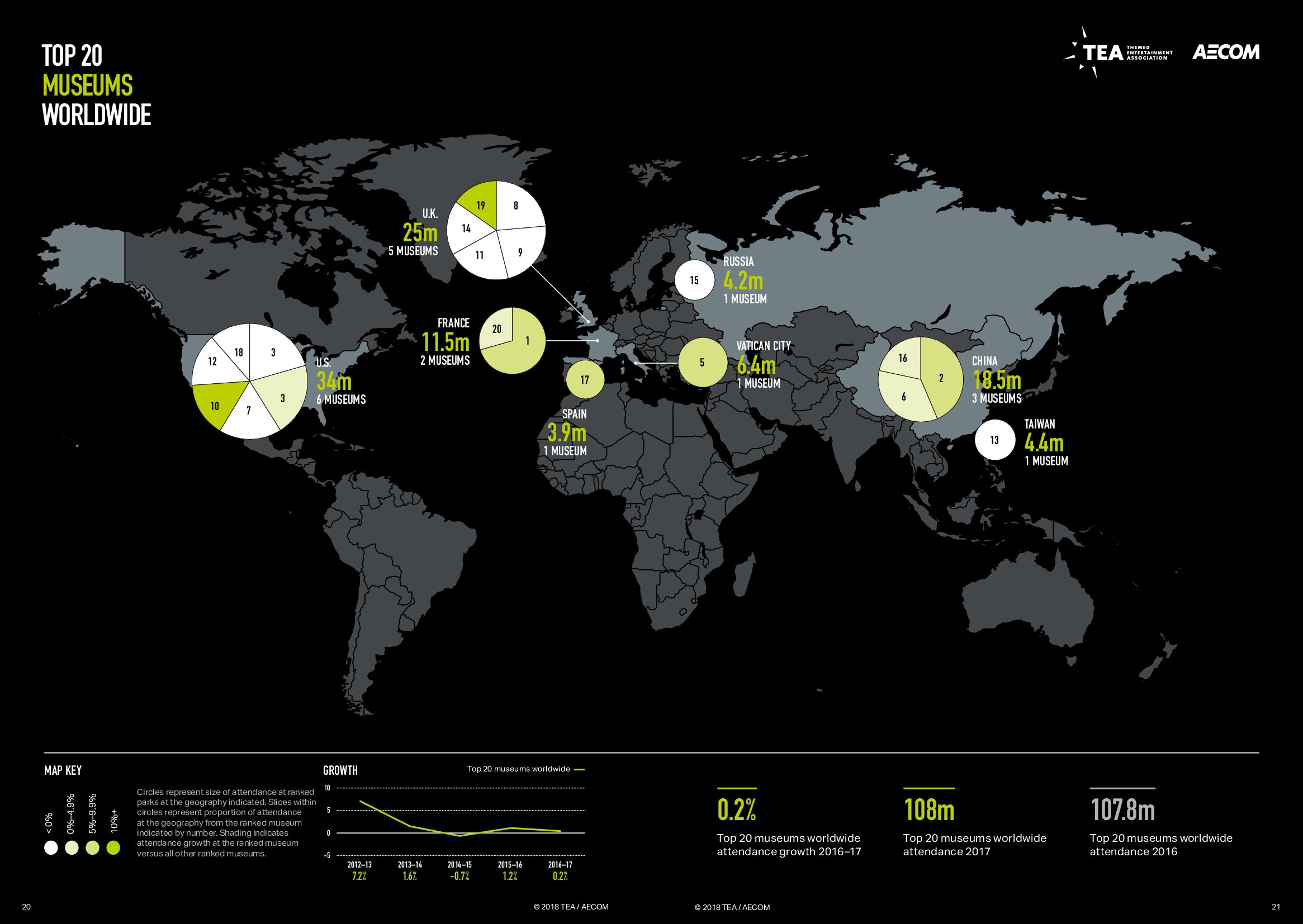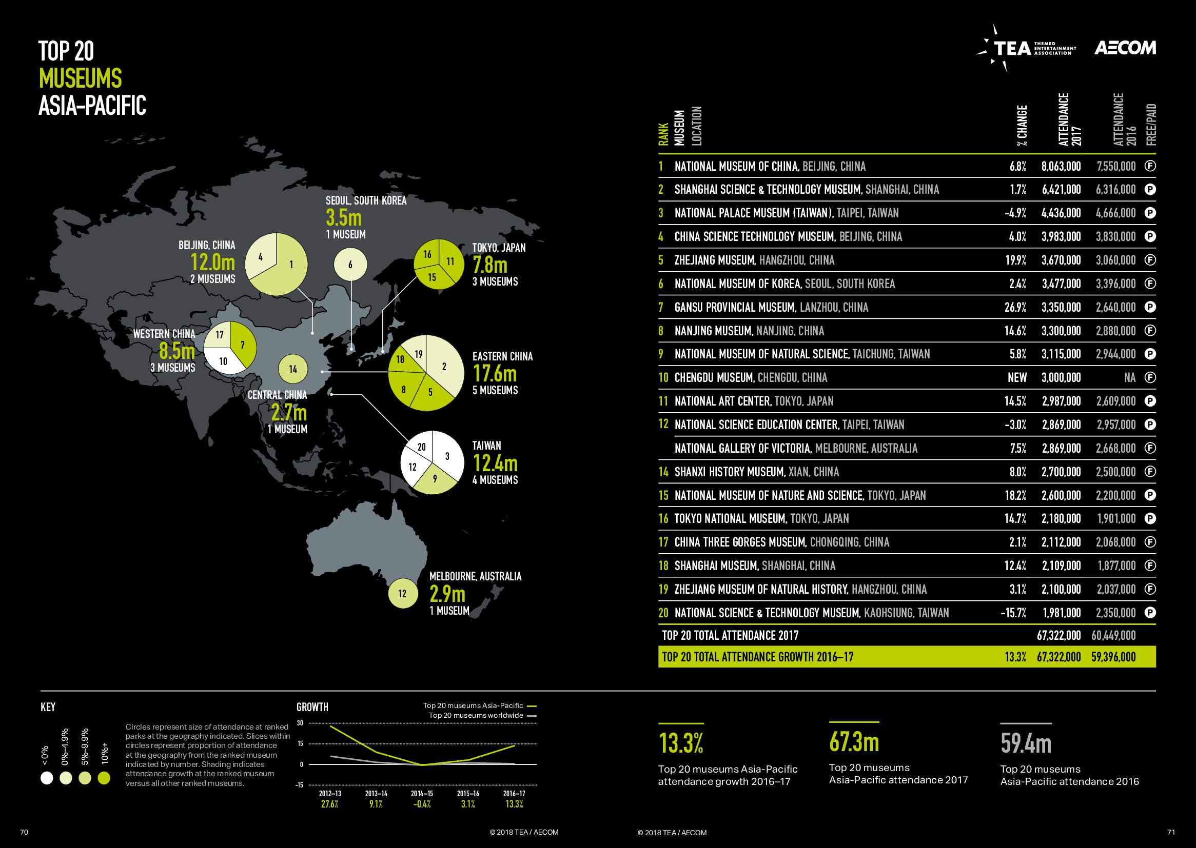 亚太地区20大博物馆流量为6700万人次,同比增长13.3%;