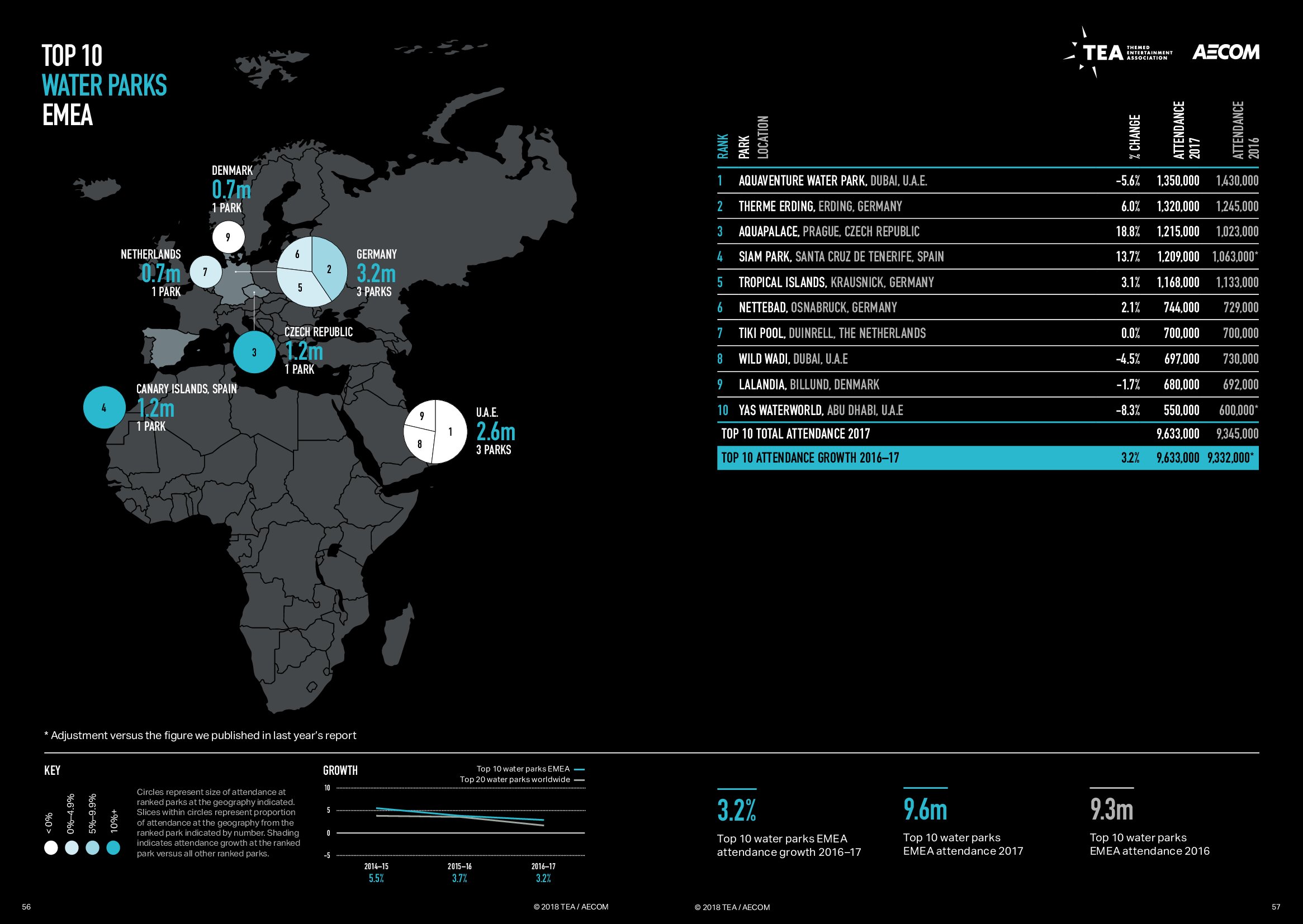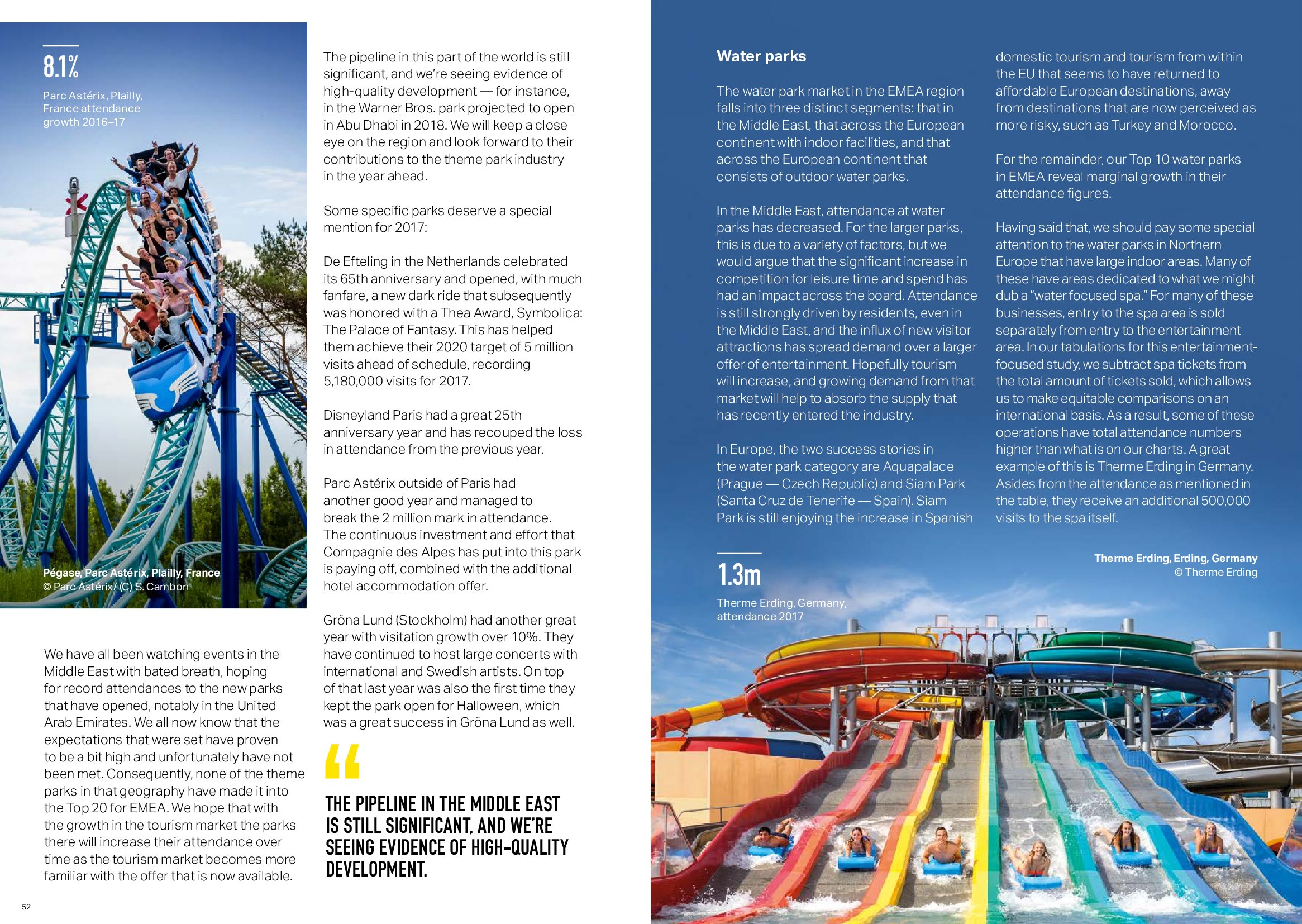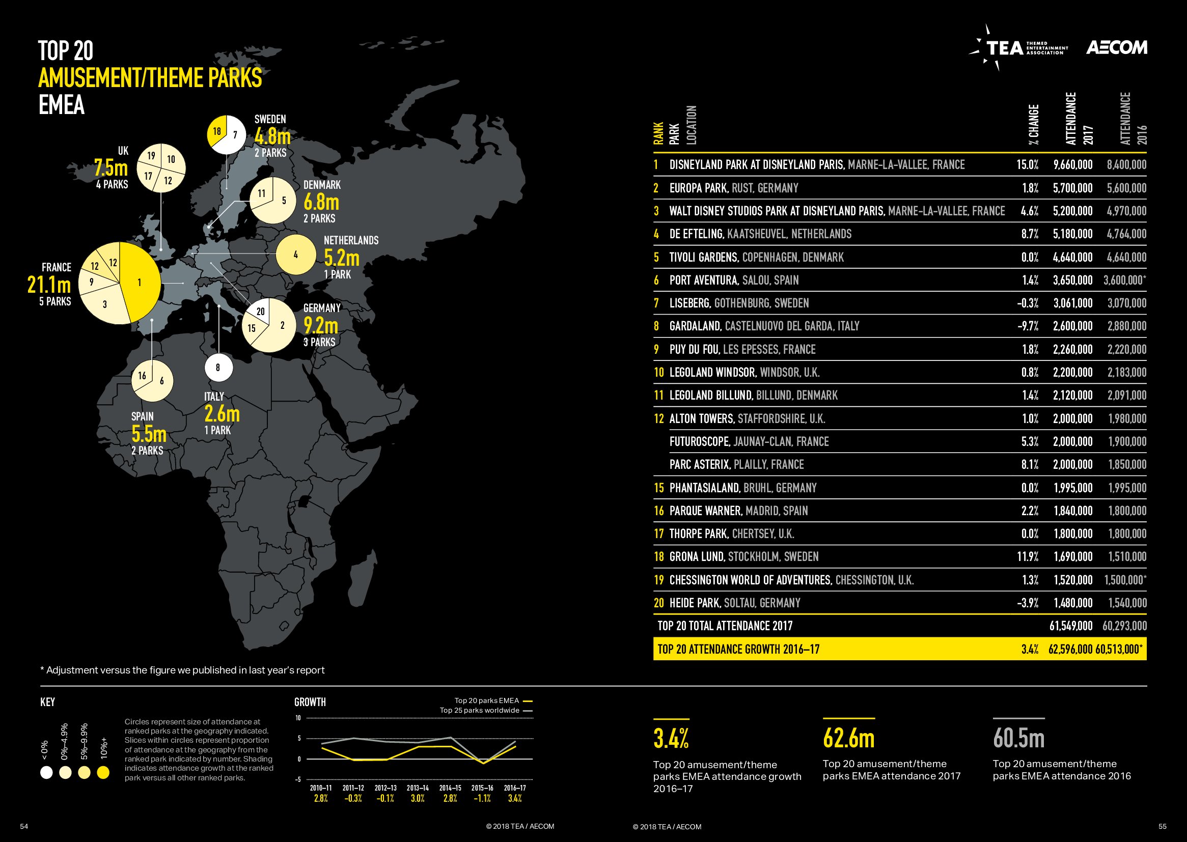 欧洲、中东和非洲前20大娱乐/主题公园的访问量为6300万人次,同比增长3.4%;