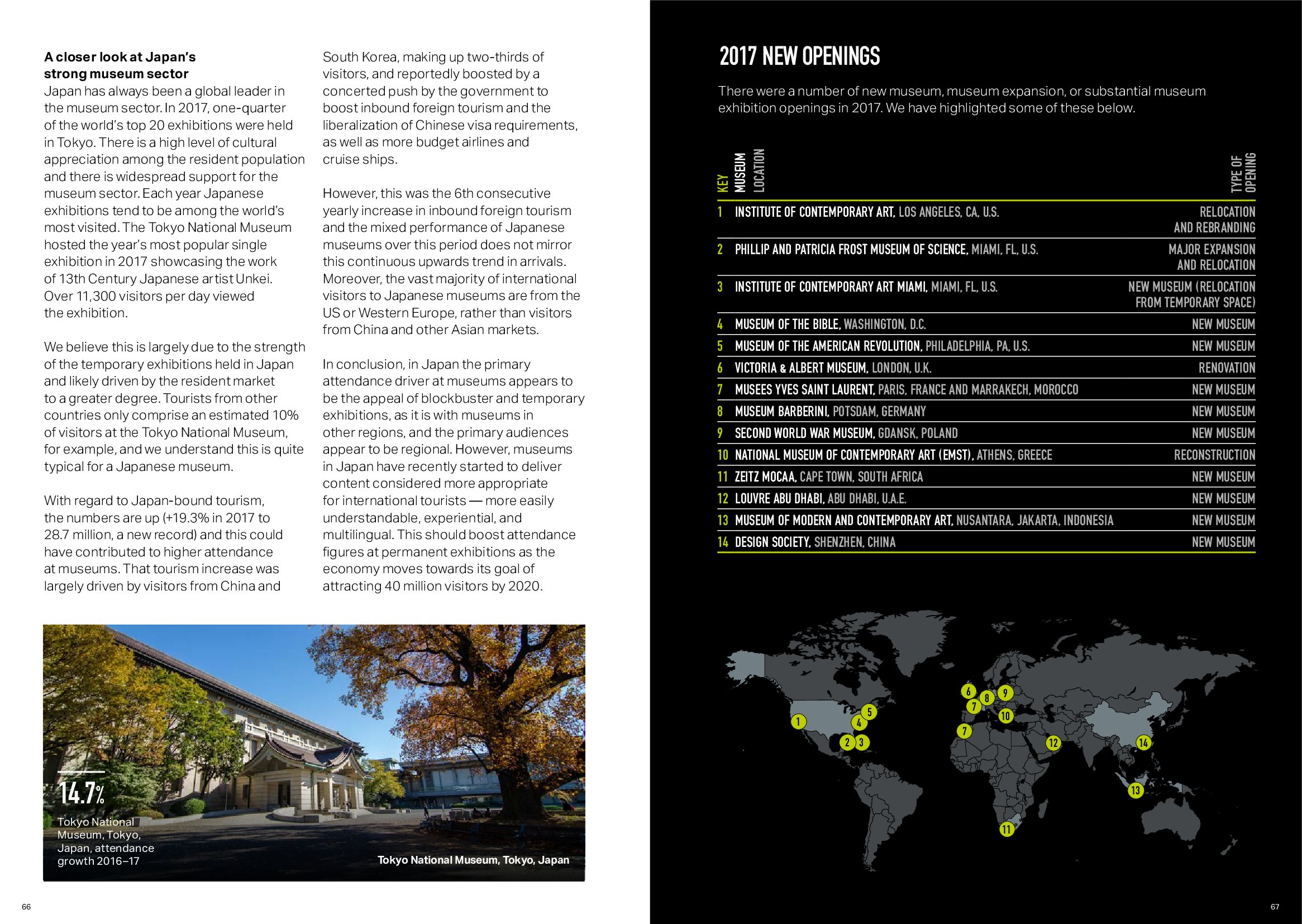 由于新作品受到欢迎,亚洲地区的博物馆表现更强劲,访问量增长5%。
