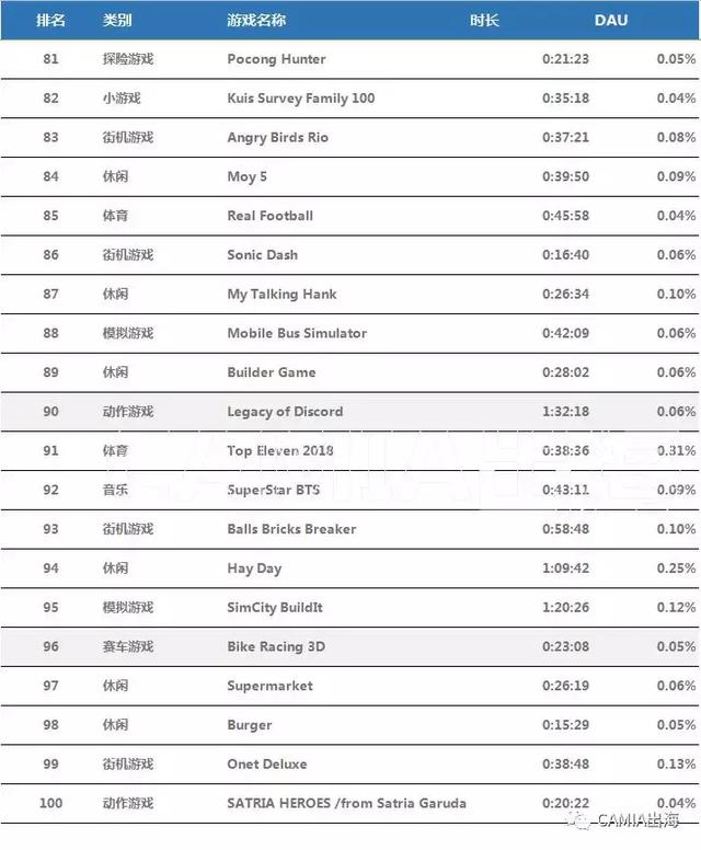 本期CAMIA采集3月31日印尼GP前300应用&游戏2018年第一季度相关数据,并总结出TOP100下载榜单,情况如下: