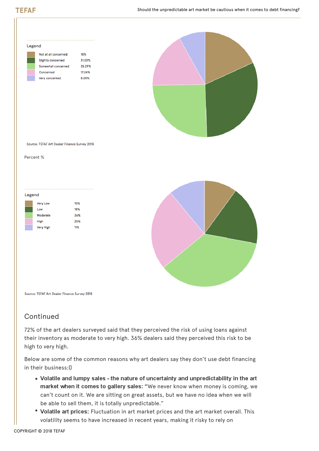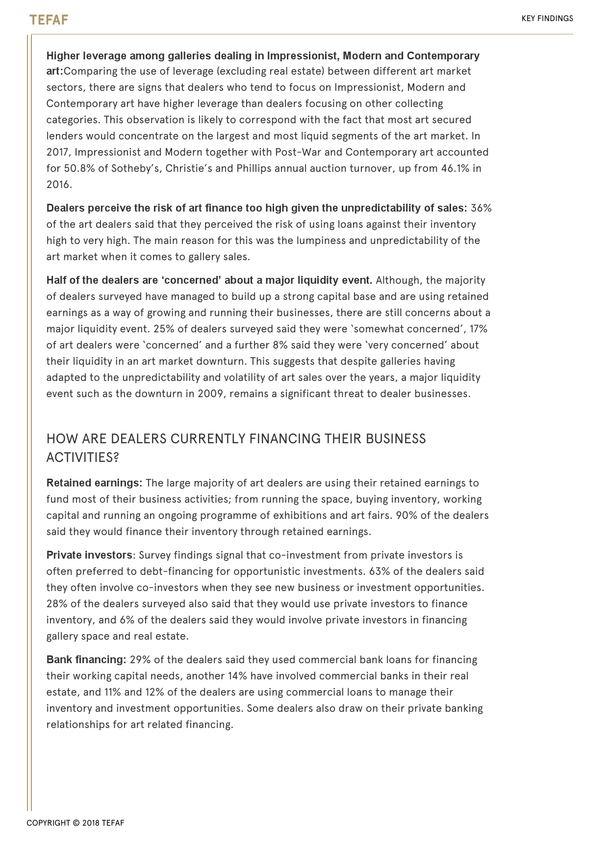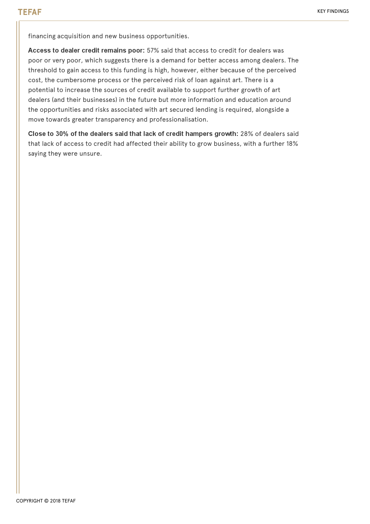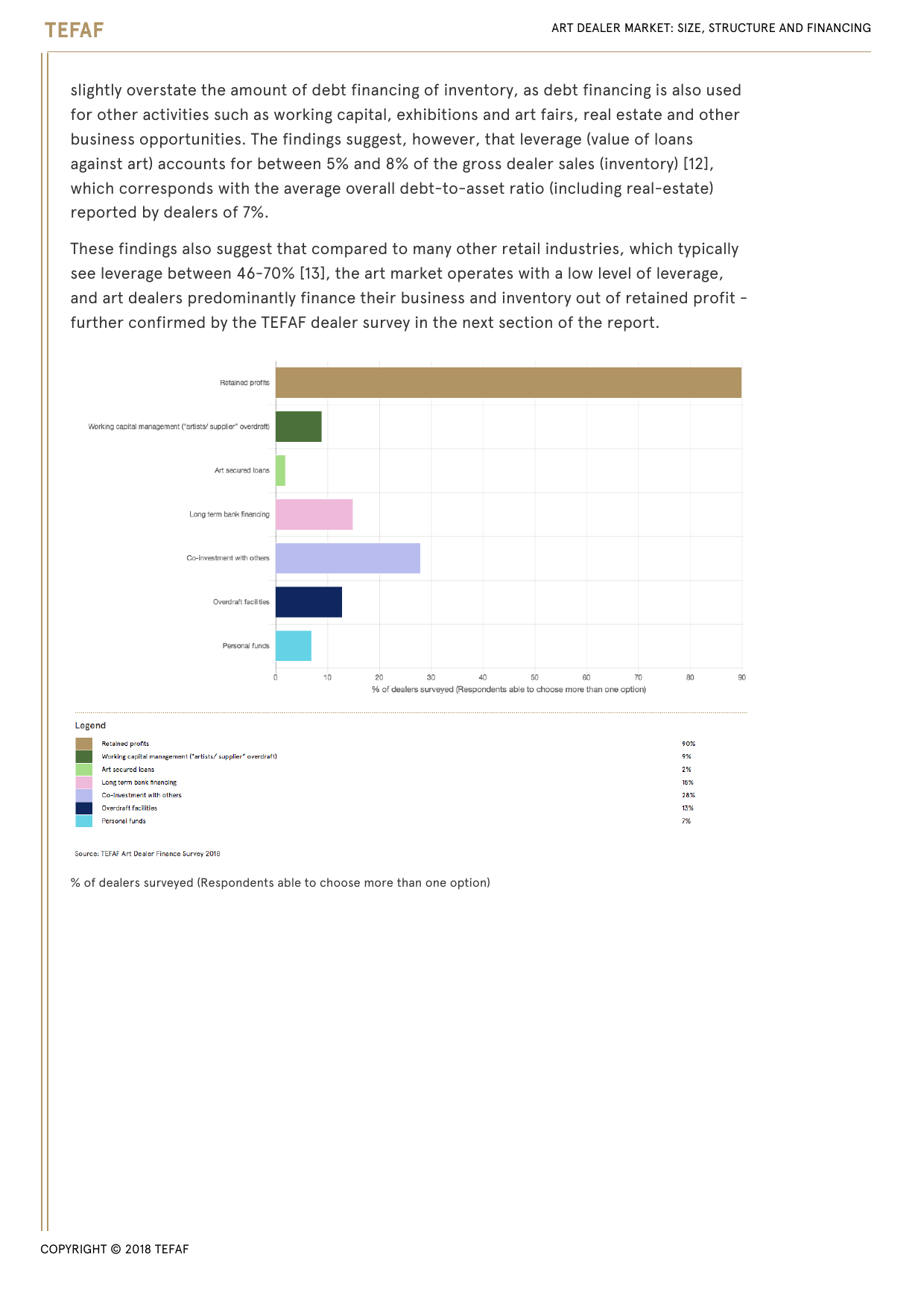 根据资料反馈,67%的艺术经纪人的资产负债率为0至10%,低杠杆是业内普遍的融资现状,与此同时也存在着存货积压和付款周期延长的现象。