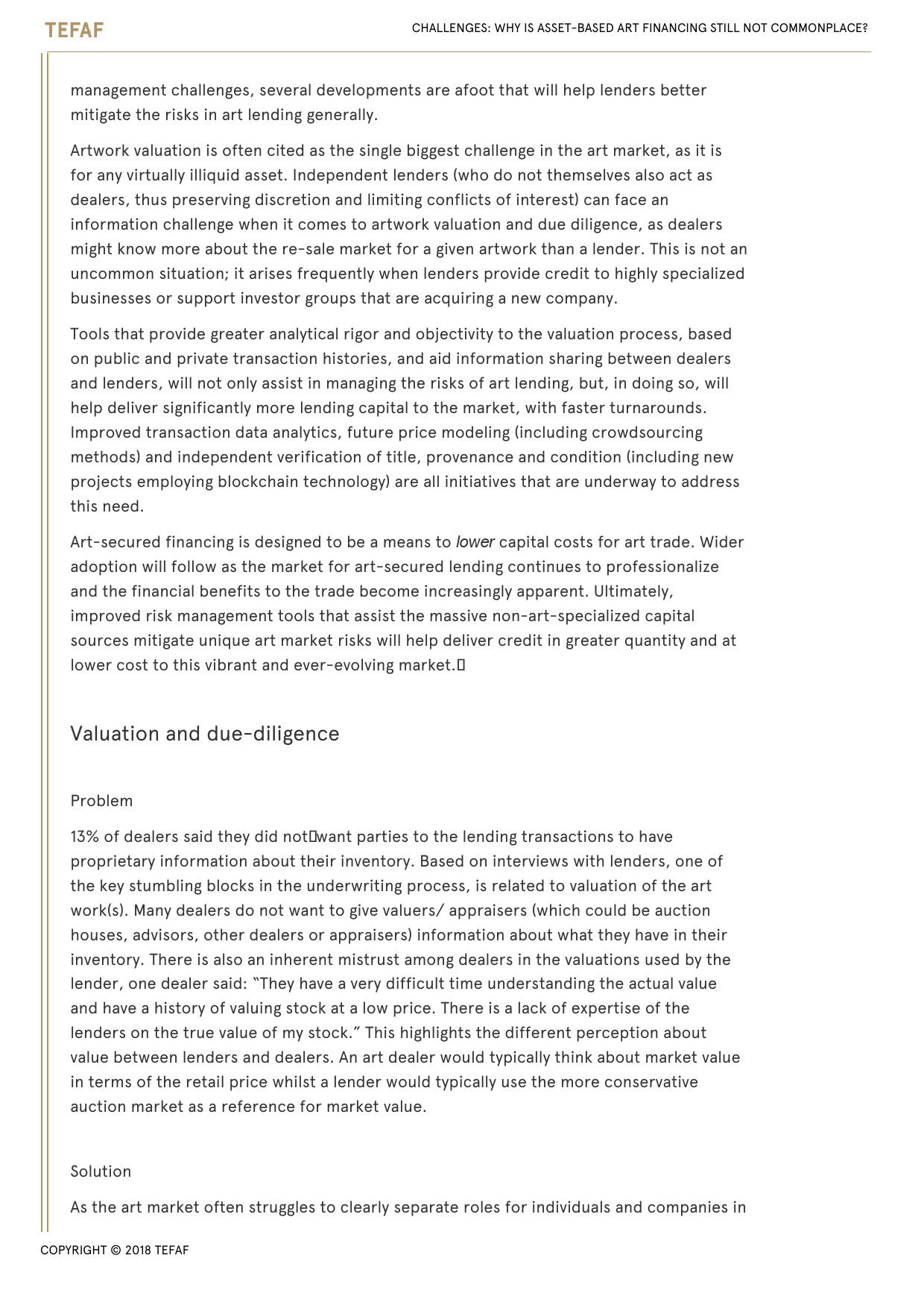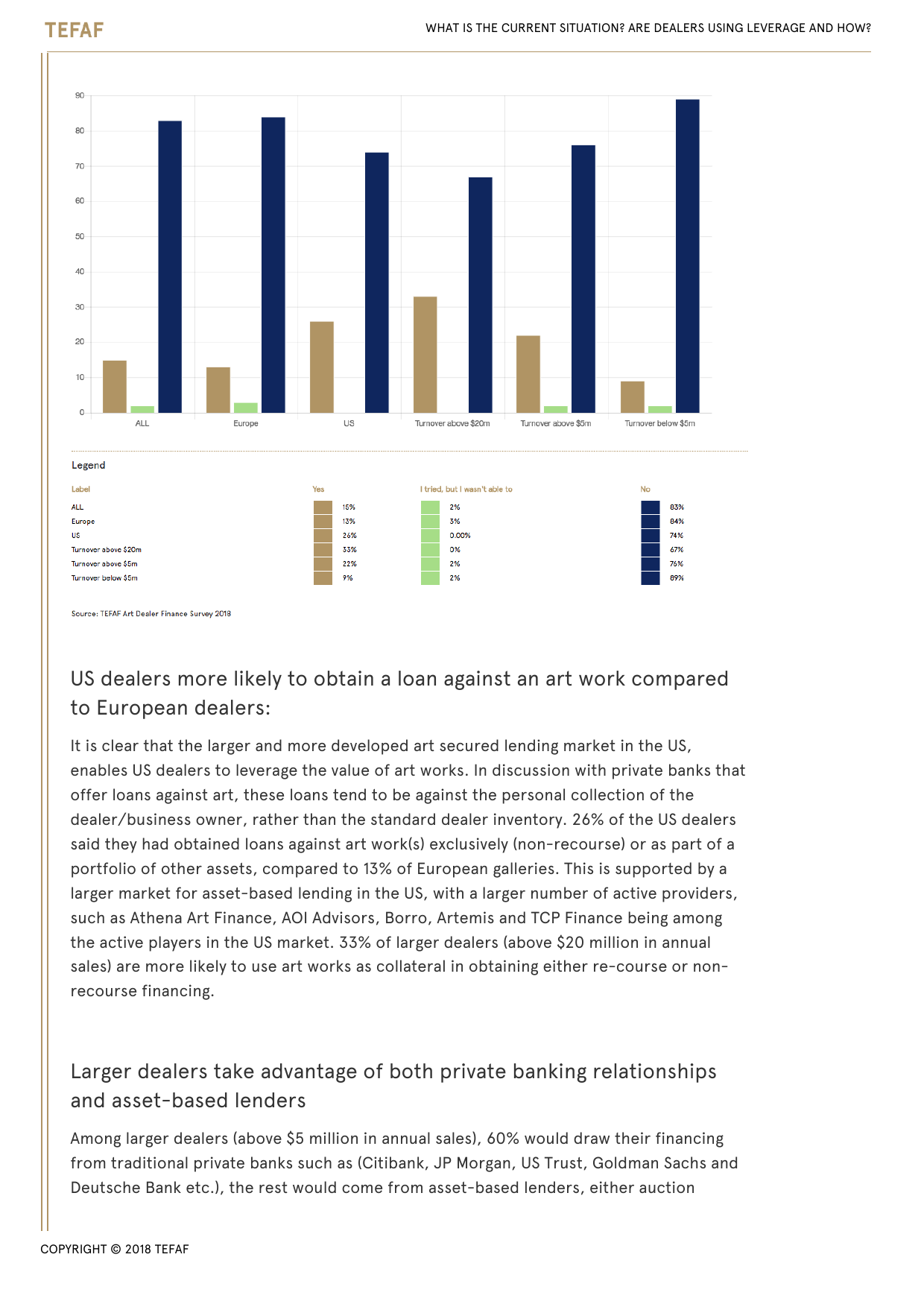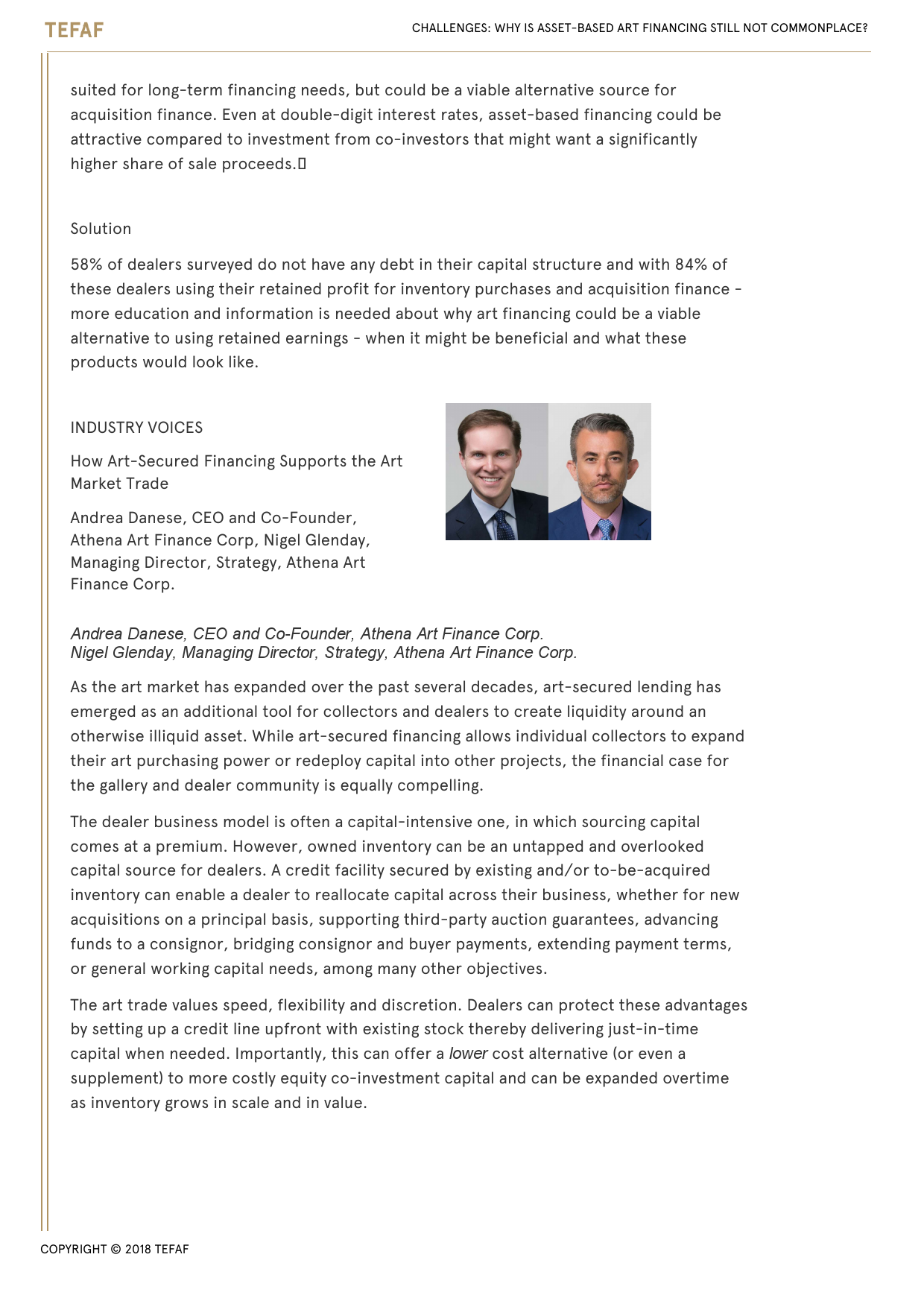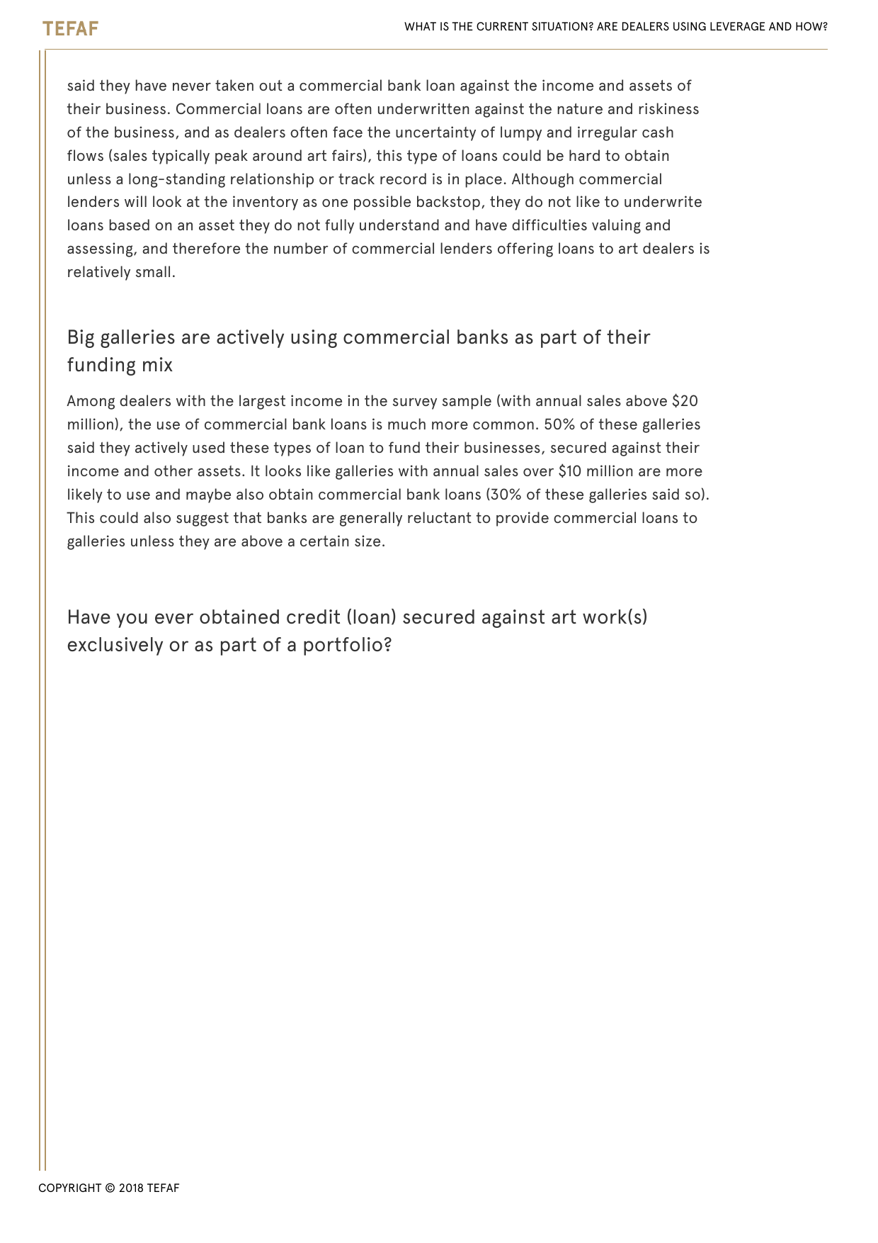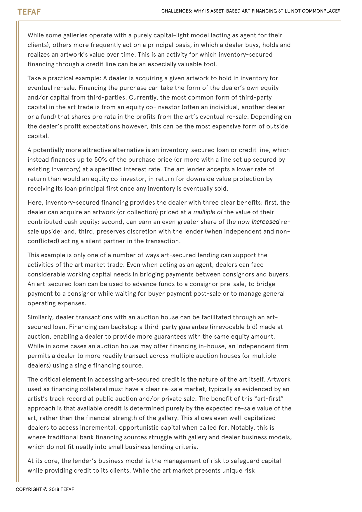根据资料反馈,67%的艺术经纪人的资产负债率为0至10%,低杠杆是业内普遍的融资现状,与此同时也存在着存货积压和付款周期延长的现象。