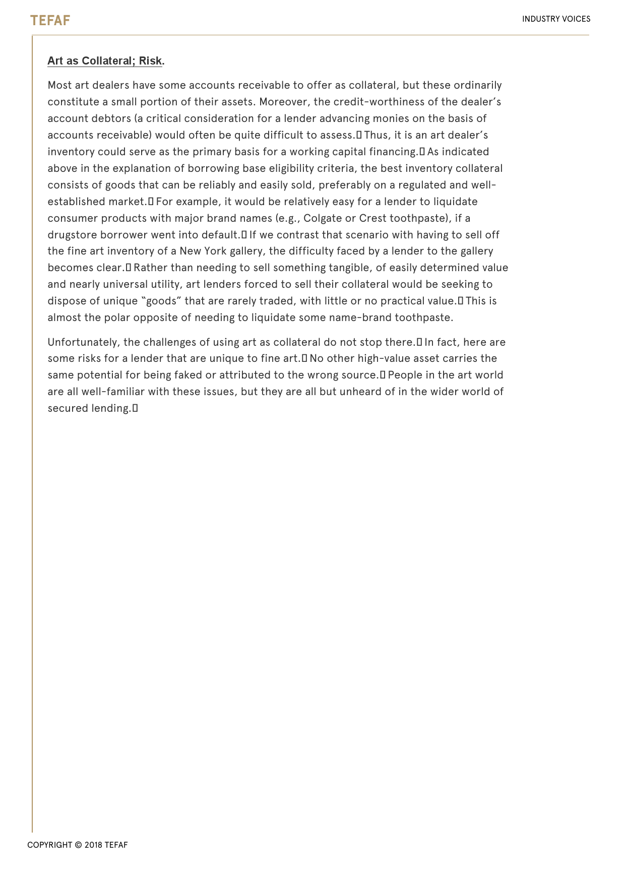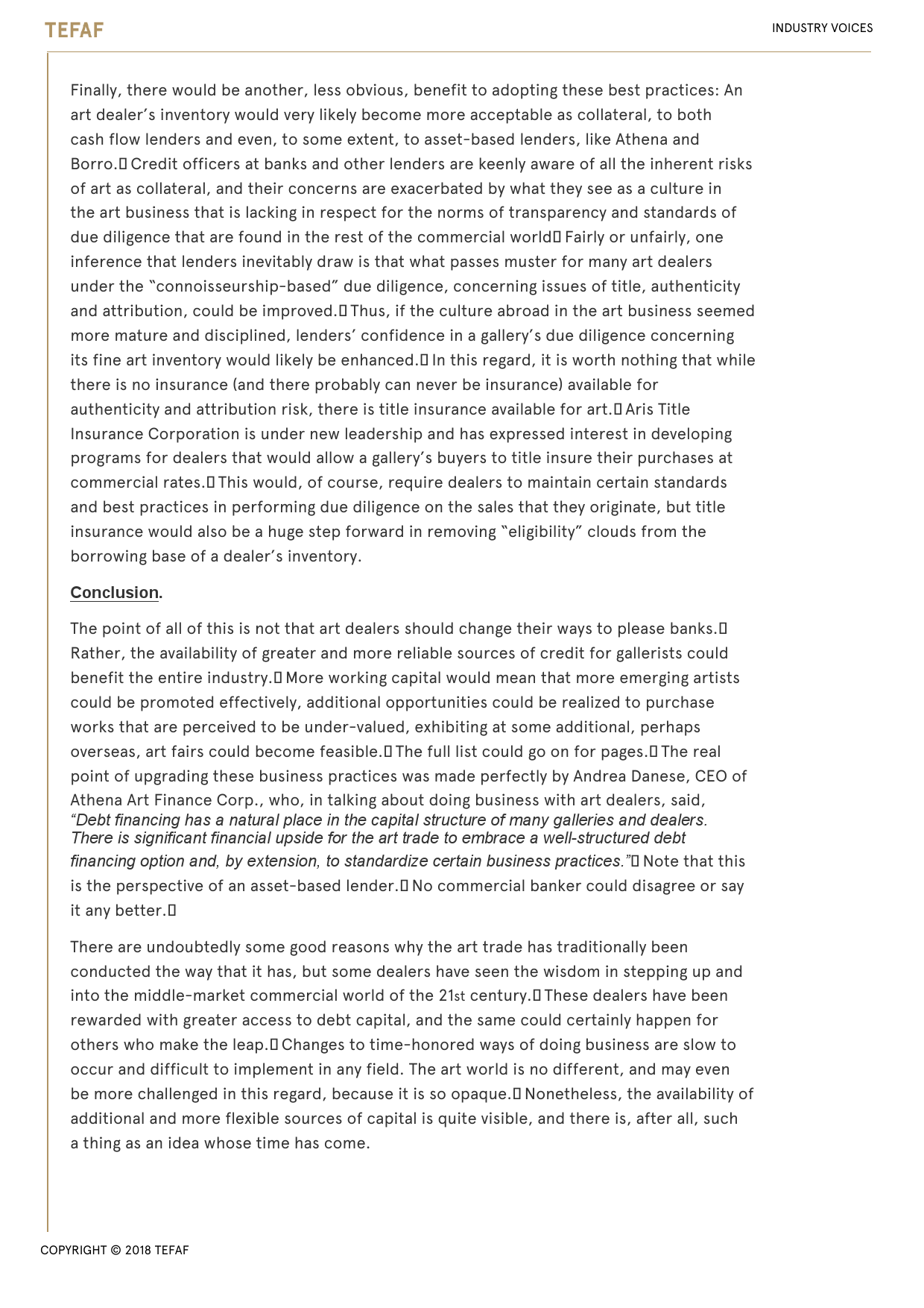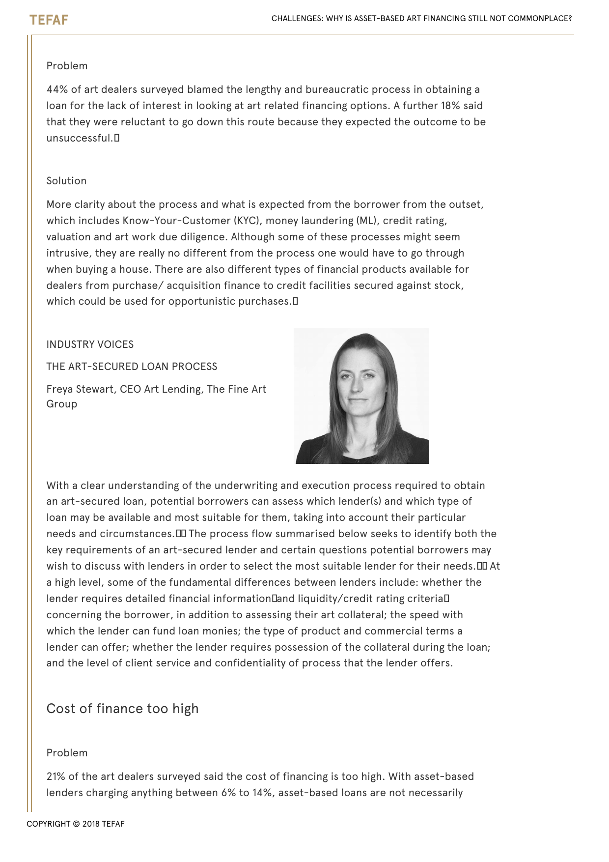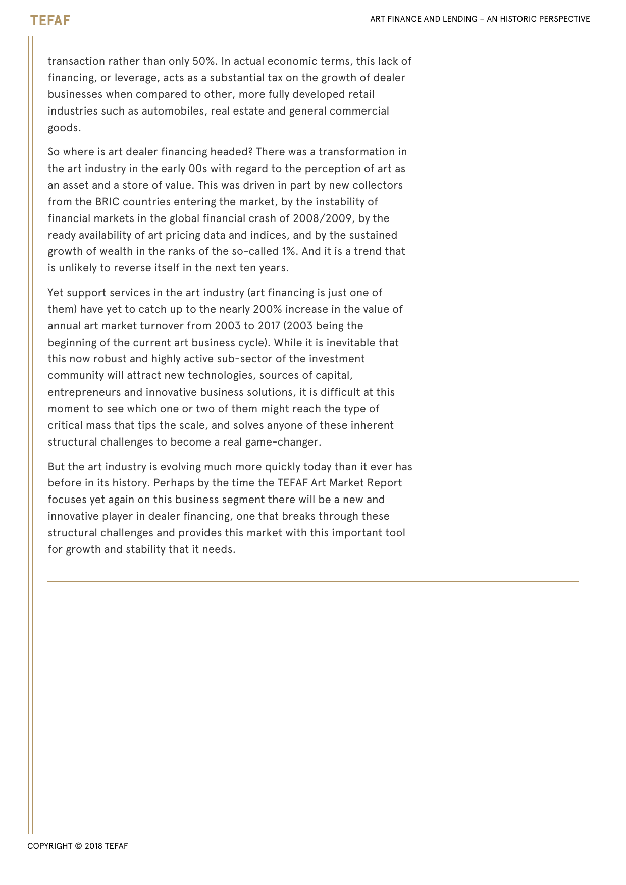 根据资料反馈,67%的艺术经纪人的资产负债率为0至10%,低杠杆是业内普遍的融资现状,与此同时也存在着存货积压和付款周期延长的现象。