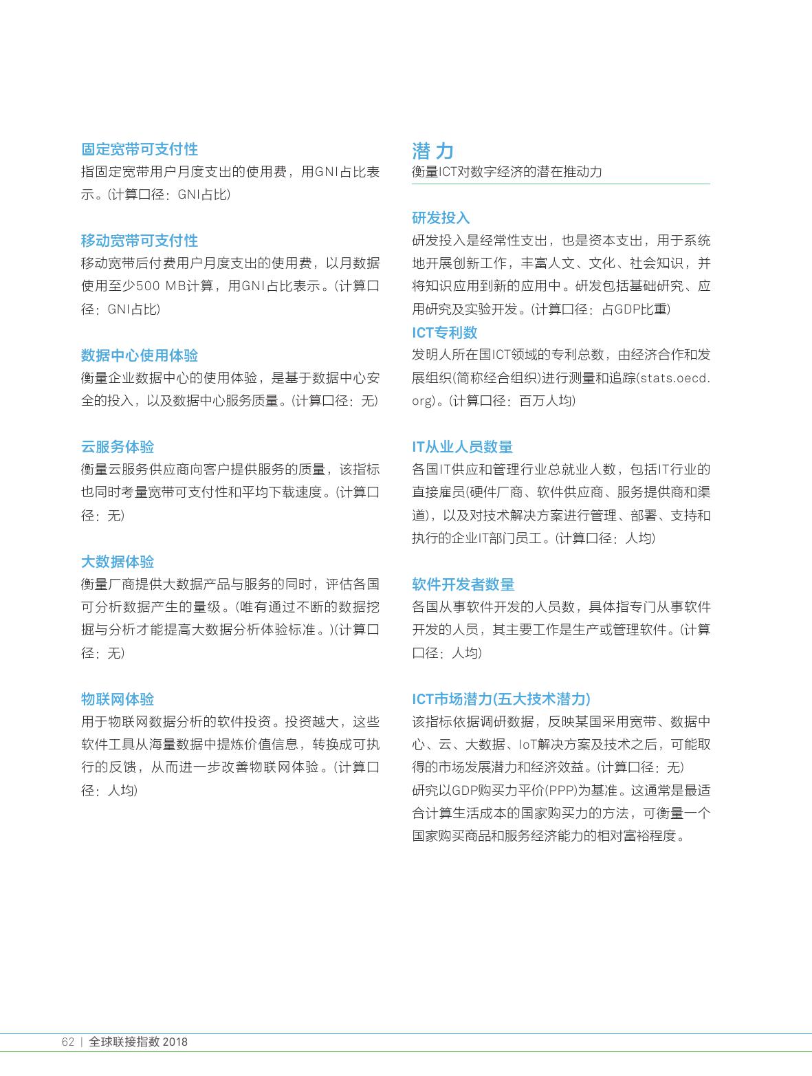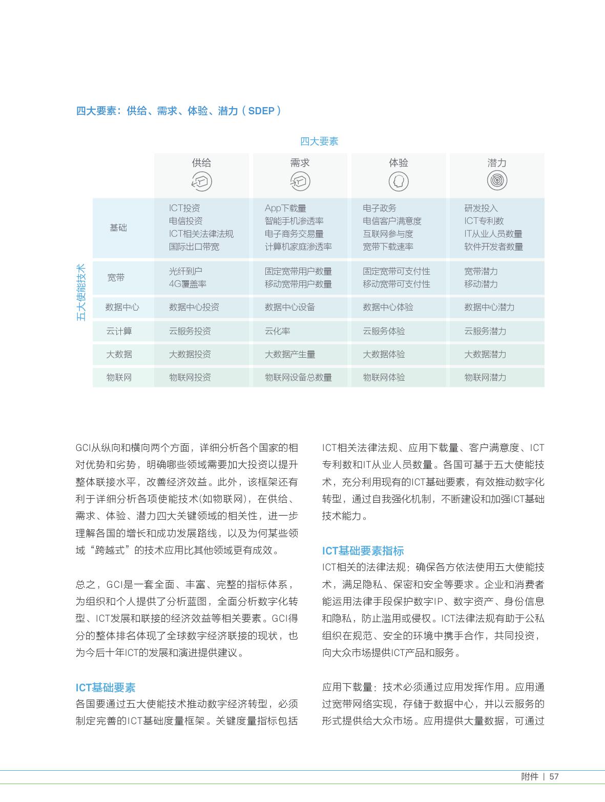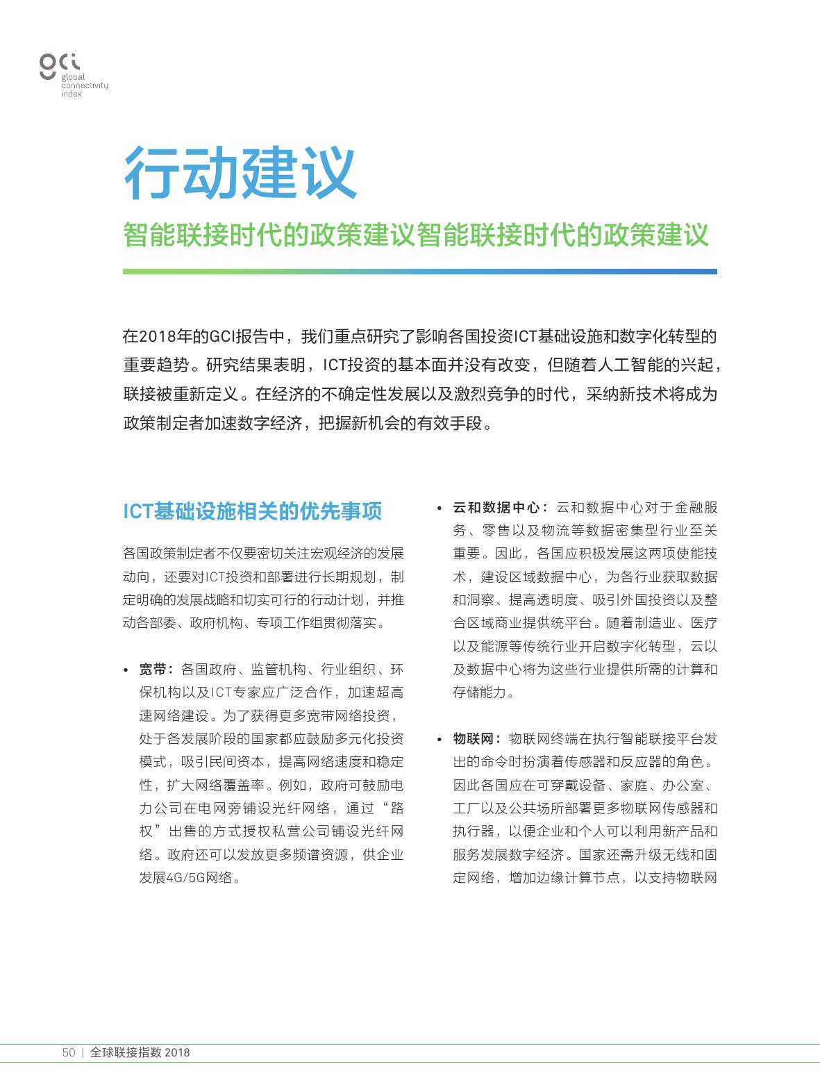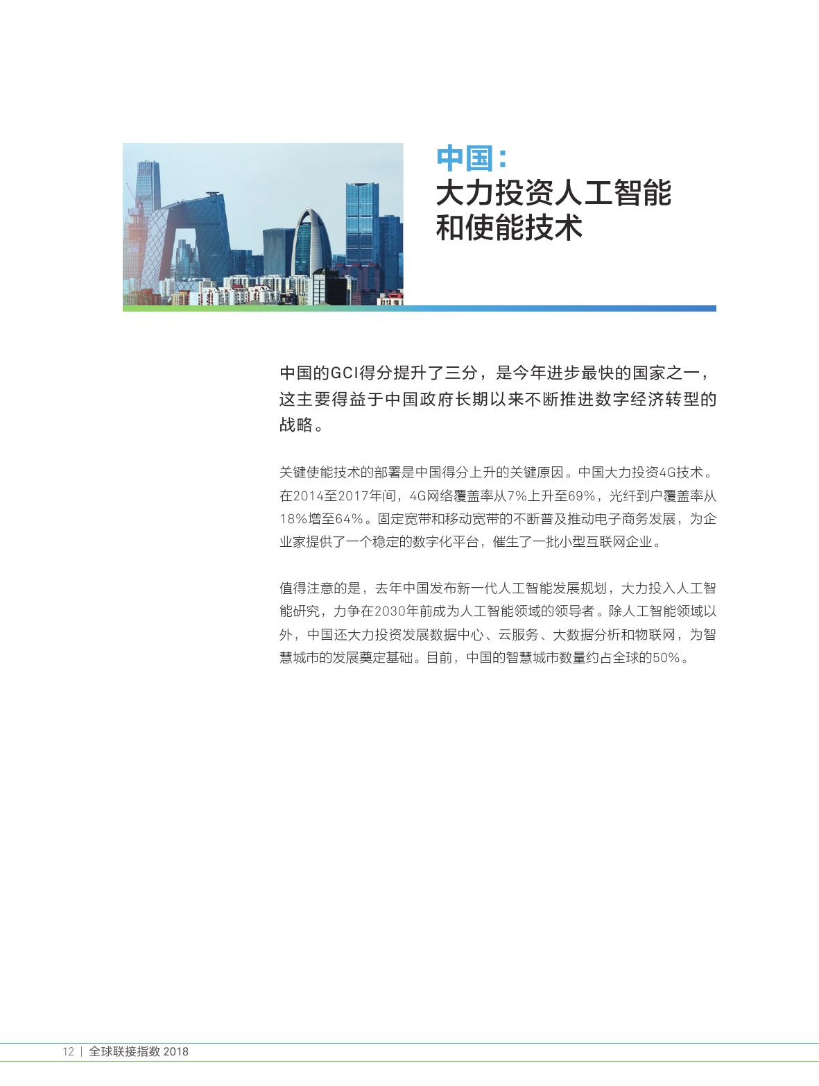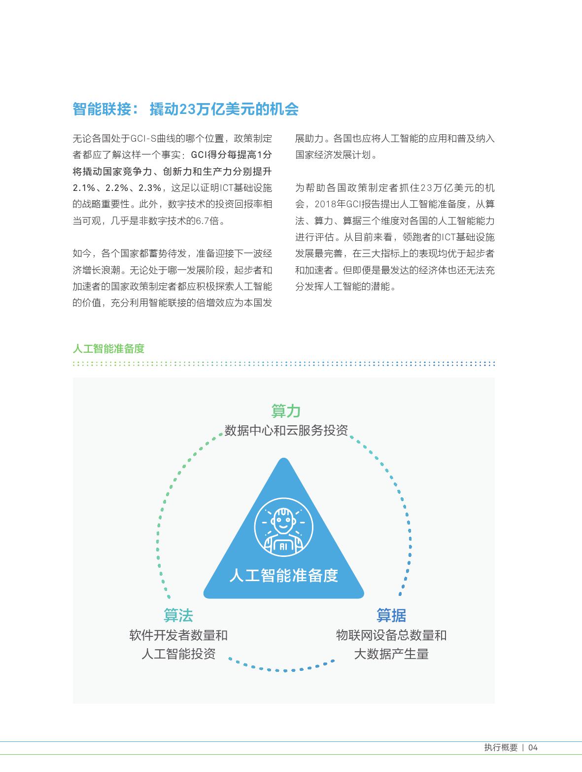GCI 2018 研究显示,各行各业将人工智能融入宽带、数据中心、云、大数据和物联网这五大关键使能技术后,基础联接将演变为智能联接,激发创新活力,带来新一轮经济增长。消费互联网仍是当前数字经济发展的驱动因素,但随着在各行业的应用逐渐深入,智能联接将催生新的商业模式、产品、流程和服务,为GCI-S曲线上的各个国家注入新的活力,开启经济增长新周期。
