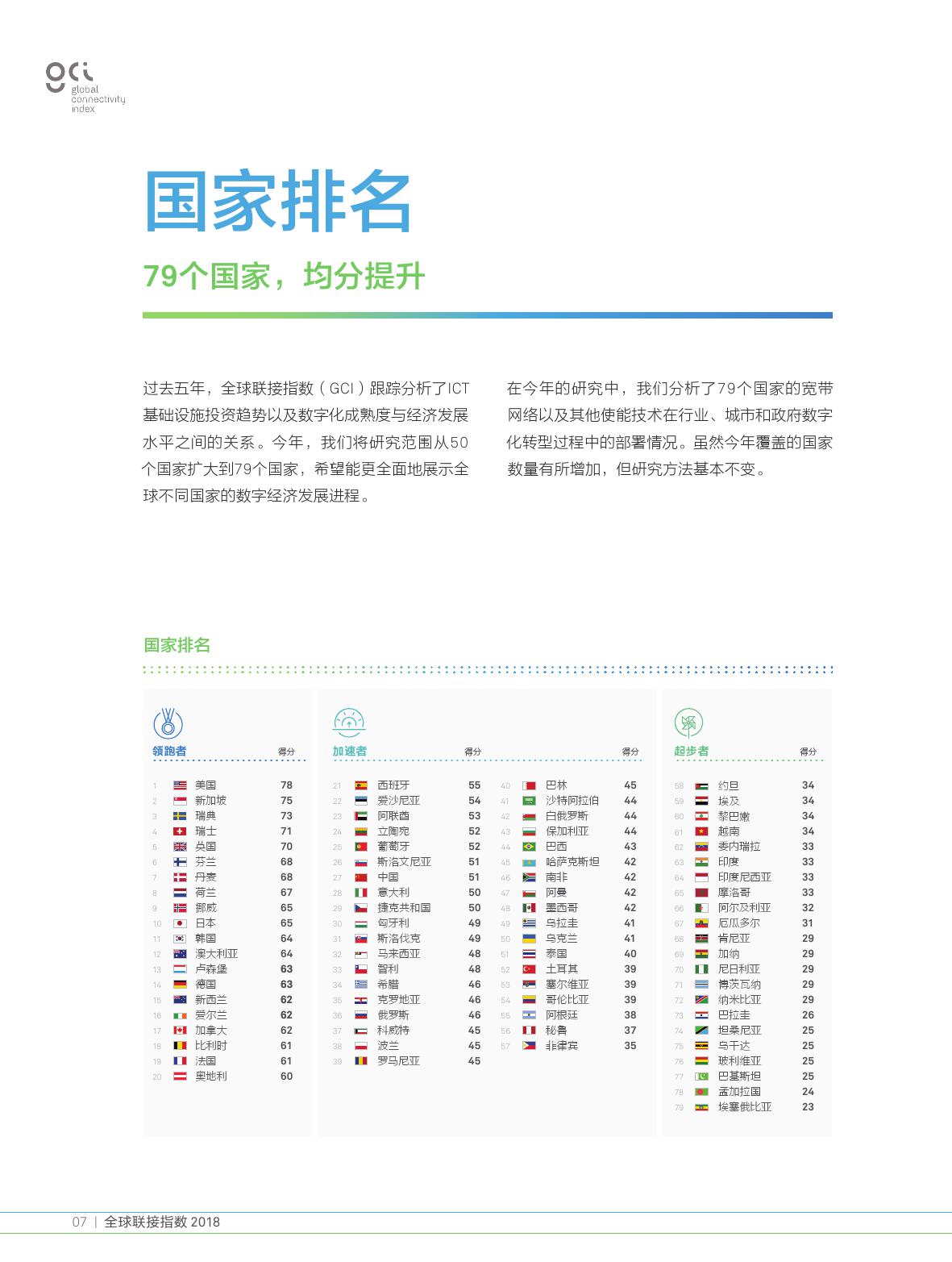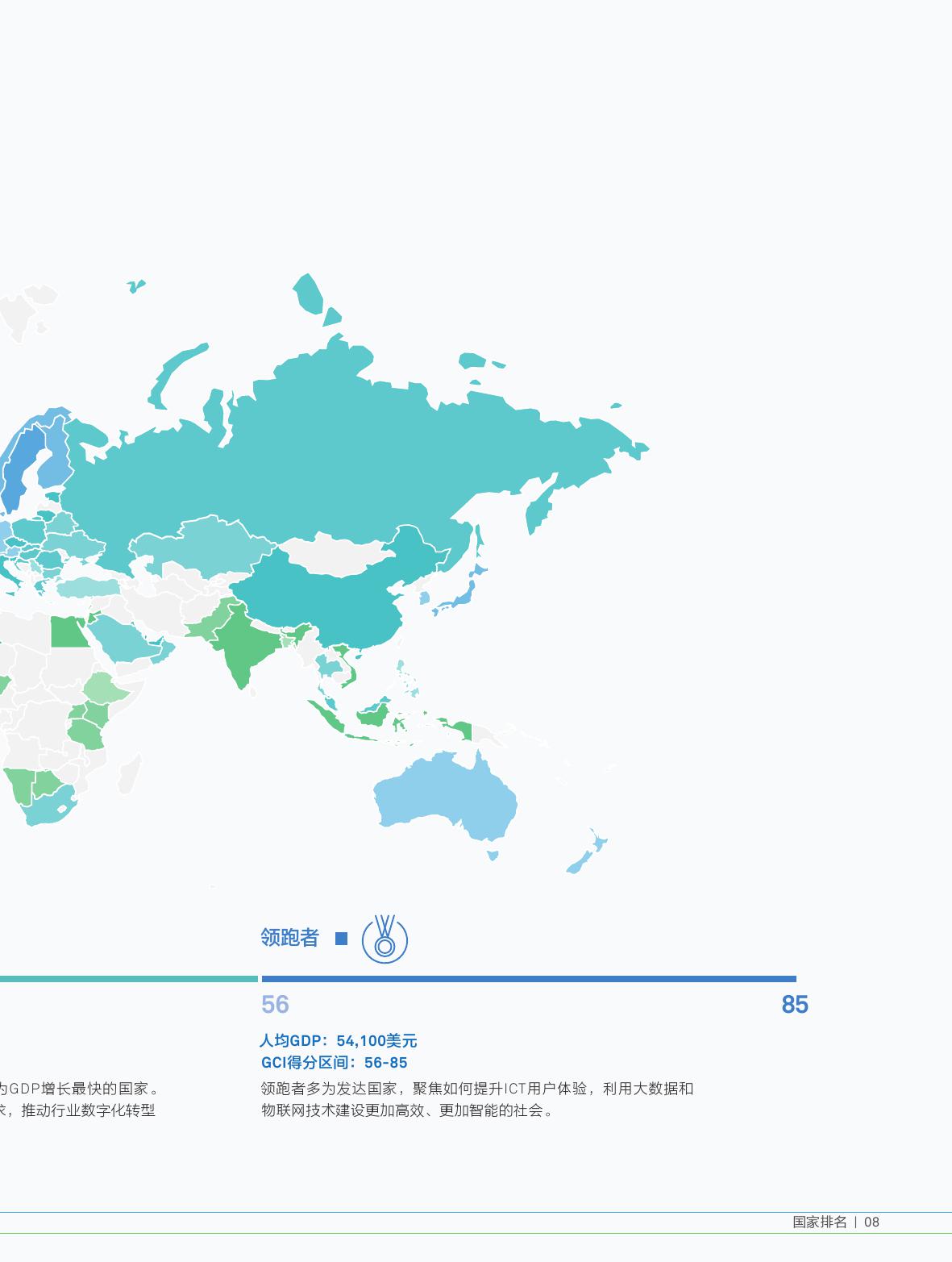 今年的GCI在2015年的基础上再次扩大研究范围,评估国家从50个增至79个。根据各国的GCI得分和经济发展水平,将这些国家分为三类:20个领跑者国家、37个加速者国家和22个起步者国家。