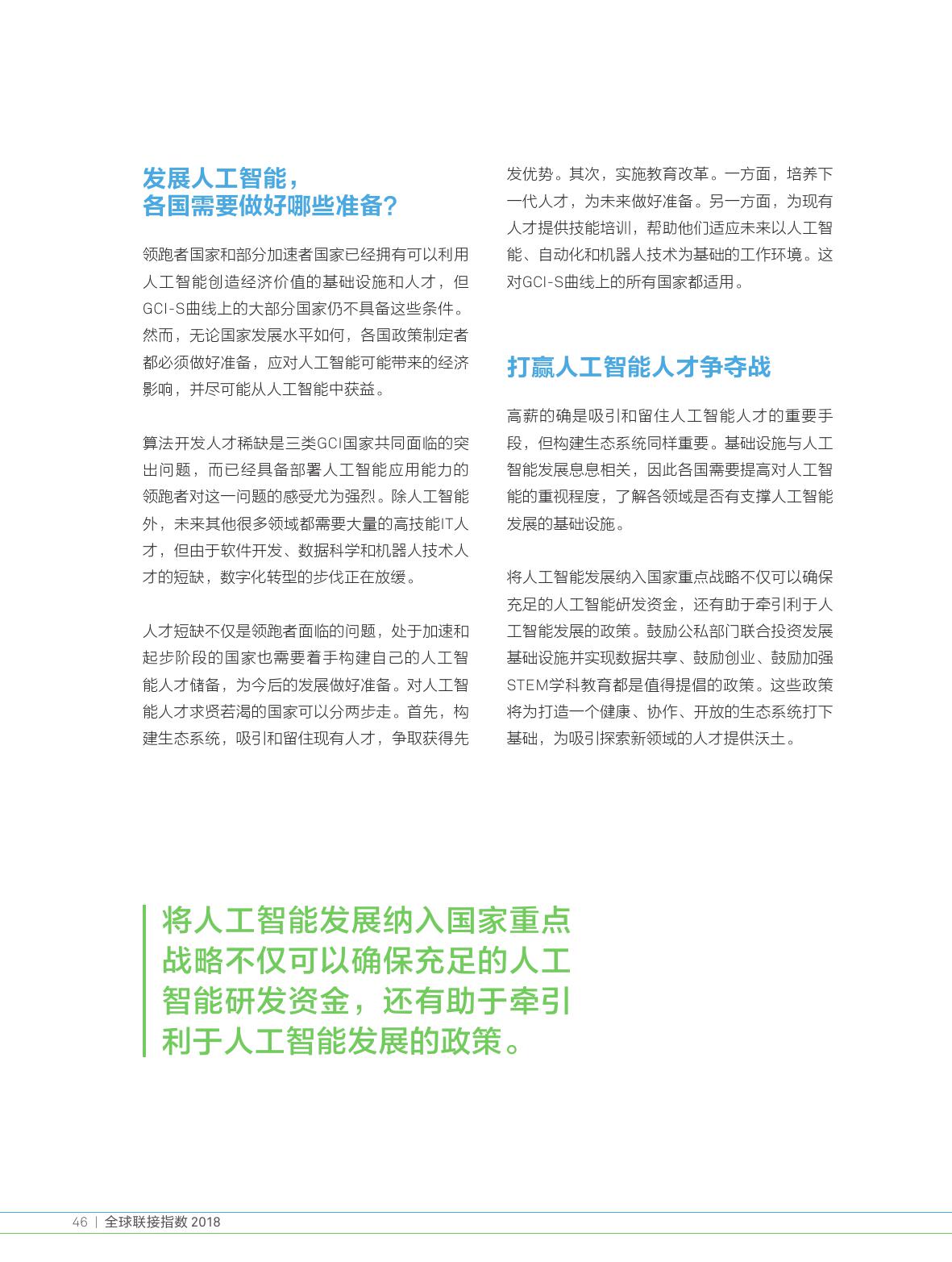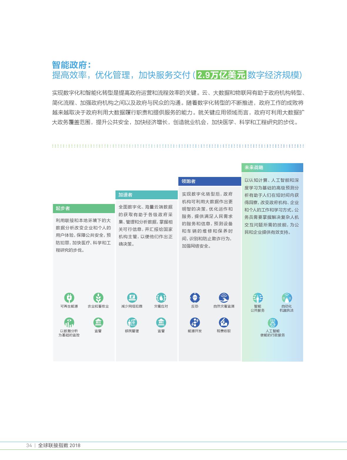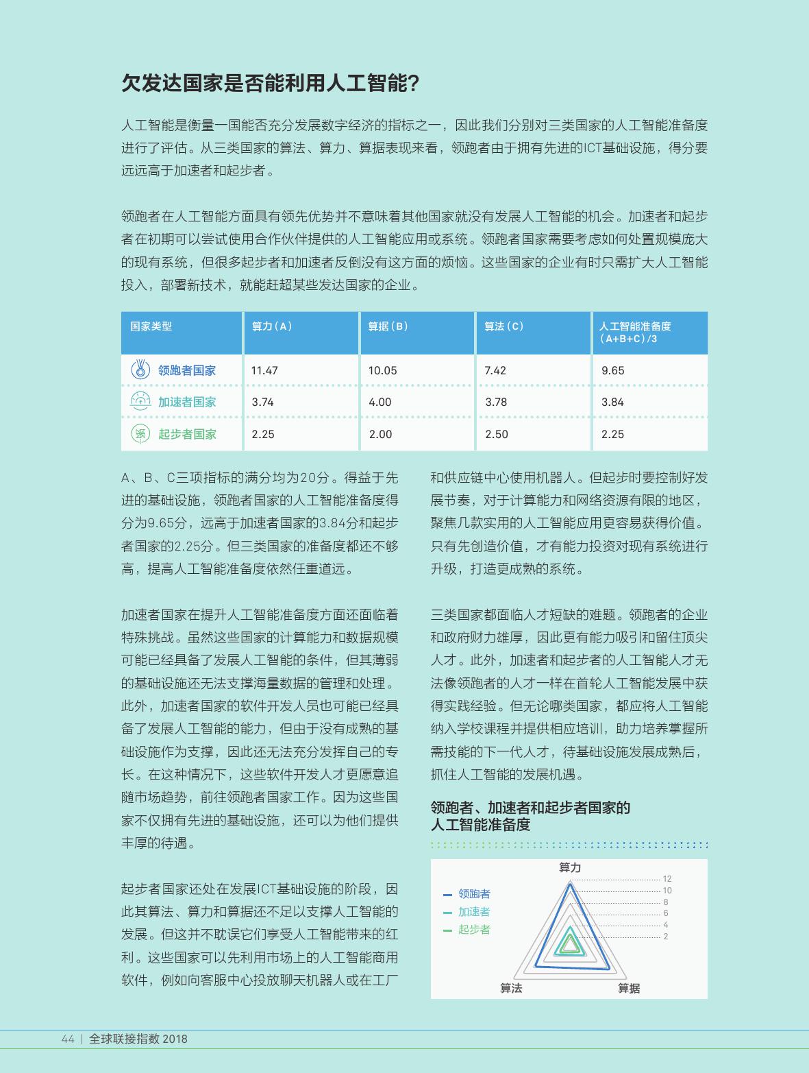 而随着人工智能成为通用的使能技术,将为三类国家带来新的经济增长潜力。无论是面临增长瓶颈的领跑者国家还是资源匮乏的起步者国家,如果能够利用人工智能重新定义联接,将注意力转向智能联接,将有可能实现新的增长。
