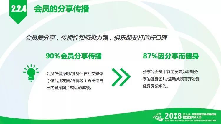 会员健身体验的传播:调研发现,会员是一群开朗外向、爱分享的群体,90%的会员会在社交媒体上秀自己的健身图片和运动成绩,他们的分享具有很强的传播性和感染力,有87%的人因朋友的分享而开始健身运动的,所以这实际上为俱乐部打造好口碑提供了一种重要的传播途径,俱乐部要获得更多的客源,会员就是很好的广告。