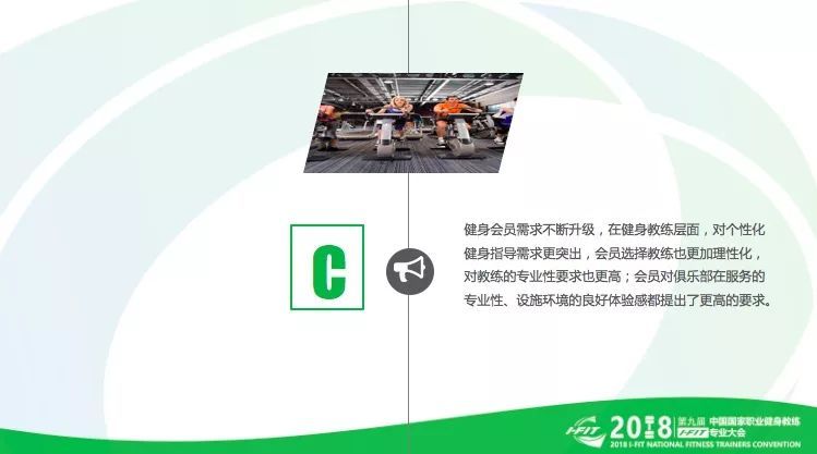 第三:健身会员需求不断升级,在健身教练层面,对个性化健身指导需求更突出,会员选择教练也更加理性化,对教练的专业性要求也更高;会员对俱乐部在服务的专业性、设施环境的良好体验感都提出了更高的要求。