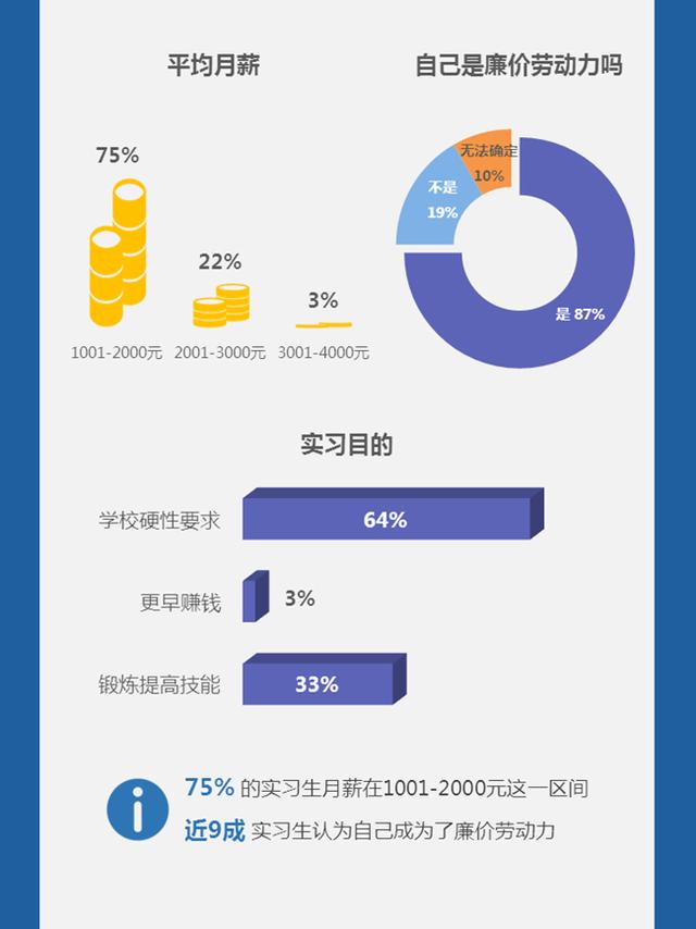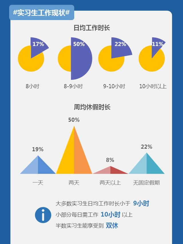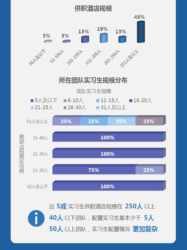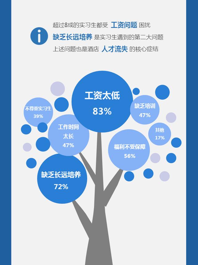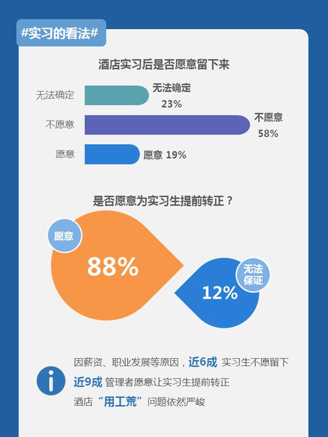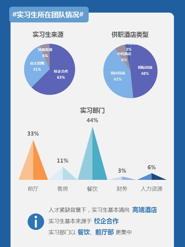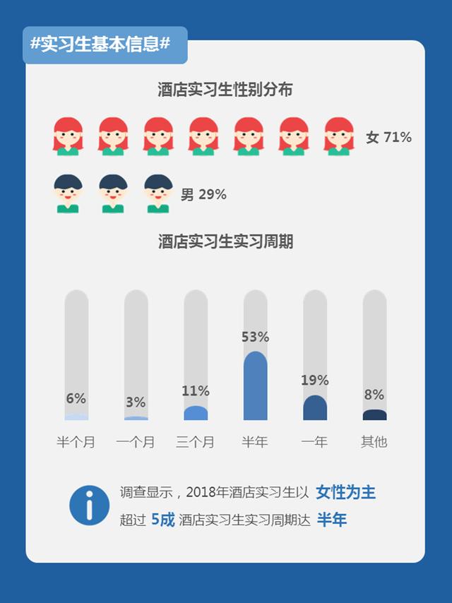 迈点研究院:2018年酒店实习生现状调查 调查显示,超过5成实习生实习周期达半年,他们大多日均工作时长小于9小时,75%的实习生月薪在1001-2000元之间。 目前,国内酒店员工非常年轻,尤其是实习生,刚刚步入社会,他们更希望不断提高自己,并得到相应奖励。然而,酒店的人才流失率几乎是全行业最高的。 据调查显示,超过75%的实习生月薪在1001-2000元之间,而实习过后,近6成表示不愿意继续留在酒店工作。 更多阅读:迈点研究院:2018上半年长租公寓大数据分析报告大象山教育智库:2019中国幼师生存现状调查报告运输人:2019运输人从业现状调查2015年四川进城务工人员市民化现状调查报告——基本情况及生活现状篇迈点研究院:2018年度上海中高端酒店市场大数据分析报告迈点研究院:2018年全国高端酒店开业统计报告迈点研究院:2020-2021中国旅游景区品牌发展报告迈点研究院:2020年10月5A级景区品牌100强榜单2011年中国珠宝行业现状调查和前景分析迈点研究院:2023年4月中国酒店业发展报告世界各城市60平米房屋成本途虎养车:2018中国汽车用户线上养护行为报告Nature:携带相同基因组的癌细胞或许会表现出不同的行为!自如研究院:2021年10城毕业生租房报告在中国,只抓一个权健是不够的