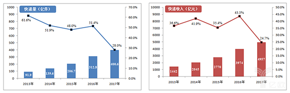 2017年,快递与包裹服务品牌集中度指数CR8为78.7。