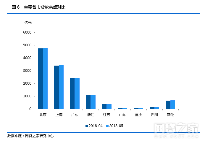 从各省市分布看,北京、上海、广东三省市贷款余额分别为4786.49亿元、3435.23亿元、2436.38亿元,三地占全国P2P网贷行业贷款余额的比例达到了81.27%。其中北京、上海贷款余额环均比上升了1%左右,广东环比上月小幅上升0.67%。