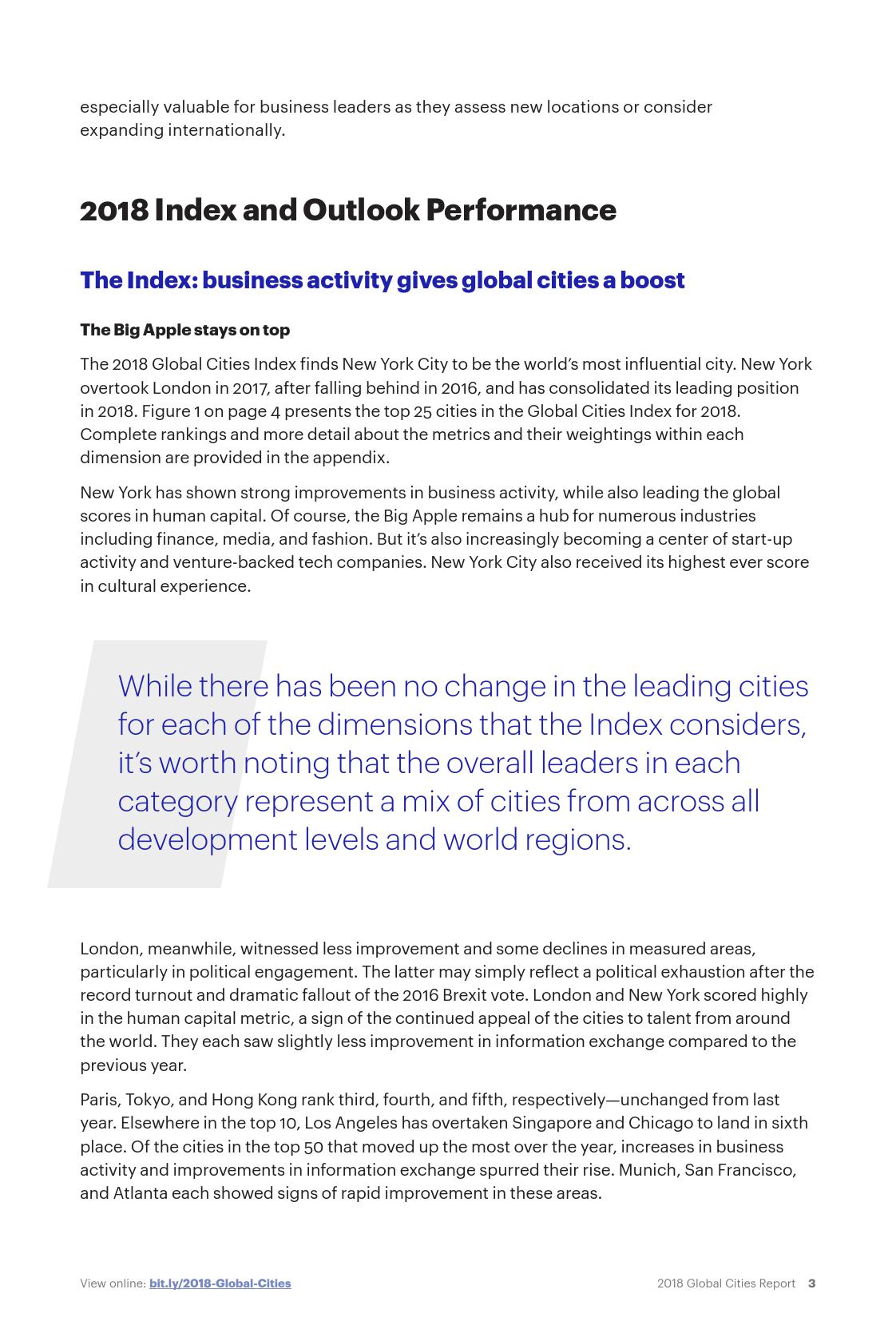2018年最具影响力城市排名前三的依次为纽约、伦敦和巴黎。莫斯科排在第14位。