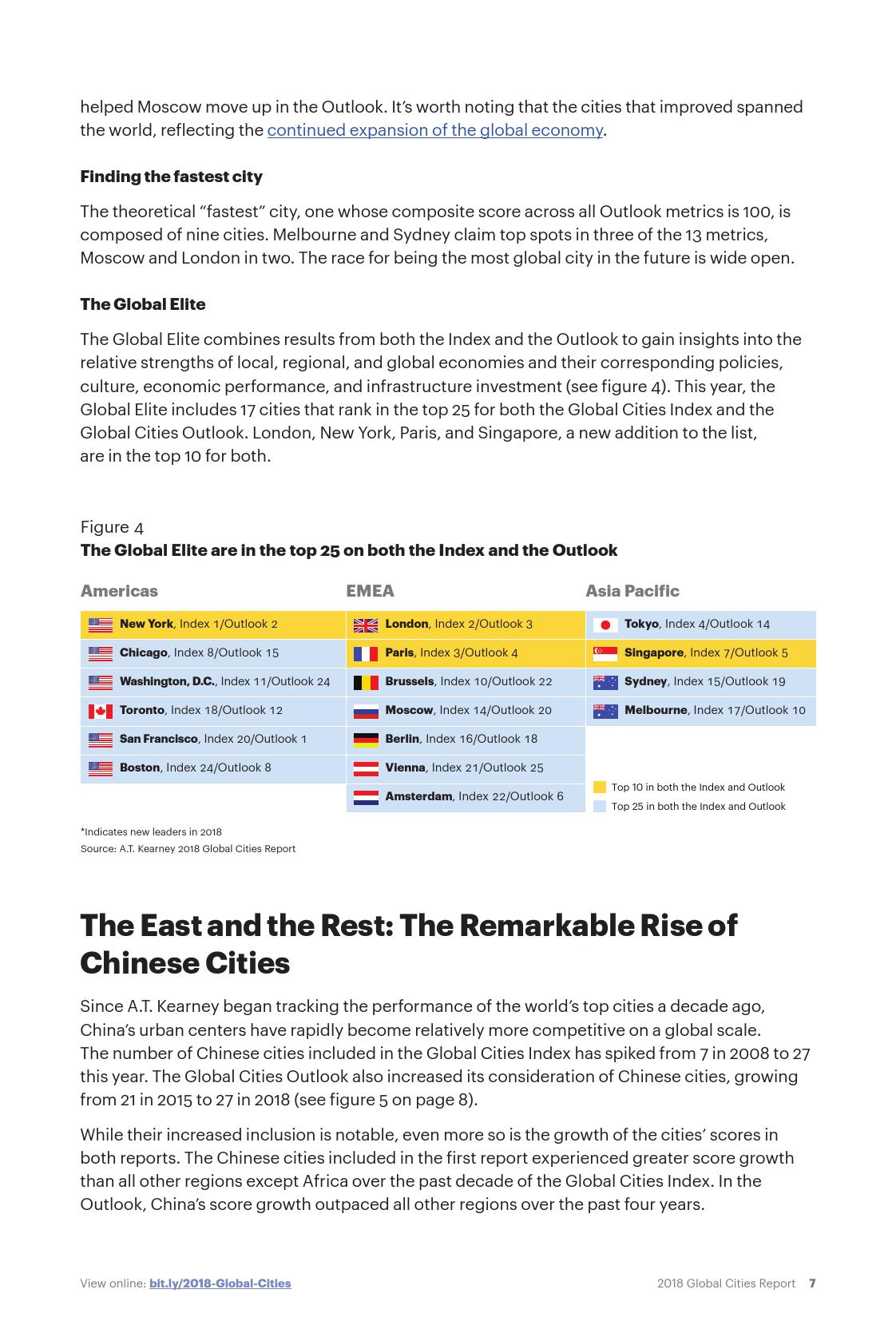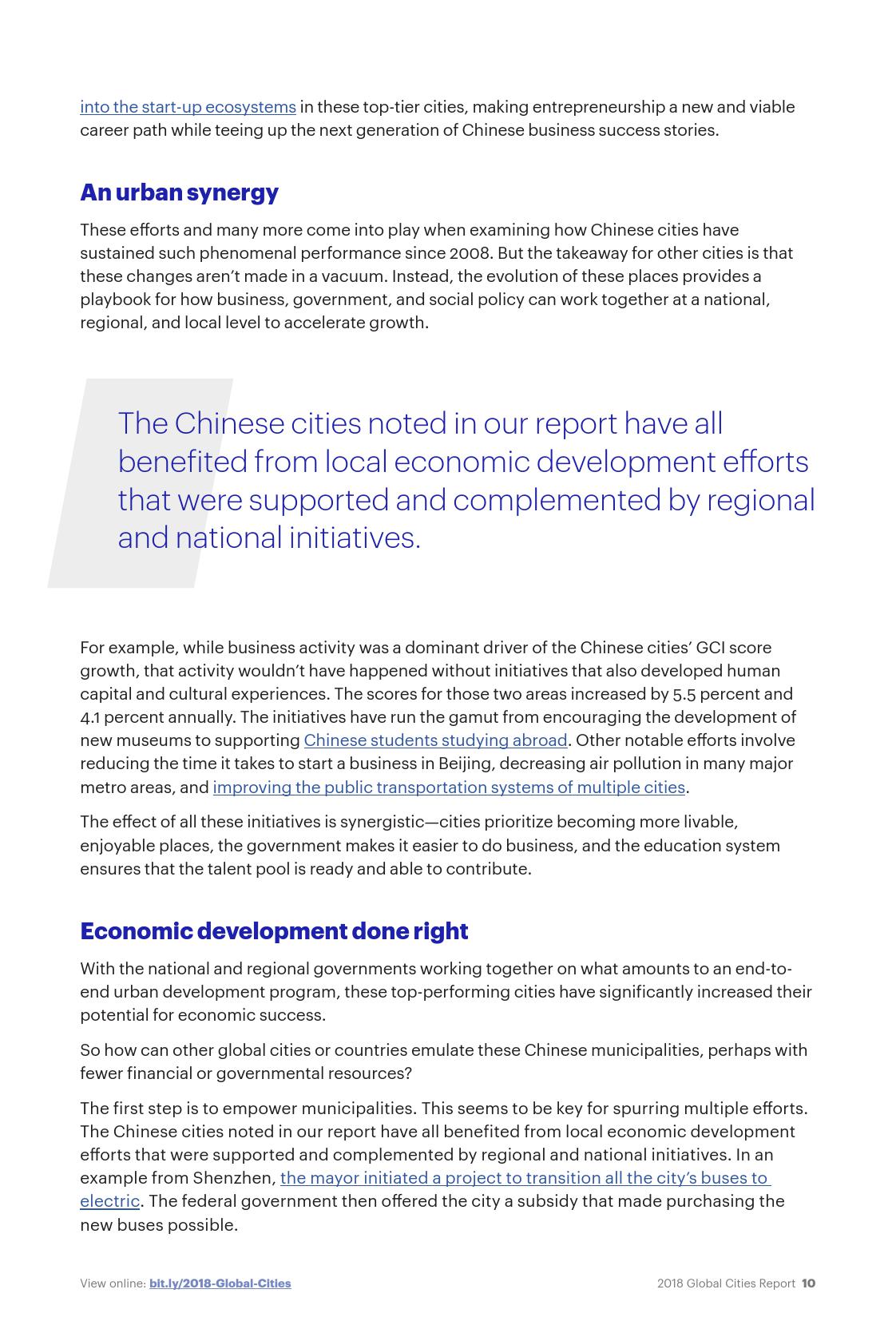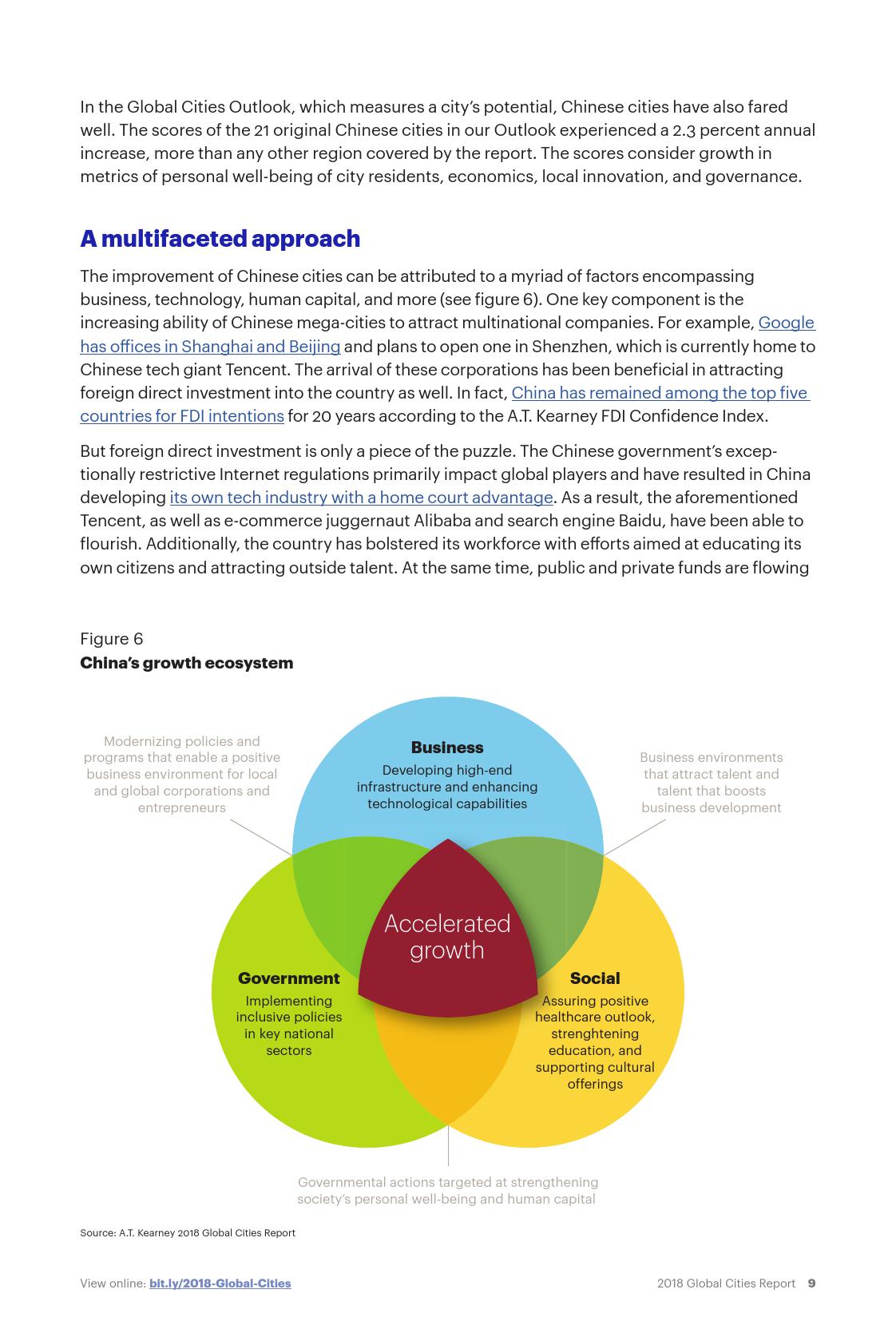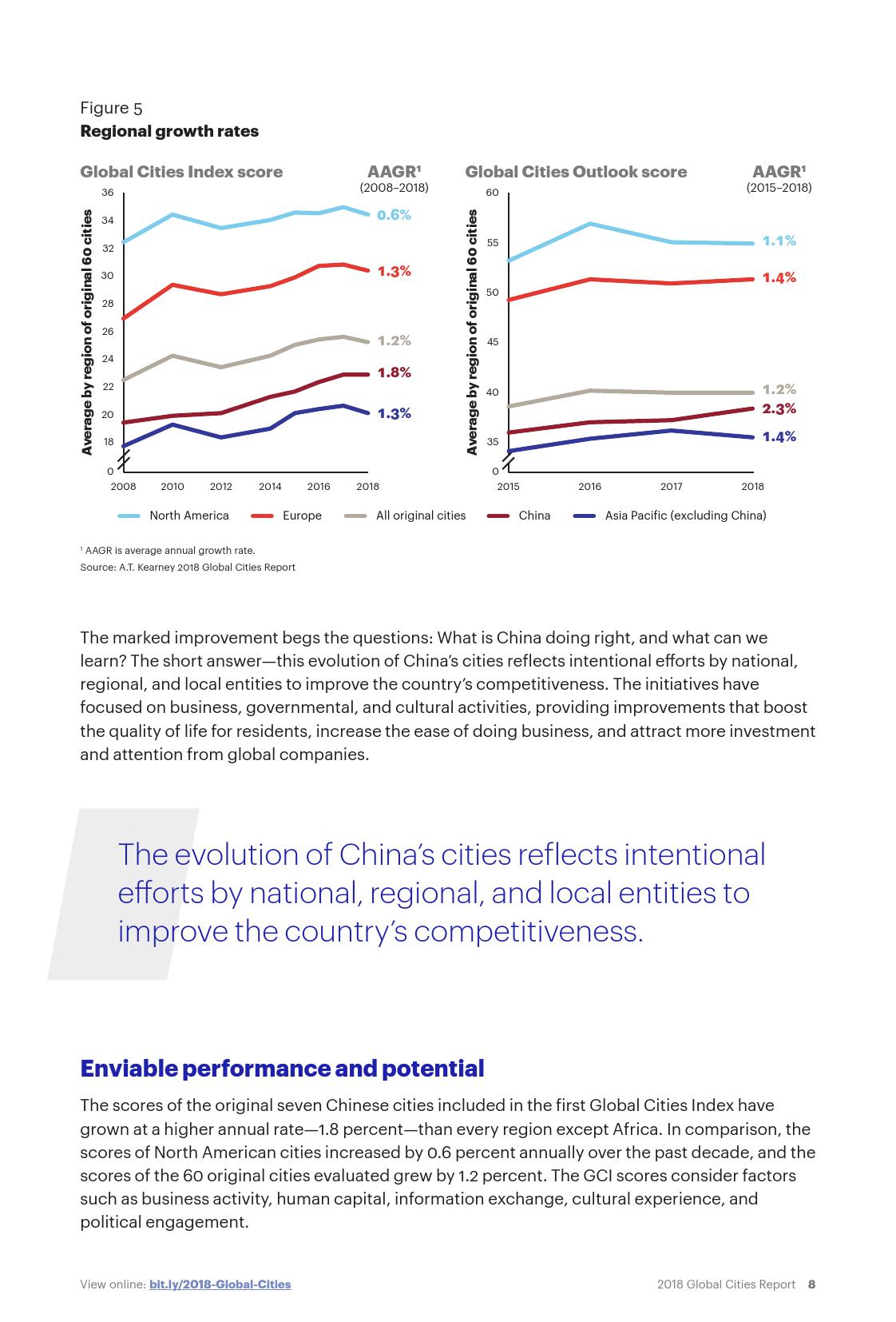 报告作者指出,中国城市入榜数量呈急速增长态势。近十年来,入选该榜单的中国城市从2008年的7个增加到2018年的27个。中国的城市发展潜力在过去4年间也超过了其他国家。分析师表示,中国城市入榜数量的增加与国家、地区和地方机构在提升国家竞争力方面所作的努力密不可分。