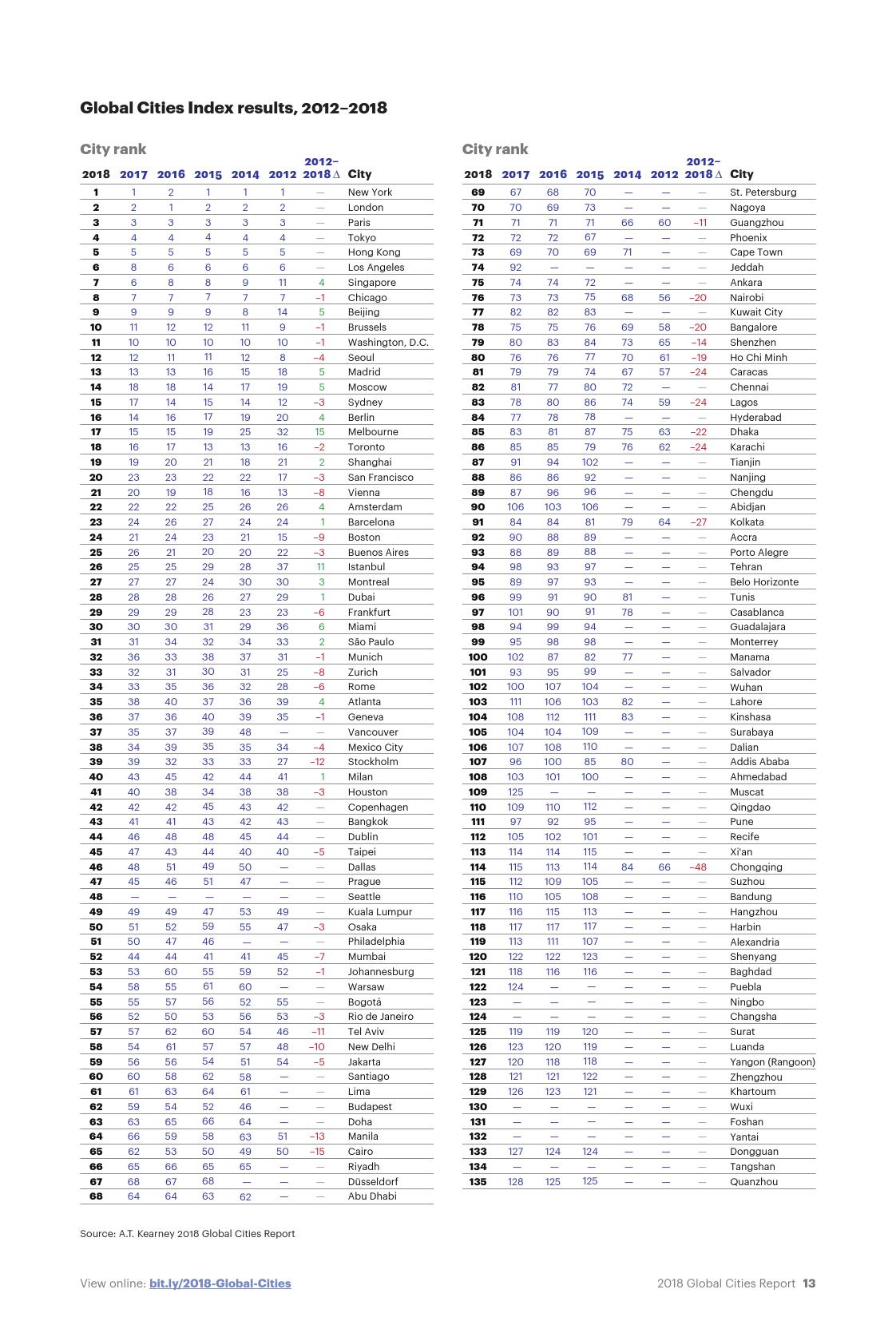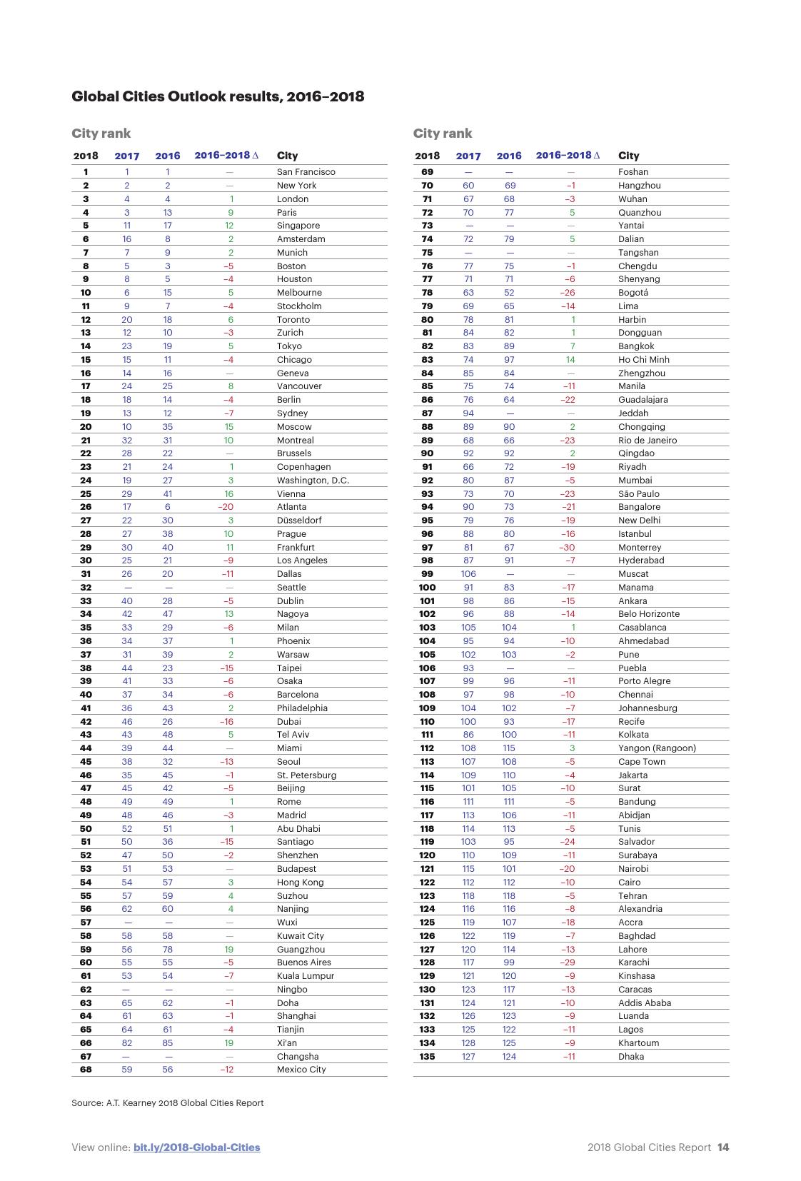 今年新进榜单的7个城市中有6个是中国城市,分别为宁波(排名第123)、长沙(124)、无锡(130)、佛山(131)、烟台(132)、唐山(134)。另一个新进城市为美国西雅图(排名第48)。