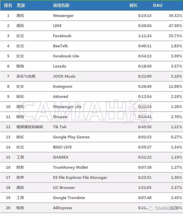 TOP应用榜单中的中国应用占23%,低于菲律宾11个百分点。其中超过一半排在榜单TOP50。值得注意点是榜单中的个性化类应用都为中国玩家旗下产品,其中包括了猎豹移动旗下的《CM Launcher 3D》和《Cheetah Keyboard》及 LBE科技旗下的《Parallel Space 》。