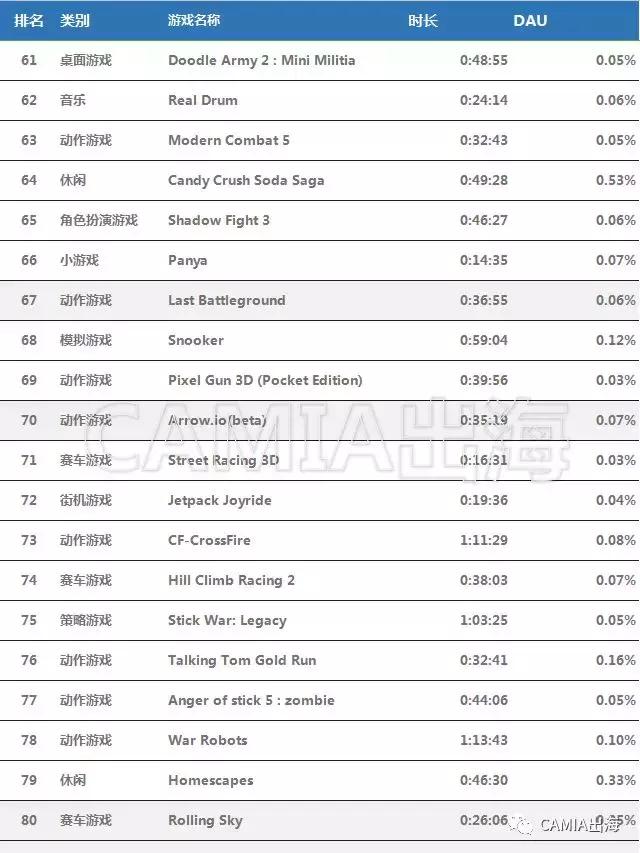 榜单前五十的中国游戏共有十一款,除了以上提到的两款之外还有猎豹移动的《Piano Tiles 2™钢琴块2》和腾讯吃鸡手游《荒野行动》国际版《PUBG MOBILE》,等等。