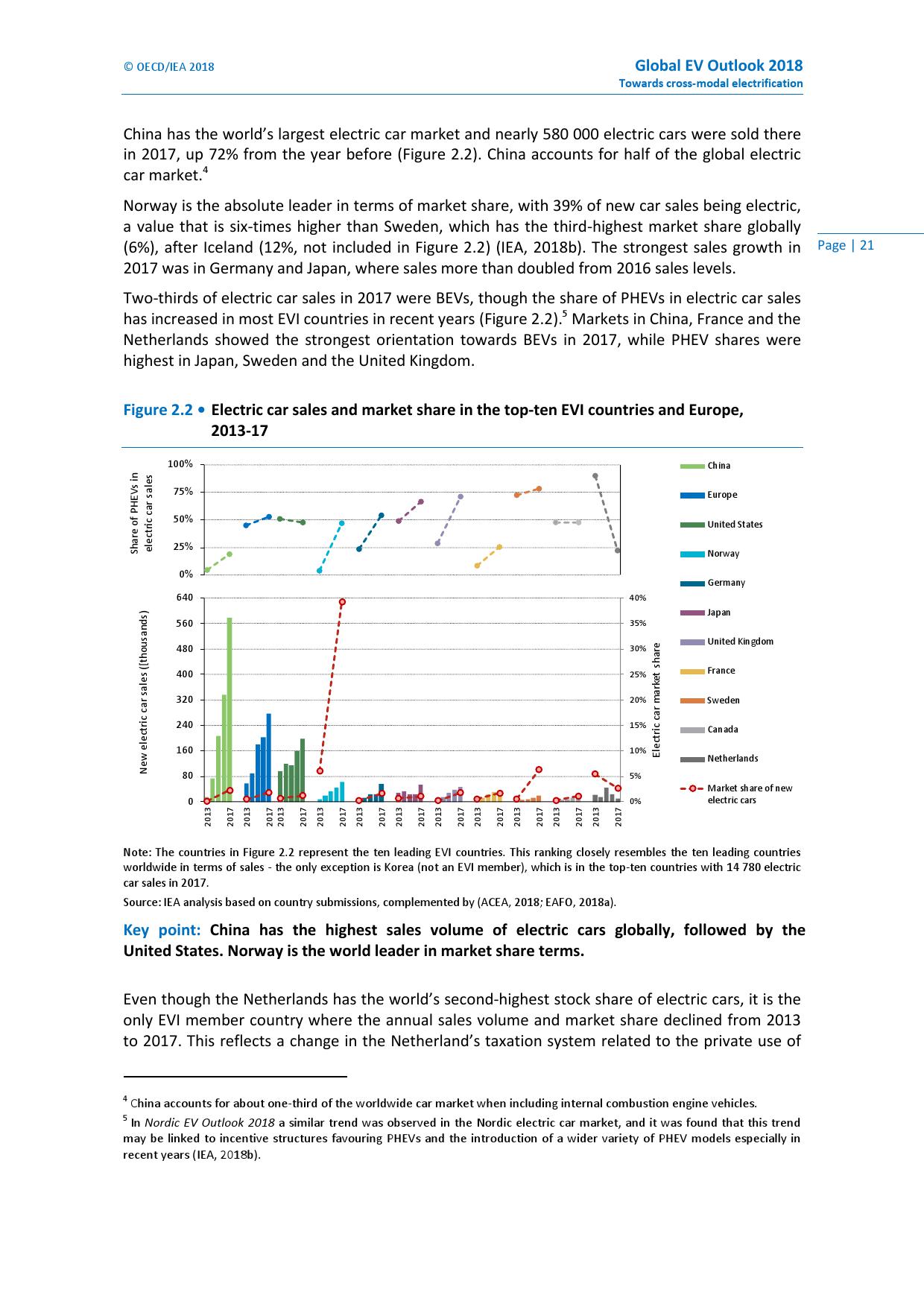 不过,挪威的电动车市场也有隐忧。由于该国税收系统在公司拥车政策上的变更和对插电混动车型税收补贴的取消,挪威成了 IEA 电动车发展倡议缔约国中唯一一个电动汽车销量和市场份额出现下滑的国家(2013-2017 年间)。