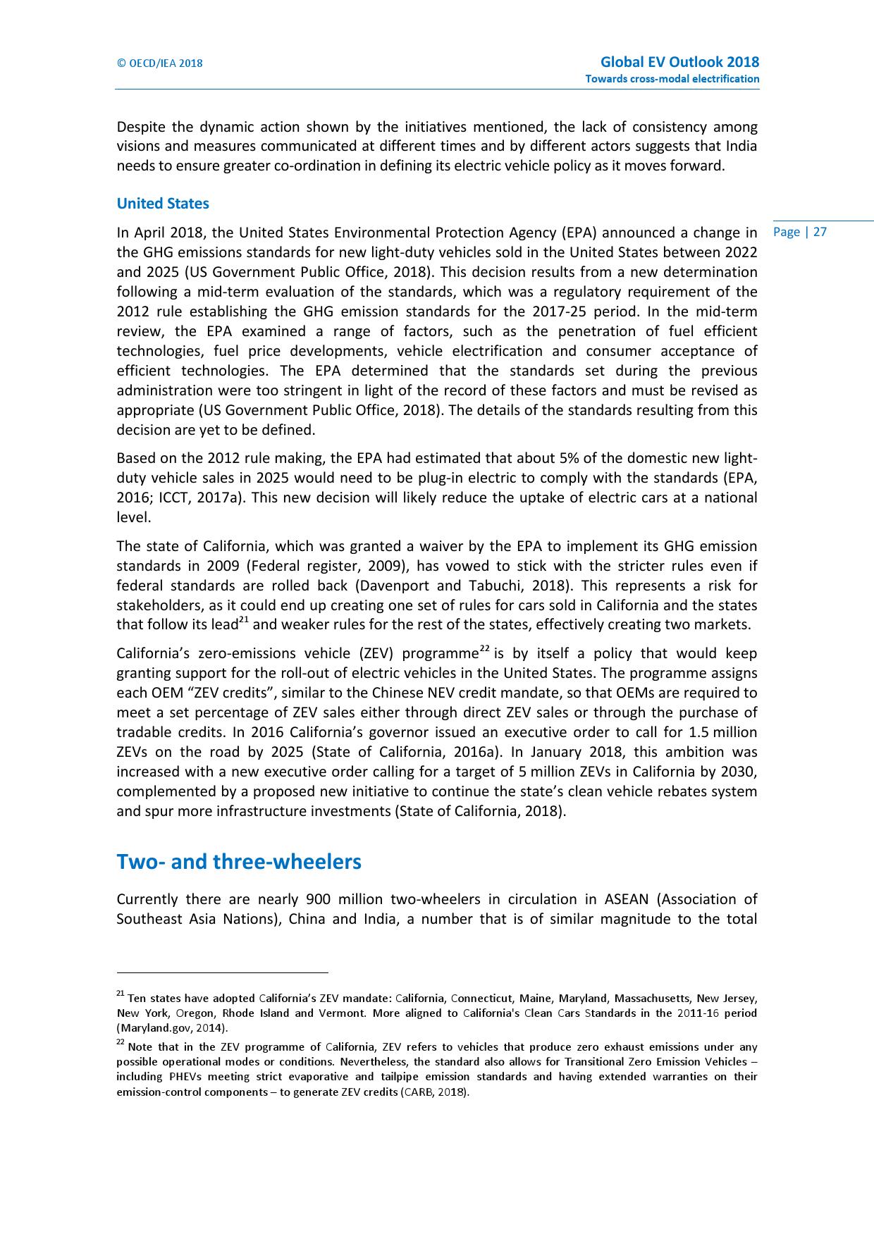至于美国,IEA 则认为电动汽车的普及会出现冰火两重天的情况 。在加州,电动汽车的市场渗透力已经相当强悍,有些州也在推行自己的零排放规划。不过,美国较低的燃油税和特朗普政府在车辆排放标准上“开历史倒车”的态度可能会影响电动汽车在美国市场的发展。