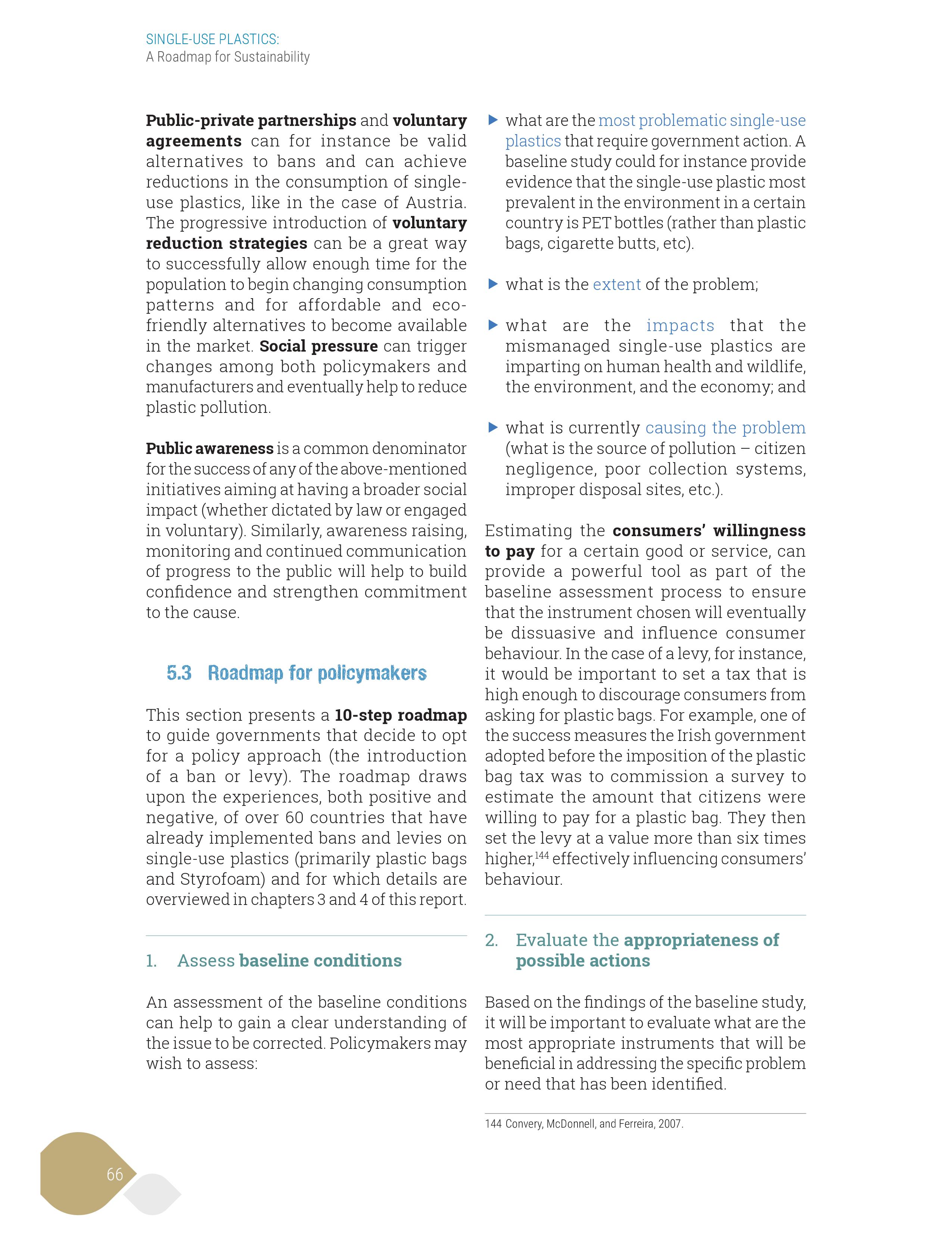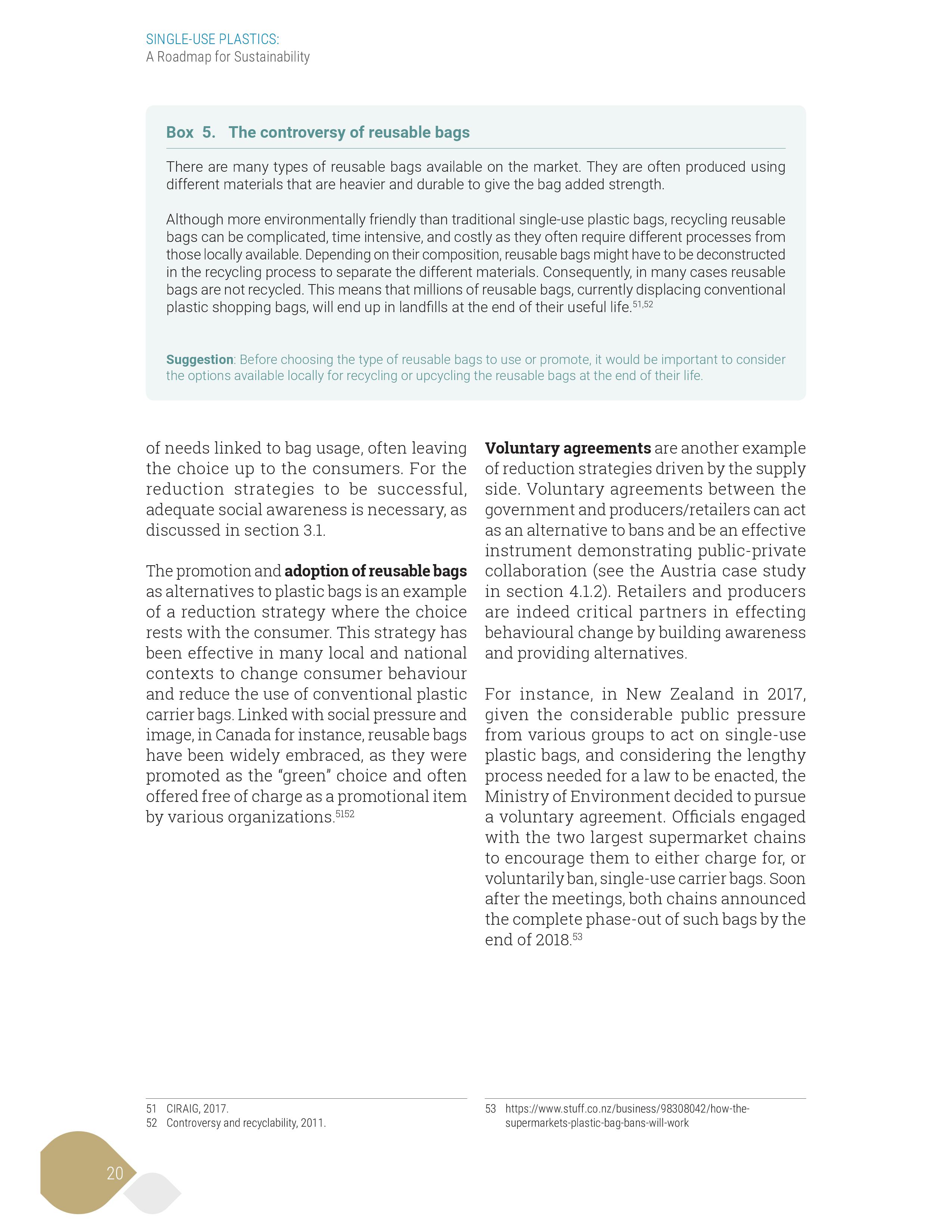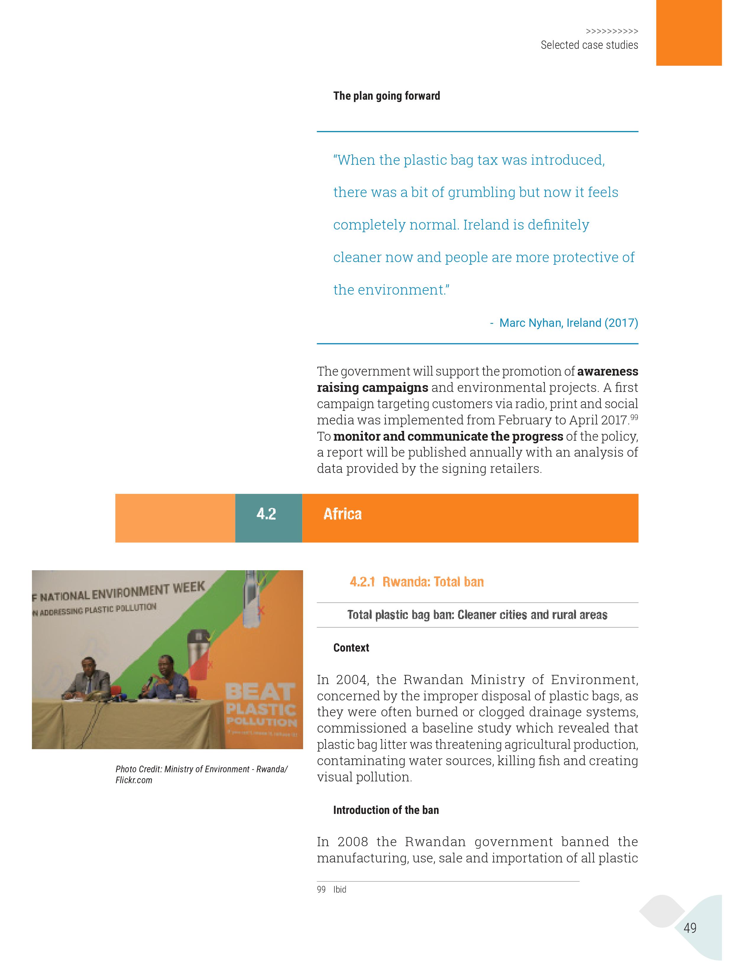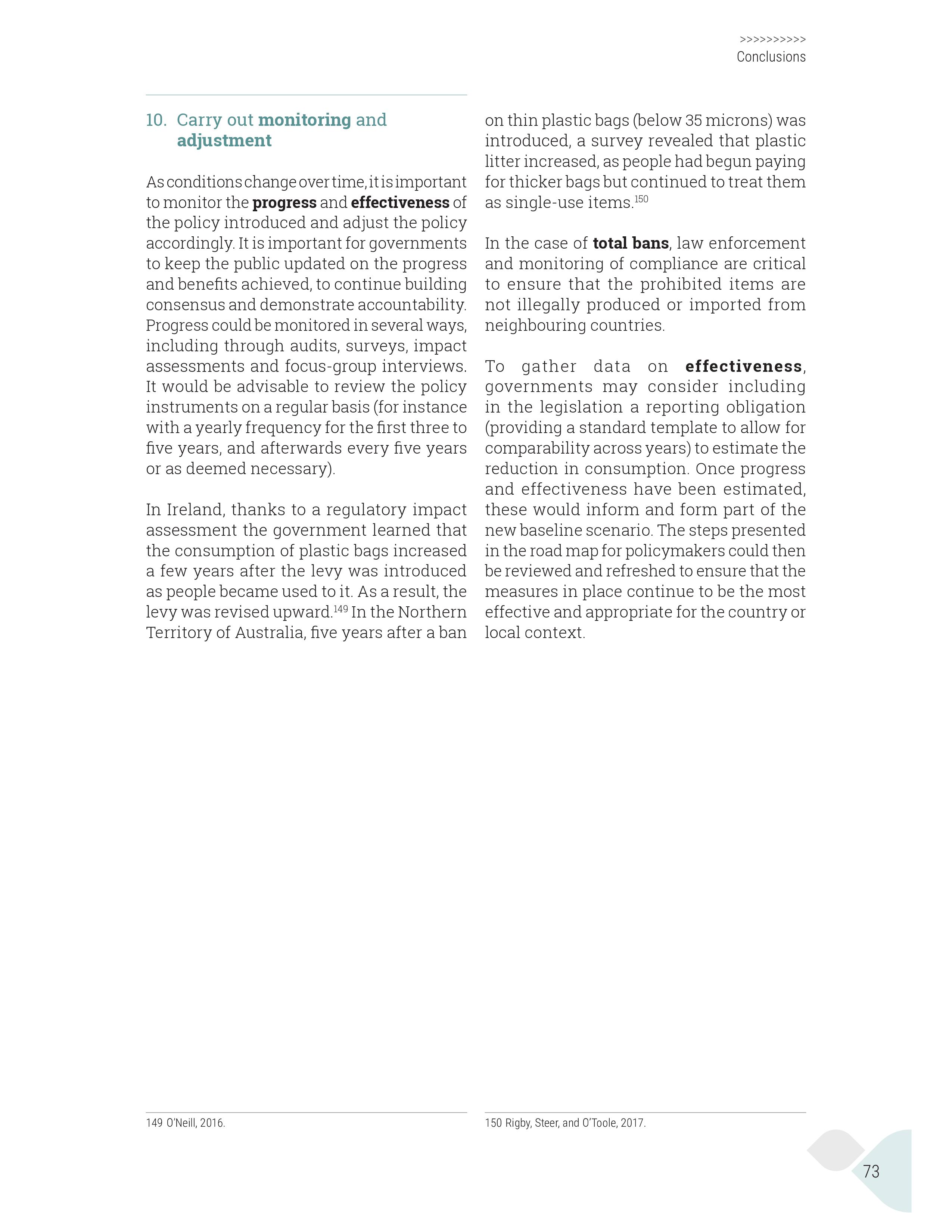 如果有适当的计划和执行,禁止塑料带可以有效地应对塑料过度使用。但是,为了解决问题的根源,政府需要改进废物管理实践并引入财政激励来改变消费者、零售商和制造商的习惯,颁布强有力的政策,推动塑料设计和生产的更环保的模型。政府必须资助更多的替代材料的研究和开发,提高消费者的意识,为创新提供资金,确保塑料产品有适当的标签,并仔细权衡当前危机的可行性解决方案。