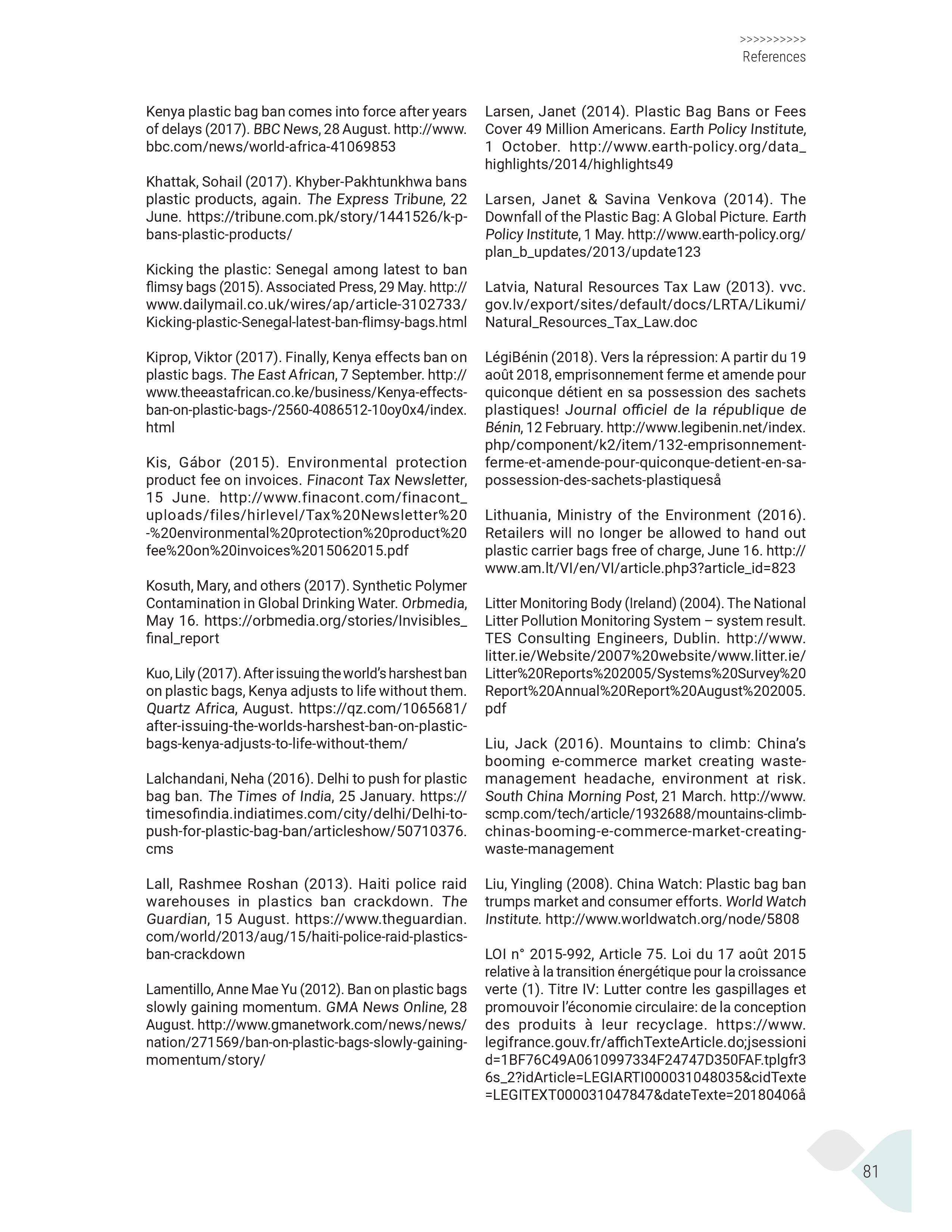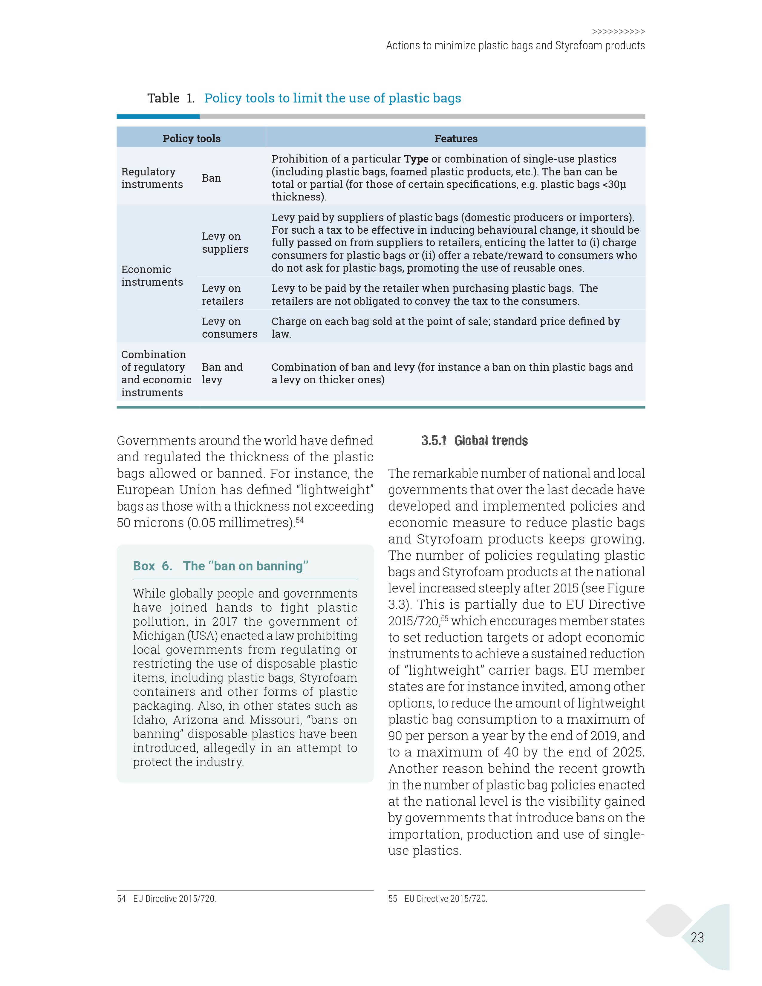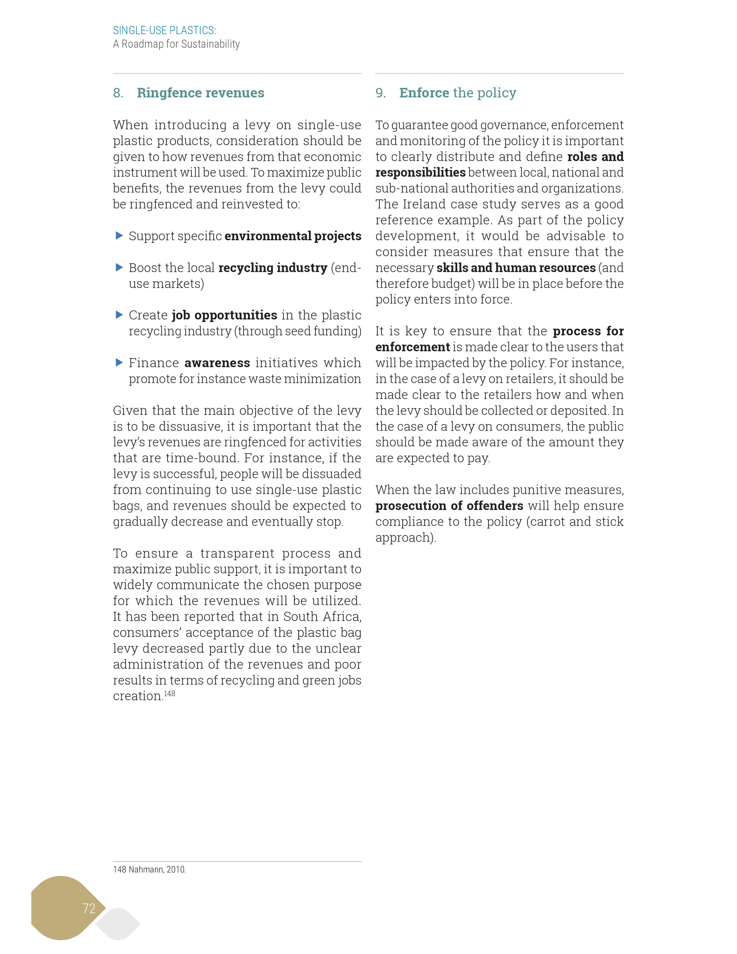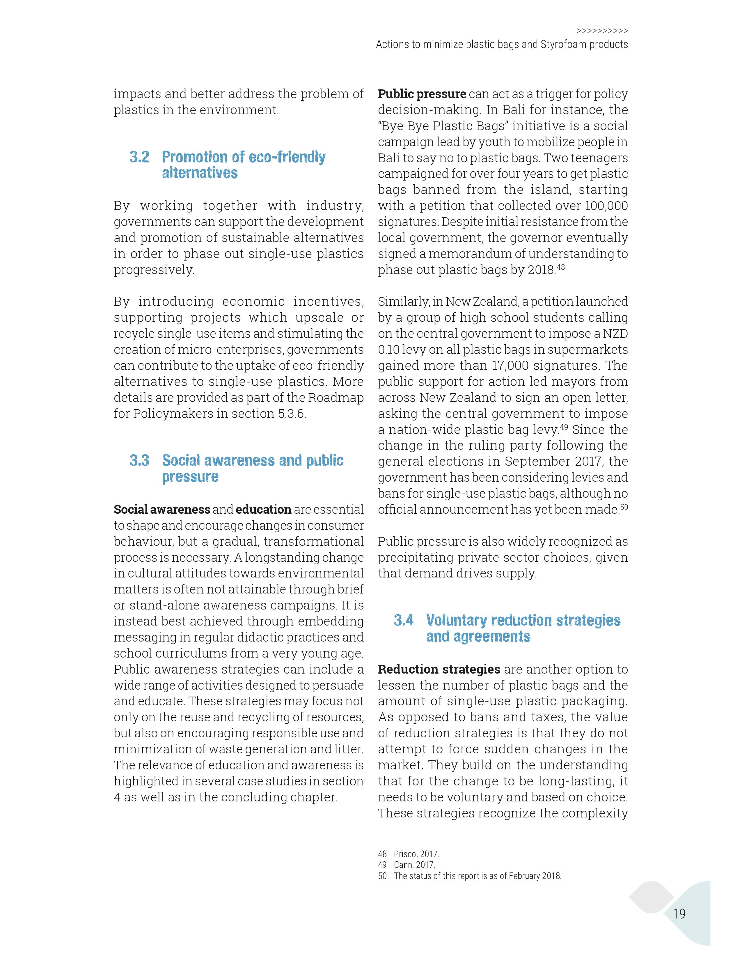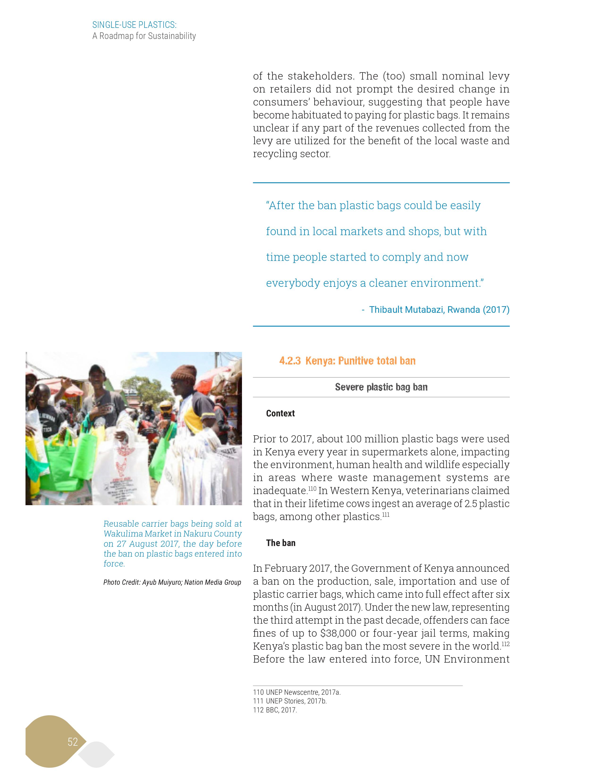 如果有适当的计划和执行,禁止塑料带可以有效地应对塑料过度使用。但是,为了解决问题的根源,政府需要改进废物管理实践并引入财政激励来改变消费者、零售商和制造商的习惯,颁布强有力的政策,推动塑料设计和生产的更环保的模型。政府必须资助更多的替代材料的研究和开发,提高消费者的意识,为创新提供资金,确保塑料产品有适当的标签,并仔细权衡当前危机的可行性解决方案。