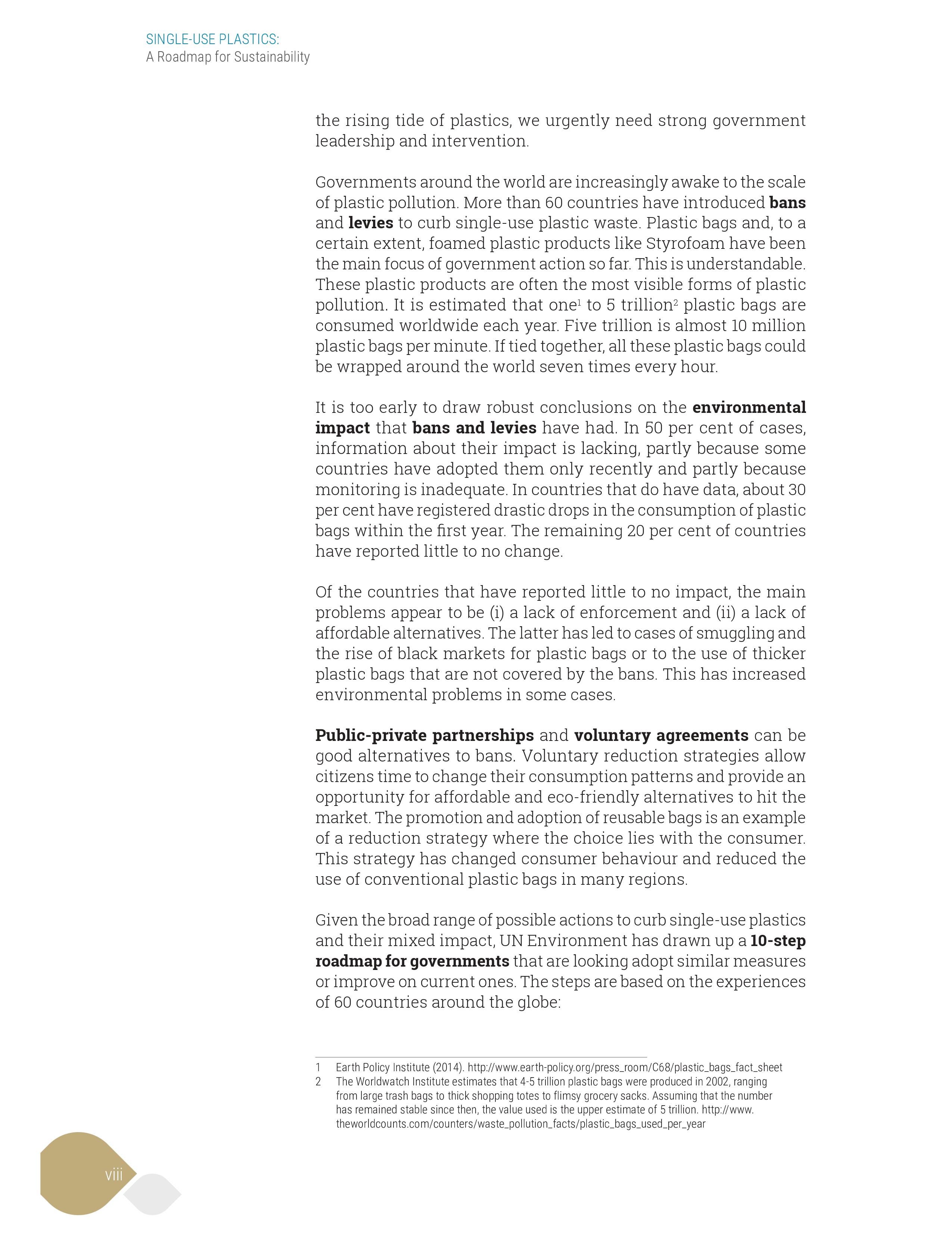 因此,联合国环境署提出了一个10步路线图,帮助政府采取适当措施解决塑料危机: